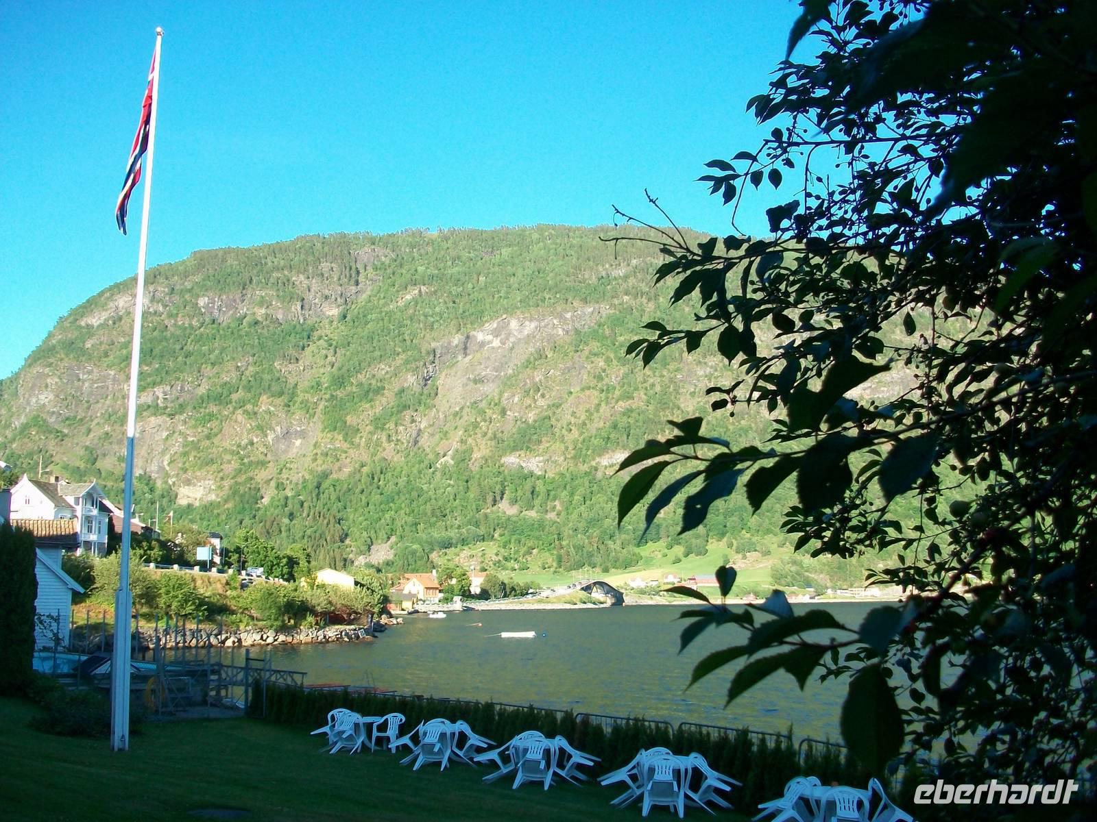 Der Weg führt uns dann hinunter auf Meereshöhe und direkt am Sognefjord, sehr malerisch am Wasser gelegen, können wir unser Hotel beziehen, ein schönes Haus mit dem Flair der alten Traditionen Norwegens.