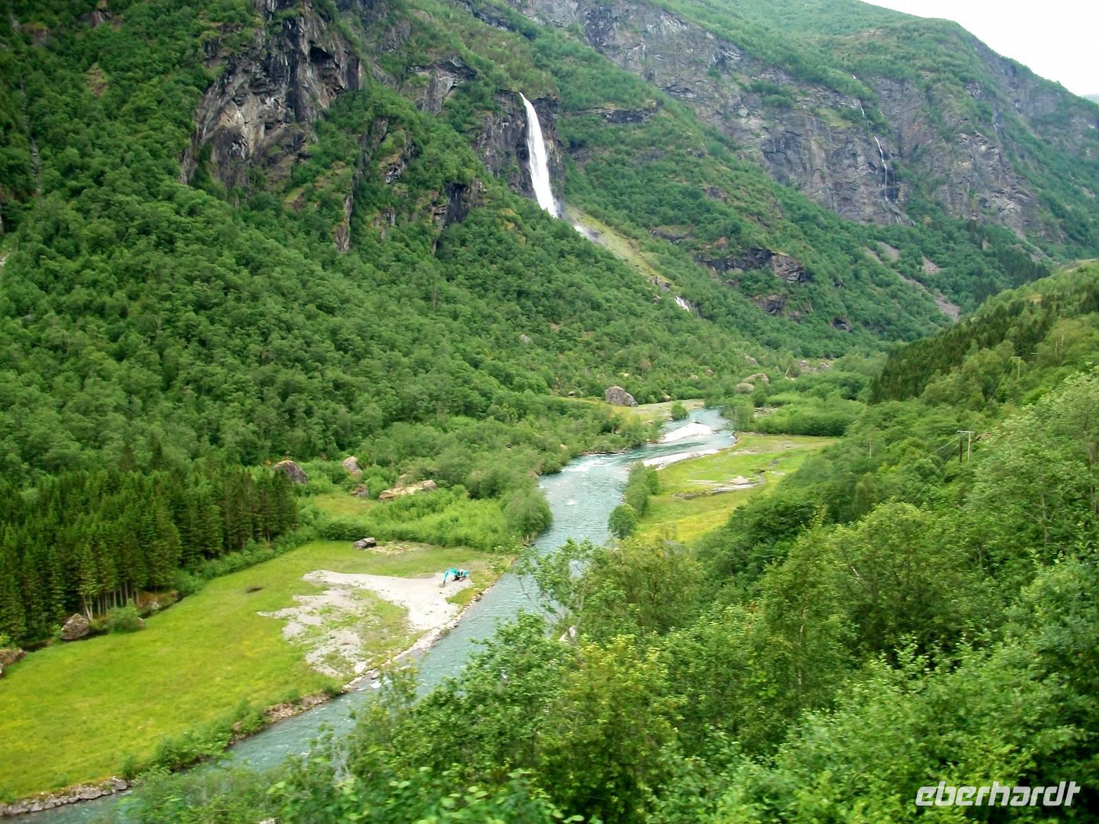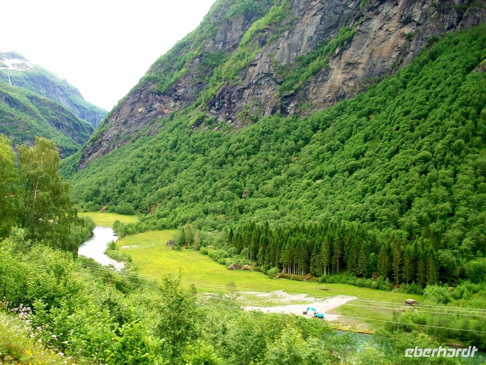 Im Ort Flåm angelangt genehmigen wir uns eine Mittagspause um danach unsere Fahrt in Richtung Stahlheim aufzunehmen. Hier arbeitete der berühmte norwegische Romantiker Dahl an seinen Bildern und unser letzter Kaiser Wilhelm II. verbrachte in diesem grandiosen Ort viele Sommer.