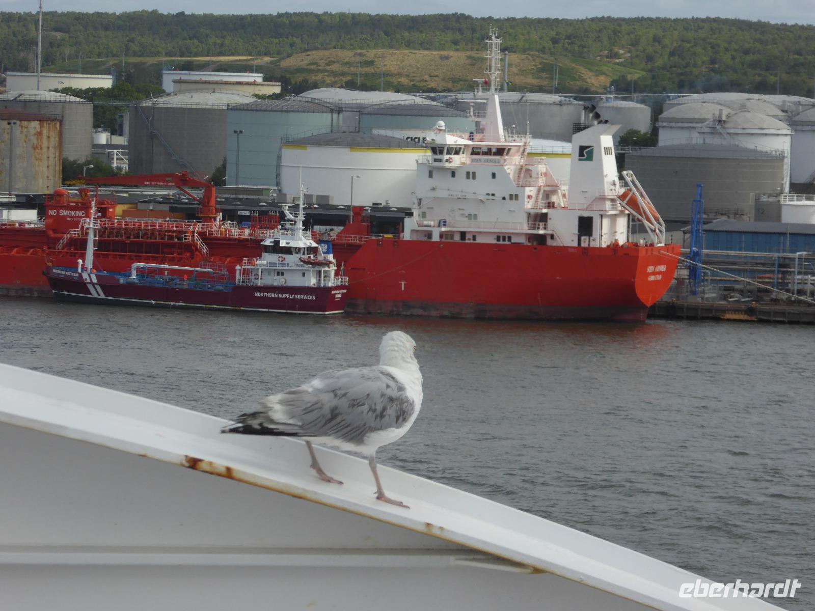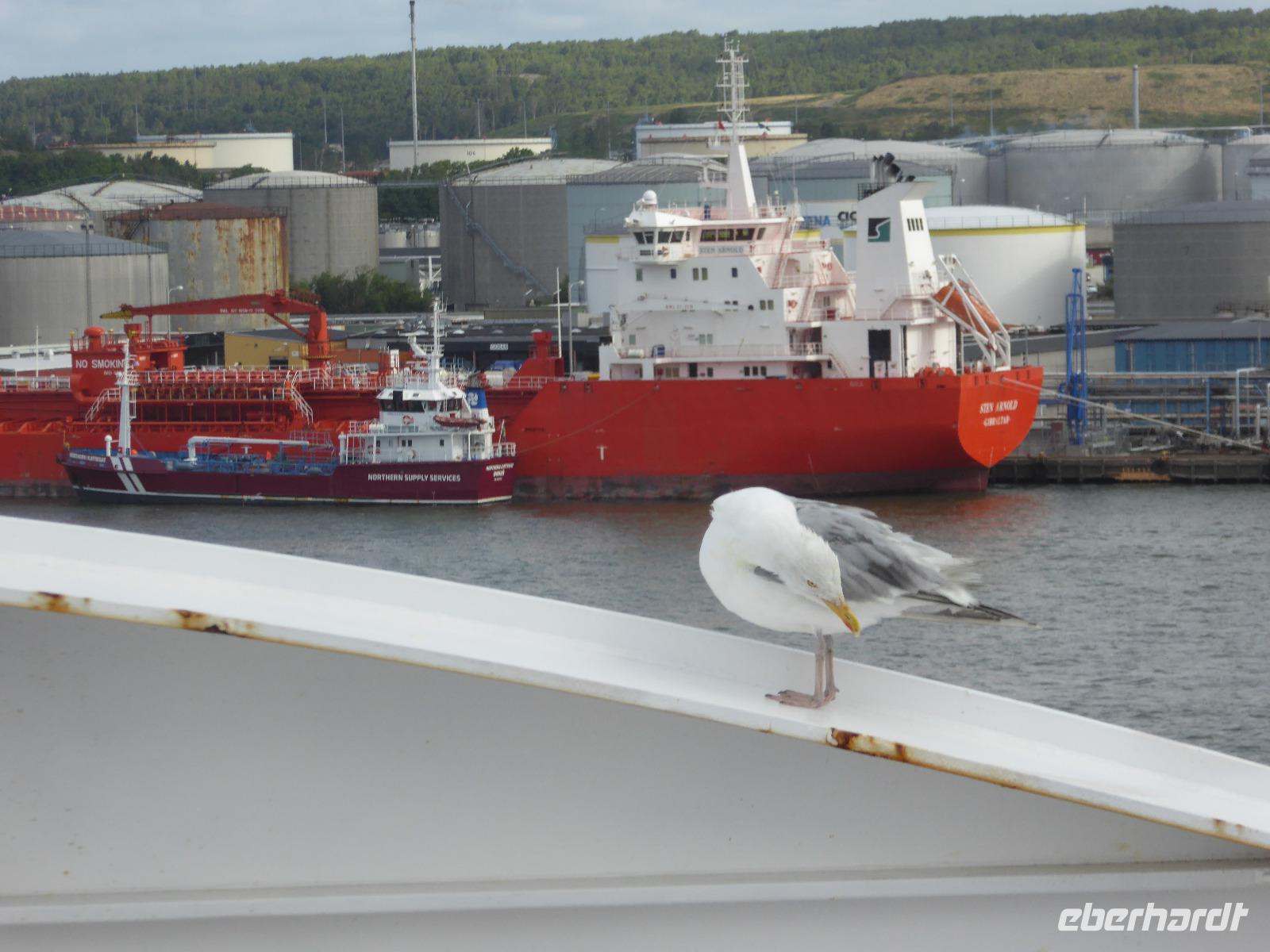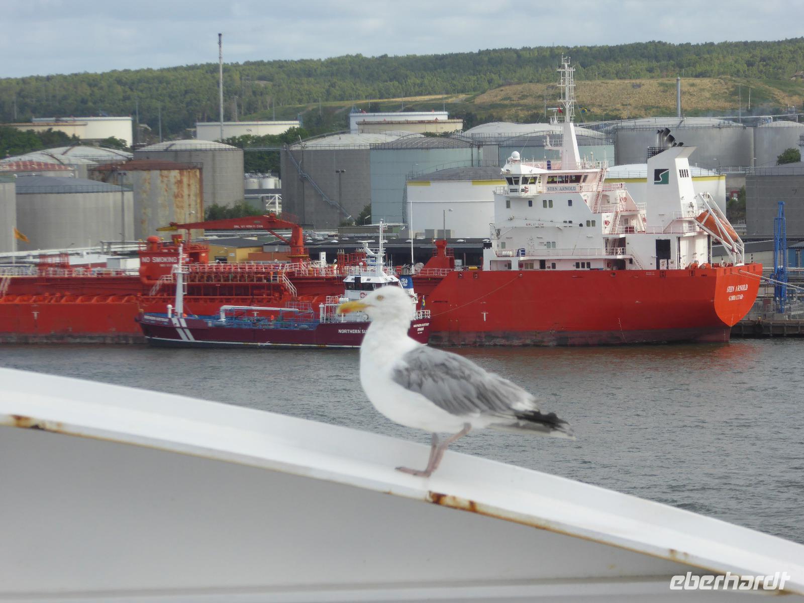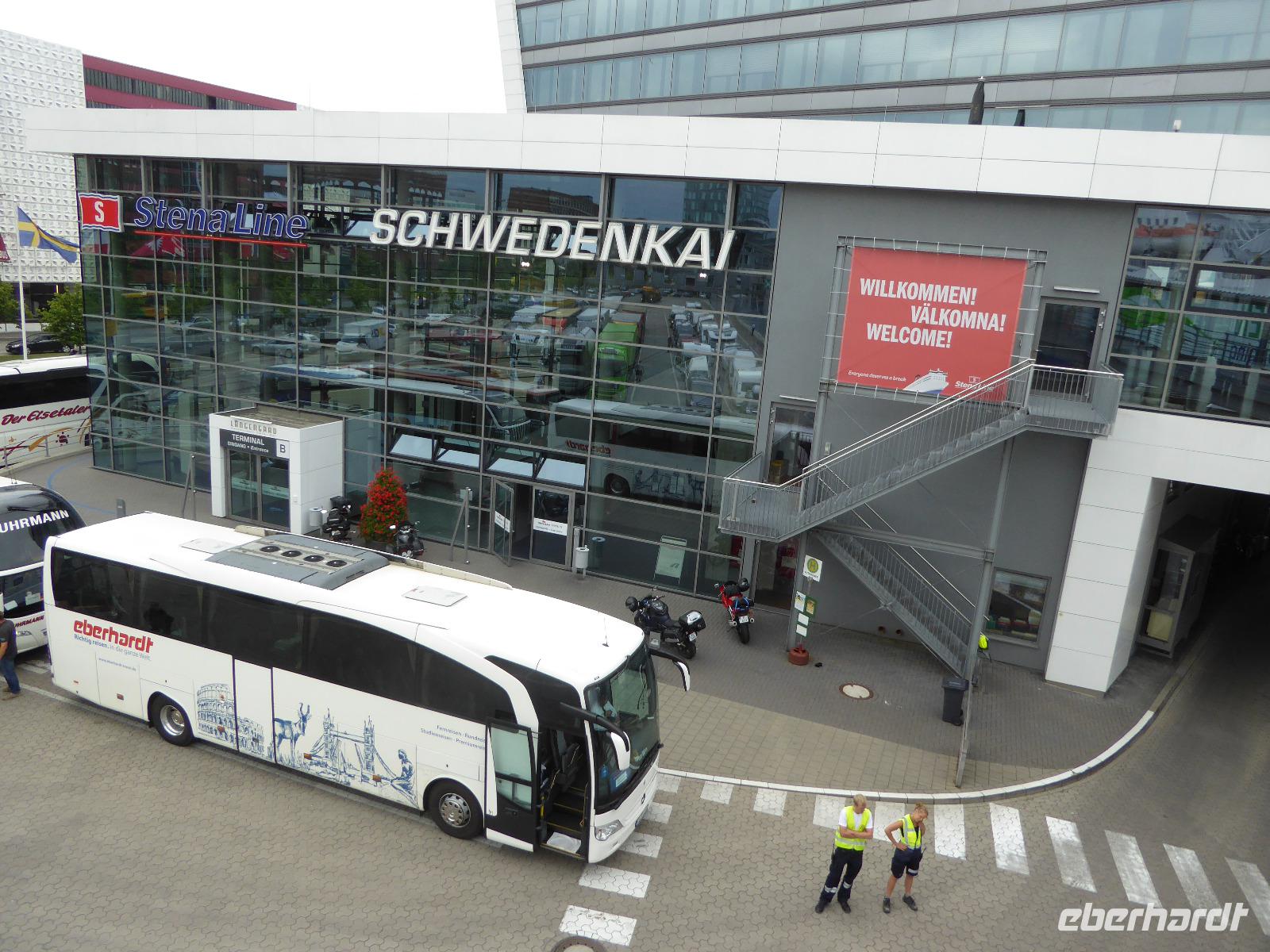 Heute heißt es fahren, fahren, fahren. Nur ein kurzer Spaziergang noch durch die Fußgängerzone in Oslo, dann ab in den Bus. Bis auf zwei Gäste, die nach Hause fliegen und sich hier von uns verabschieden. Ein paar Stunden später, unterbrochen von Kaffee- und Würstchenstopps, kommen wir in Göteborg an. Unsere Fähre, die Stena Scandinavica, steht bereits im Hafen. Wir checken ein, beziehen unsere Kabinen und lassen uns am Buffet kulinarisch verwöhnen.