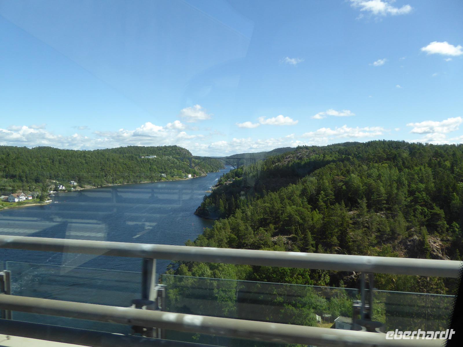Unterwegs, kurz vor Oslo, findet Lutz noch einen wundervollen Fotostopp für uns. Wir befinden uns oberhalb des Tyrifjords. Die Aussicht ist atemberaubend. Eine Insel zeichnet sich ab. An einem Baum ein kleines Metallschild. Wir blicken auf Utoya. Die Insel gehört der Jugendorganisation der Sozialdemokratischen Arbeiterpartei Norwegens. Jedes Jahr findet hier ein Sommerlager statt. So auch im Sommer 2011. Über 500 Jugendliche nahmen an diesem Ferienlager teil. Doch diesmal sollte alles ganz anders werden. Der Attentäter Breivik verübte am 22. Juli zunächst ein Bombenattentat im Osloer Regierungsviertel, bei dem acht Menschen starben. Danach begab er sich zur Insel Utoya, wo er sich als Polzist ausgab, der über das Attentat in Oslo informieren wollte. Er rief die Jugendlichen zusammen und begann dann ohne Vorwarnung auf sie zu schießen. In 75 Minuten tötete er 69 Menschen, viele davon unter 18 Jahre alt. Wie schade, dass der traumhafte Ausblick auf den Fjord von so einer Geschichte überschattet wird.