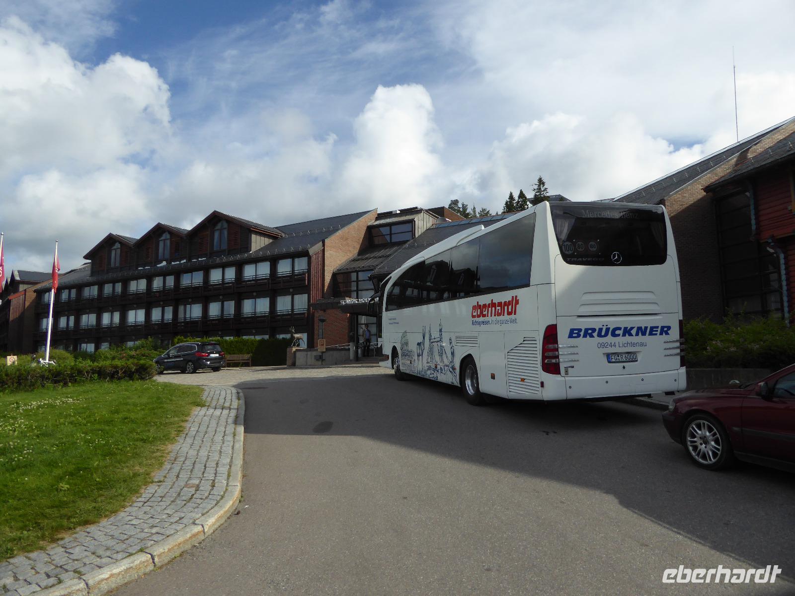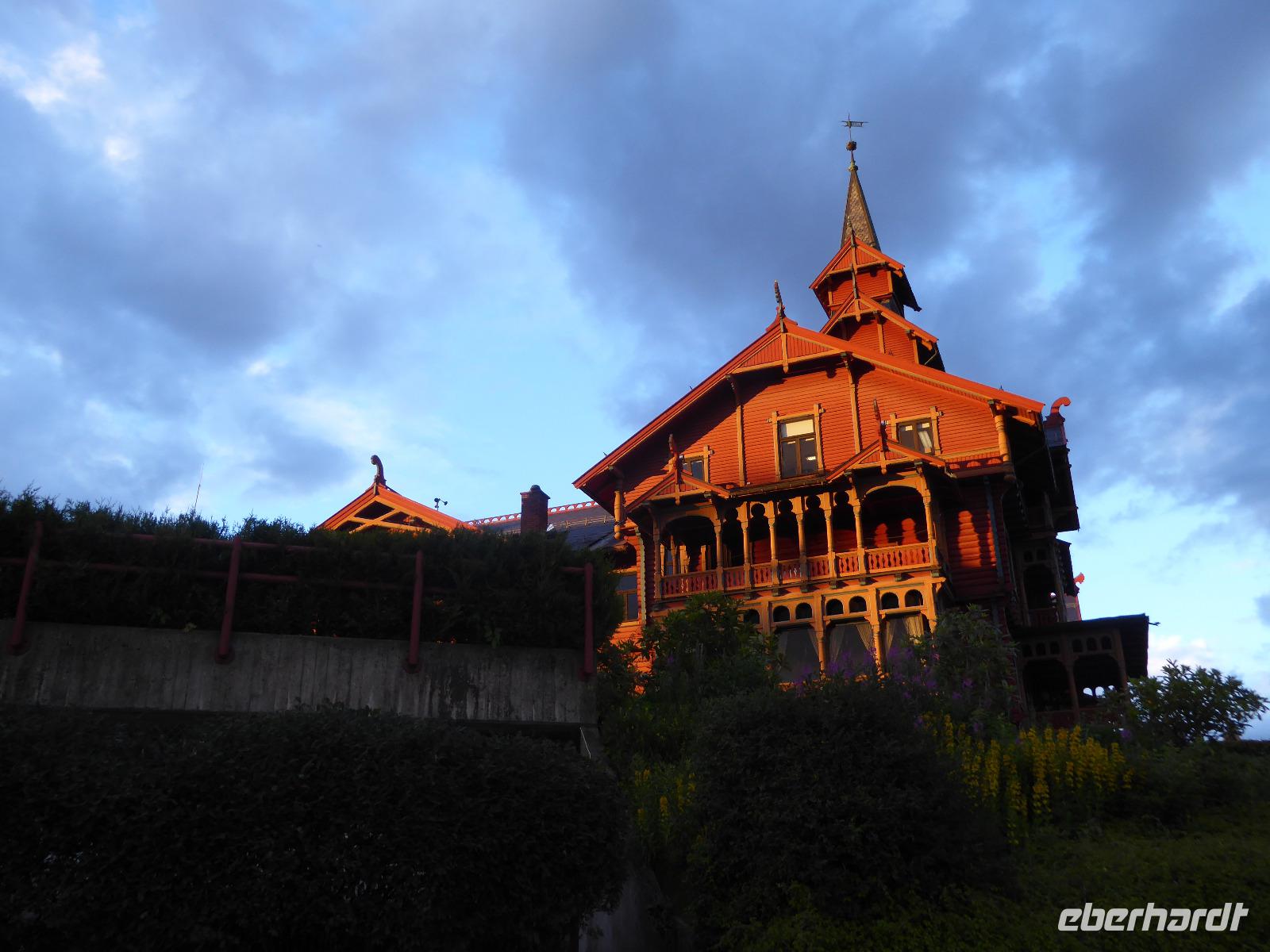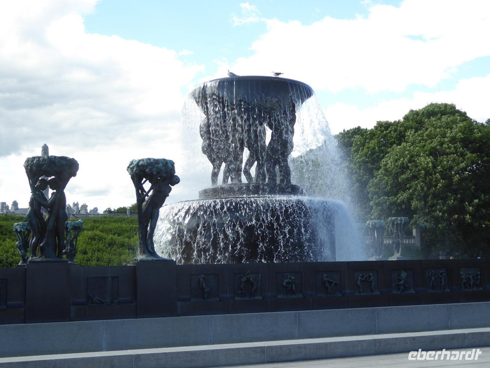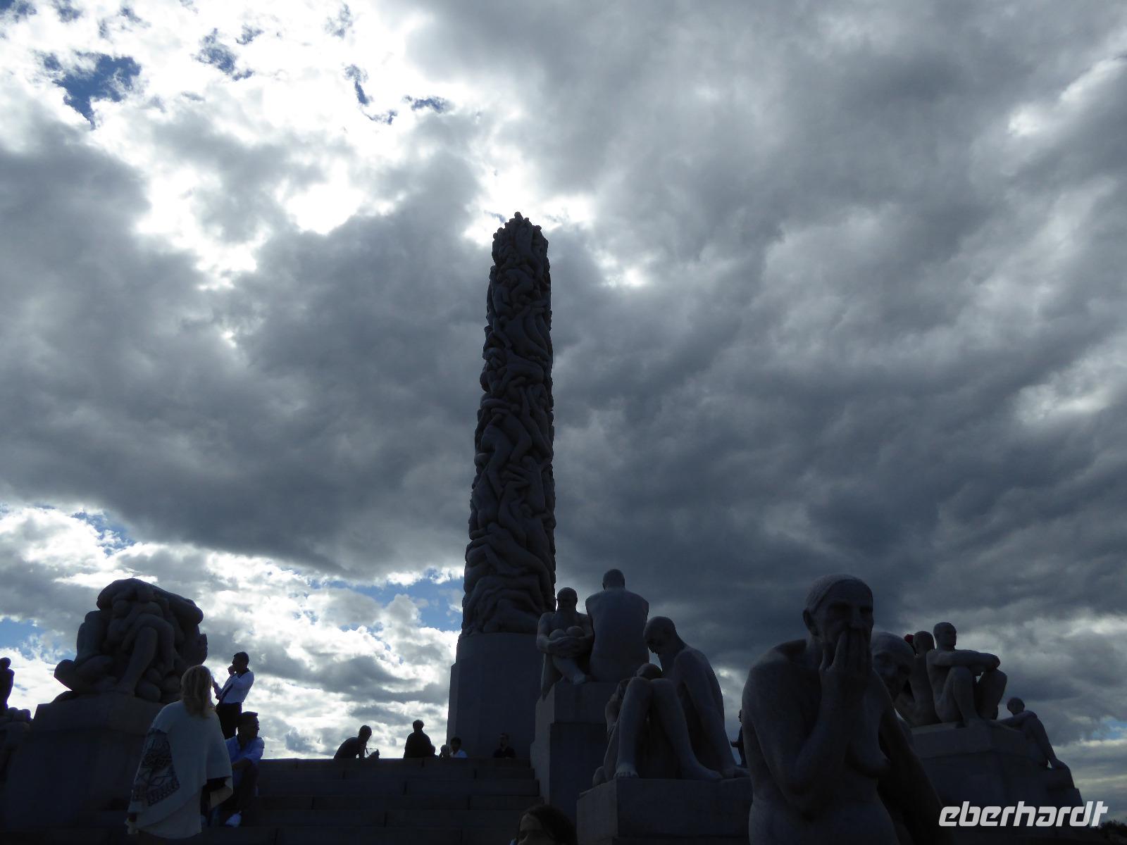 Nach dem Genuss eines üppigen Frühstücksbuffets, legt unser Schiff - die Stena Line Germanica - um 9.15 Uhr in Göteborg an. Wir checken aus und stehen schon an unserem Bus - Lutz war schneller als wir. Über Haby, wo wir einen Stopp einlegen, fahren wir bis zur Svinesundbrücke. In Halden trinken wir Kaffee und verspeisen unsere Würstchen. Gegen 14 Uhr kommen wir in Oslo an. Hier warten noch zwei Gäste und eine Stadtführerin auf uns. Bei unserer Rundfahrt durch Oslo sehen wir, wie die Stadt quasi neu entsteht, überall wird gebaut. Am Rathaus steigen wir aus und besichtigen viele Räume. Die wunderschönen Wandbilder sind beeindruckend. Alle erzählen von der norwegischen Geschichte. Anschließend kommen wir am Königspalast vorbei. Unser nächster Halt findet am Vigeland-Park statt. Faszinierend, was ein einzelner Bildhauer so veranlassen kann. Lebensechte Figuren lassen den Kreislauf von Geburt bis zum Tod emotional nachempfinden. Liebevoll betrachten wir das berühmte Trotzköpfchen. Die Stadtrundfahrt ist beendet, wir fahren zum Holmenkollen. Hier gönnen wir uns eine halbe Stunde Fotopause, die Aussicht auf den Oslofjord ist großartig. Um 18 Uhr checken wir im Scandic Holmenkollen Park Hotel ein. Nach ersten Irritationen haben alle ihre schönen Zimmer gefunden. Zum Abendessen bedienen wir uns am Buffet (Bier und Wein kosten jeweils 9,80 €). Es ist noch hell, trotzdem ist der Tag schon vorbei.