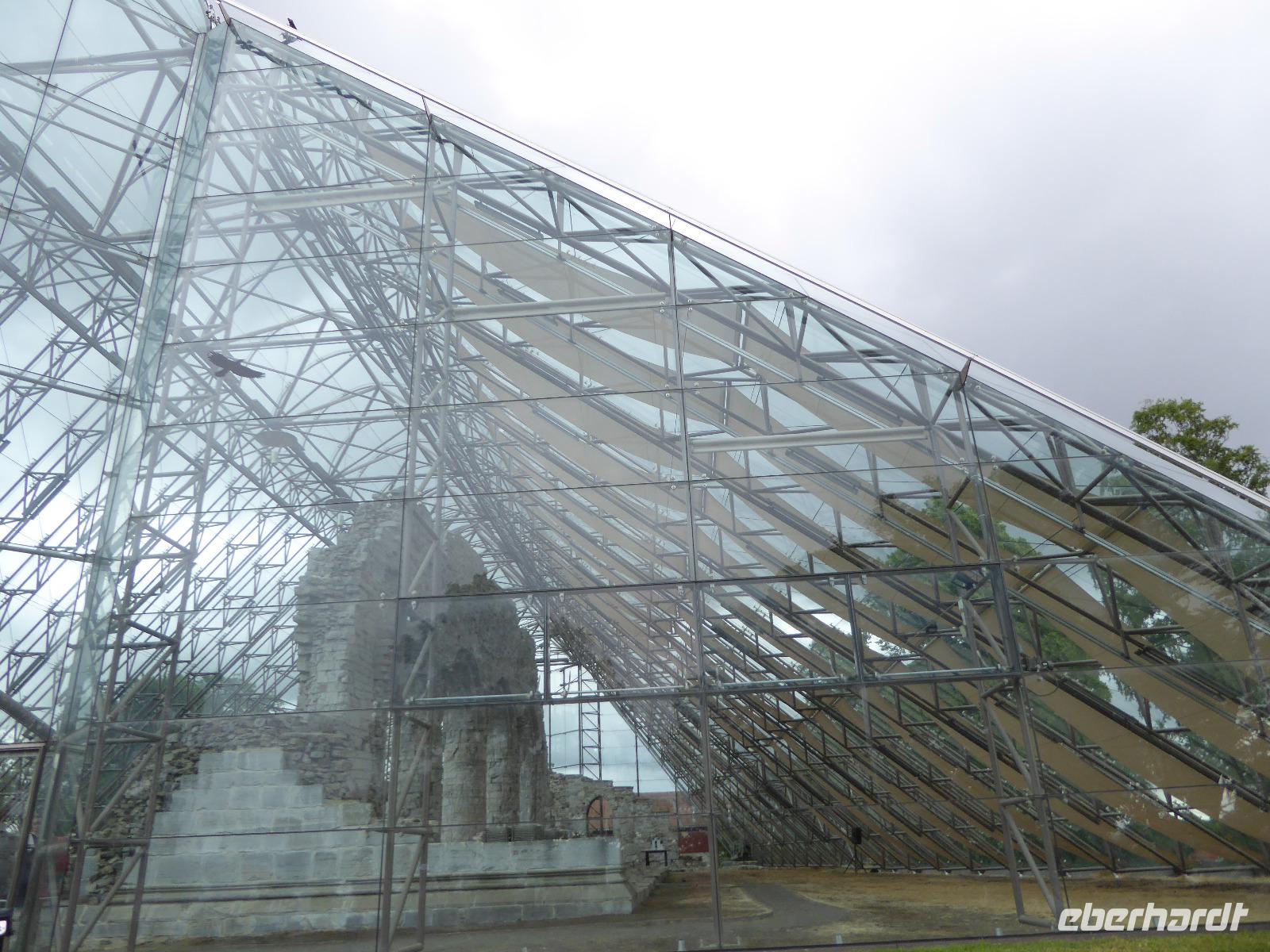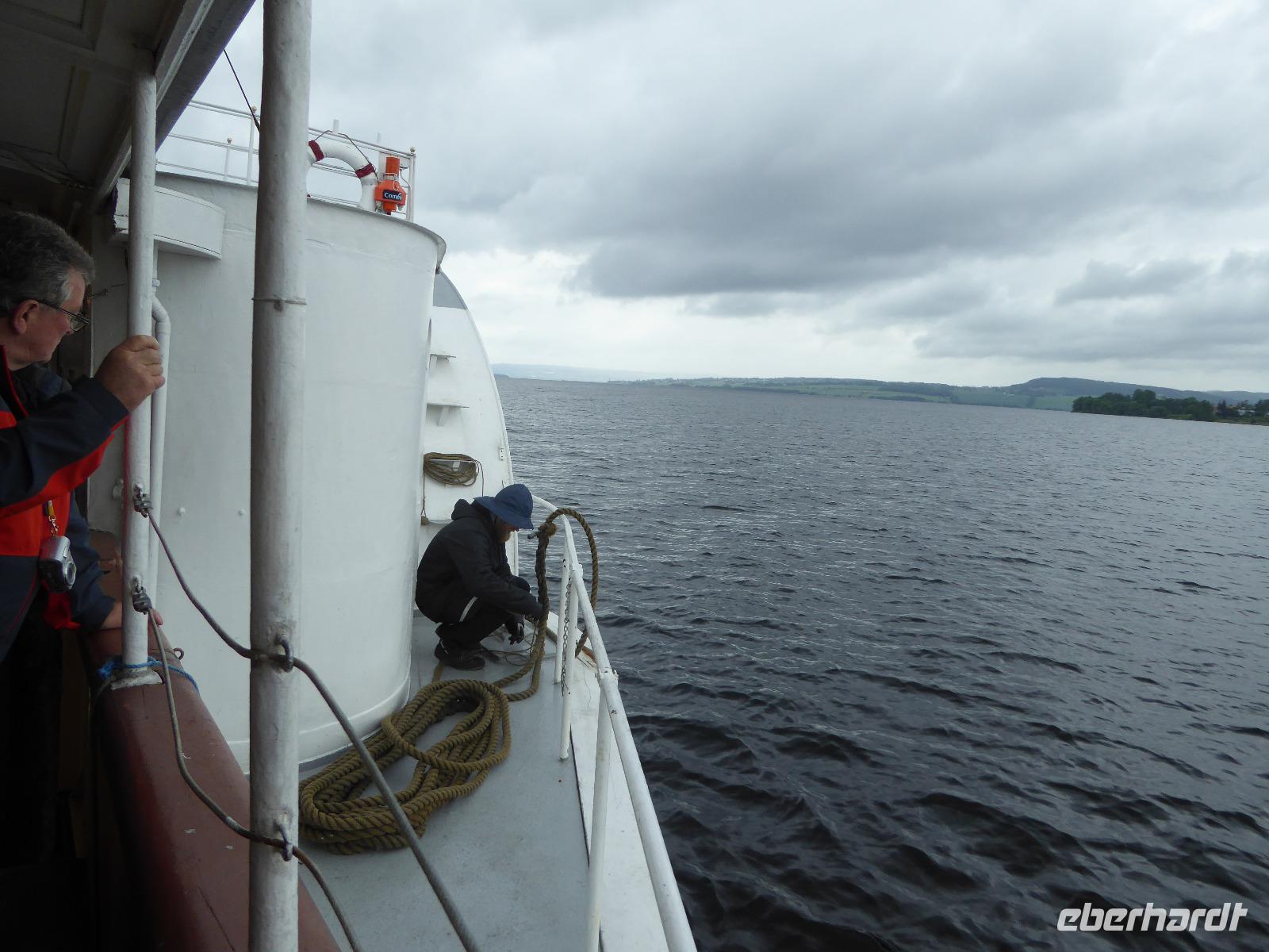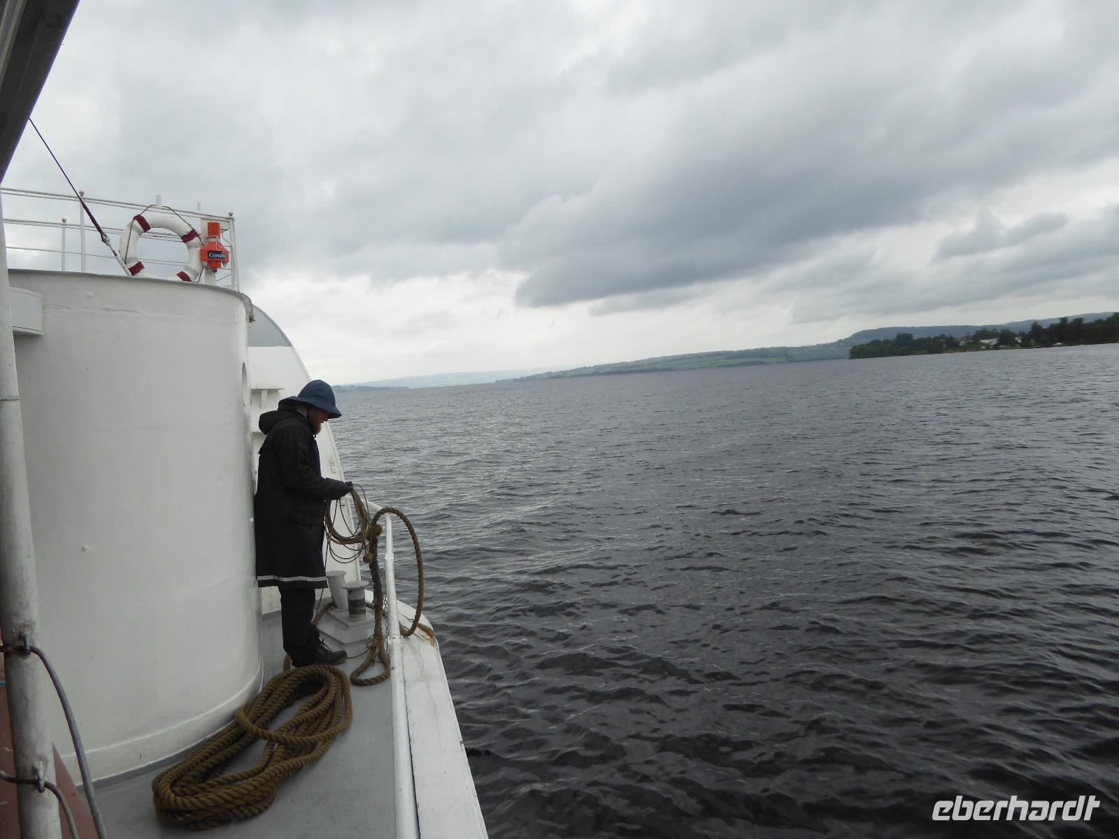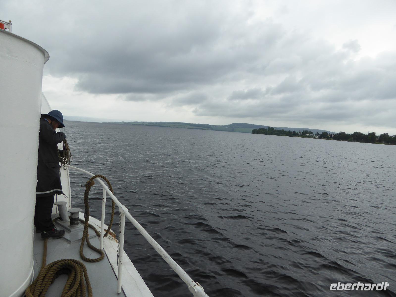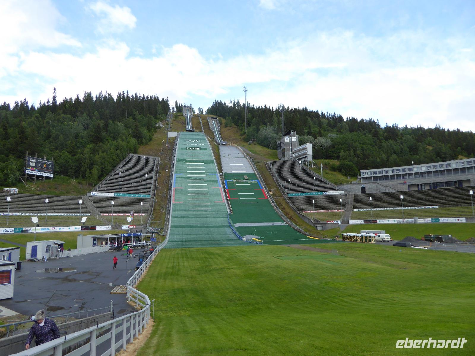 Wir starten bereits um 8. Das Wetter ist uns heute gar nicht hold. Es regnet wie verrückt. Und wir wollen auf dem Mjosasee Schiff-Fahren. Nach einer Stunde kommen wir in Gjovik an. Es regnet nicht mehr - zum Glück, denn unser Schiff, der Skibladner, wird noch aufgetankt und so lange dürfen keine Gäste an Bord. Also müssen wir uns eine halbe Stunde die Füße vertreten, denn erst 9.30 Uhr betreten wir das Schiff. An „Draußen-sitzen" ist nicht zu denken. Es ist zwar nicht kalt, aber ungemütlich. Also nehmen wir im unteren Bereich Platz. Nach einer Weile haben wir uns eingerichtet und schaffen es, die knapp eineinhalb Stunden Fahrt auf dem Mjosasee zu genießen. Mit ein bisschen mehr Sonne könnte es glatt romantisch sein, die Umgebung ist traumhaft. Gegen elf kommen wir in Hamar an, verabschieden uns von unserem Kapitän und der freundlichen Guide. Lutz ist mit dem Bus schon da. Es regnet. Wir fahren zum Hedmark Museum, hier werden wir um zwölf zu einer Führung erwartet. Wir sind zu früh. Also lassen wir uns erstmal die Würstchen schmecken. Die anschließende Führung ist auf Englisch. Gemeinsam können wir uns alles erschließen. Spannende Geschichte vom weintrinkenden, tanzenden Bischof und der verfallenen Kathedrale. Was für eine Akustik diese hat, erlauschen wir bei den Gesängen unserer Gastgeber. Ganz in der Nähe befindet sich das Eisenbahn-Museum, das Einige besuchen möchten. Andere verbringen Zeit in Hamar. Auf dem Rückweg zum Hotel legen wir einen Fotostopp an der Eishalle ein, die wie ein umgekipptes Wikingerboot aussieht (links übrigens ). Auch an der Schanzenanlage in Lillehammer halten wir an. Das Wetter hat sich beruhigt und wir können schöne Fotos schießen. Kurz vor dem Abendessen sind wir im Hotel. Und schon wieder öffnet der Himmel seine Schleusen und es gießt aus allen Kannen. Das interessiert uns nicht mehr - wir schlemmern im Restaurant. Baby Milla ist immer noch nicht da.