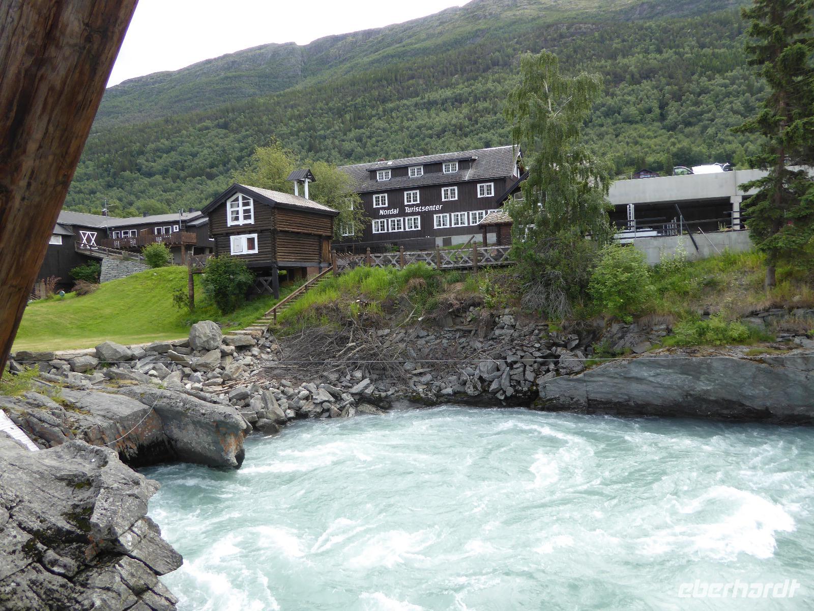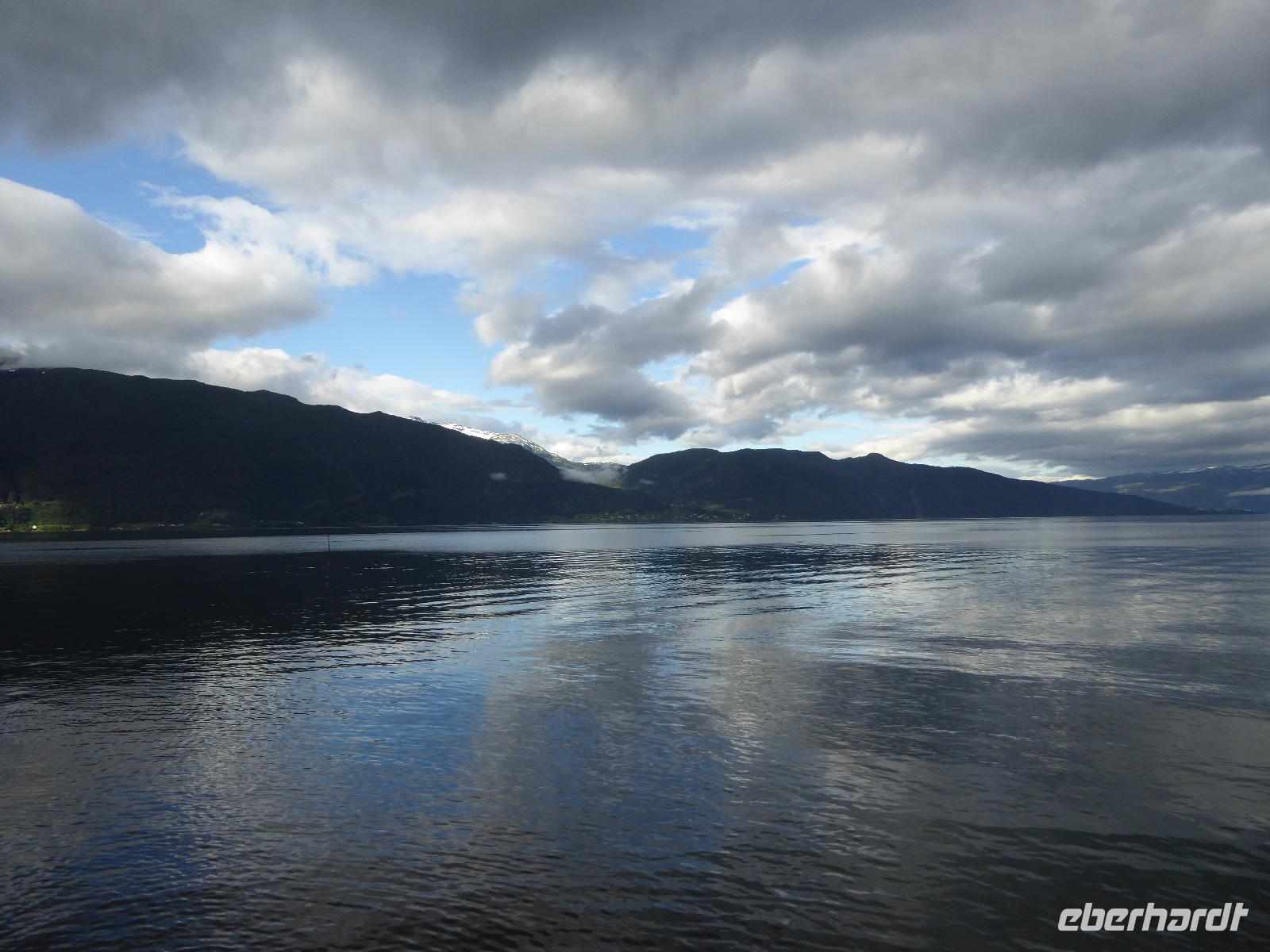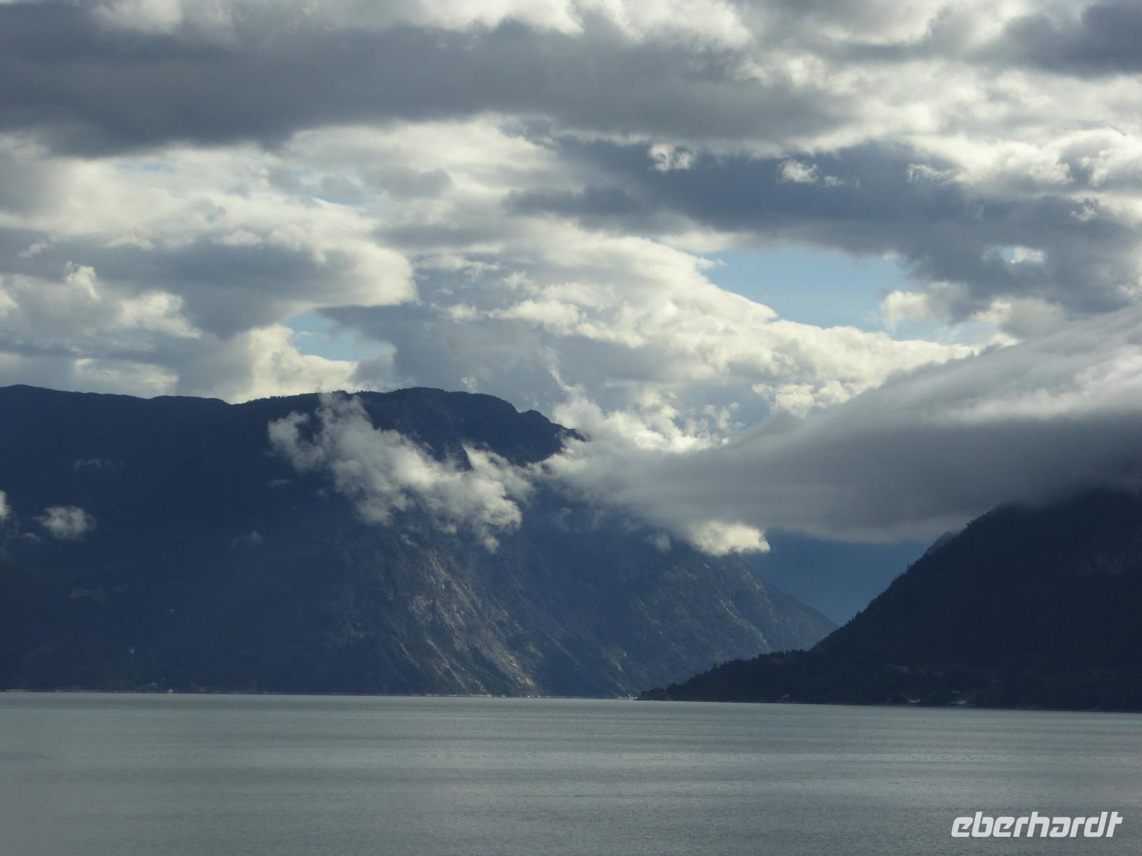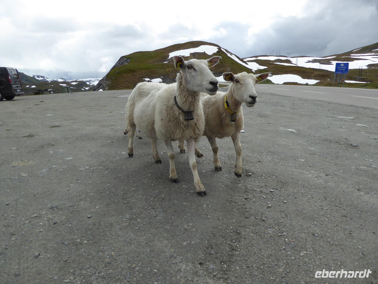 Gemütlich starten wir in den Tag, erst um neun fahren wir los. Am Vormittag besuchen wir das Gletschermuseum in Fjarland. Ein zwanzigminütiger Film lässt uns in die beeindruckende Welt der Gletscher eintauchen. Interaktiv führen Schautafeln durch das Museum und erklären anschaulich, warum das Eis blau und die Fjorde grün sind. Auch dem Gletschermann Ötzi sind ein paar Tafeln gewidmet. Am Ende der Ausstellung kann man durch einen nachgestalteten Gletscher laufen. Vorsicht! An einer Stelle ragt die Hand eines Toten aus dem Eis! Nach gut anderthalb Stunden haben wir alles angesehen und setzen unsere Fahrt fort. Es dauert nicht lange, bis wir den ersten Halt zum Fotografieren einlegen. Die Landschaft ist einfach zu verführerisch. Unterwegs treffen wir immer mal wieder auf Exemplare der einheimischen Tierwelt. Zwar sind es keine Elche, aber Ziegen und Schafe, die es sich auf der Straße gemütlich machen und unser Touristenherz erfreuen.