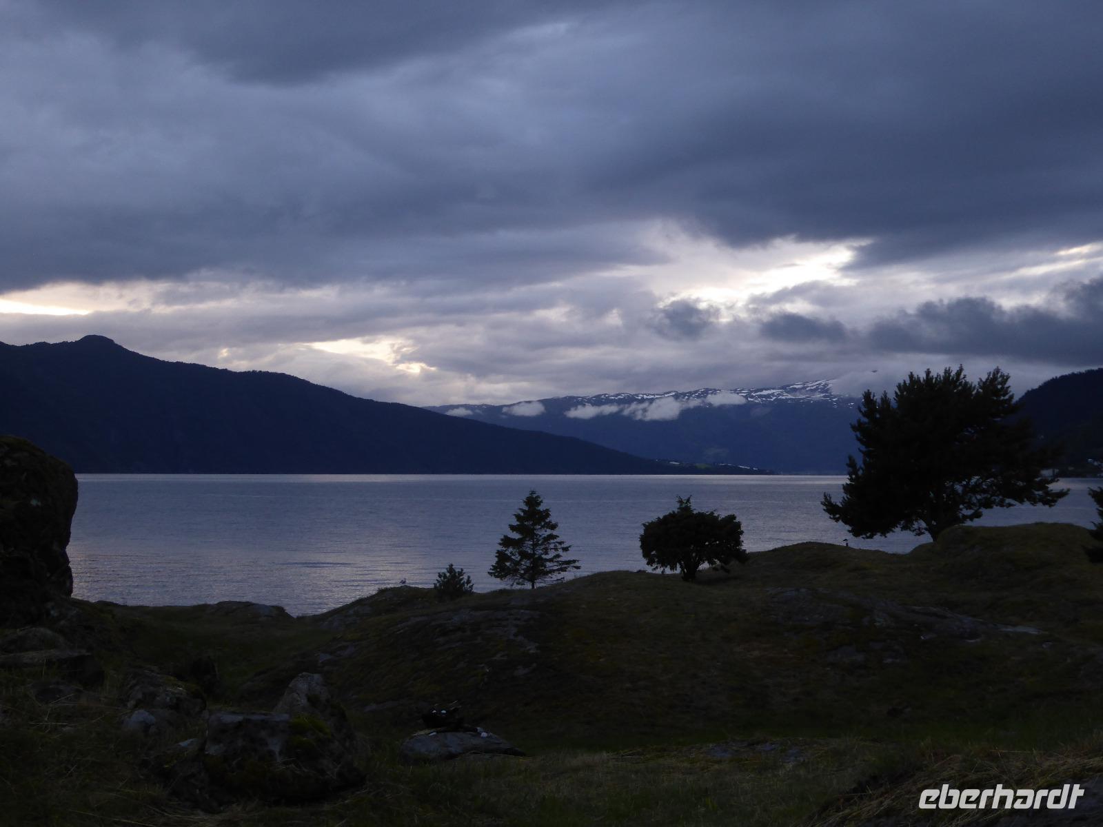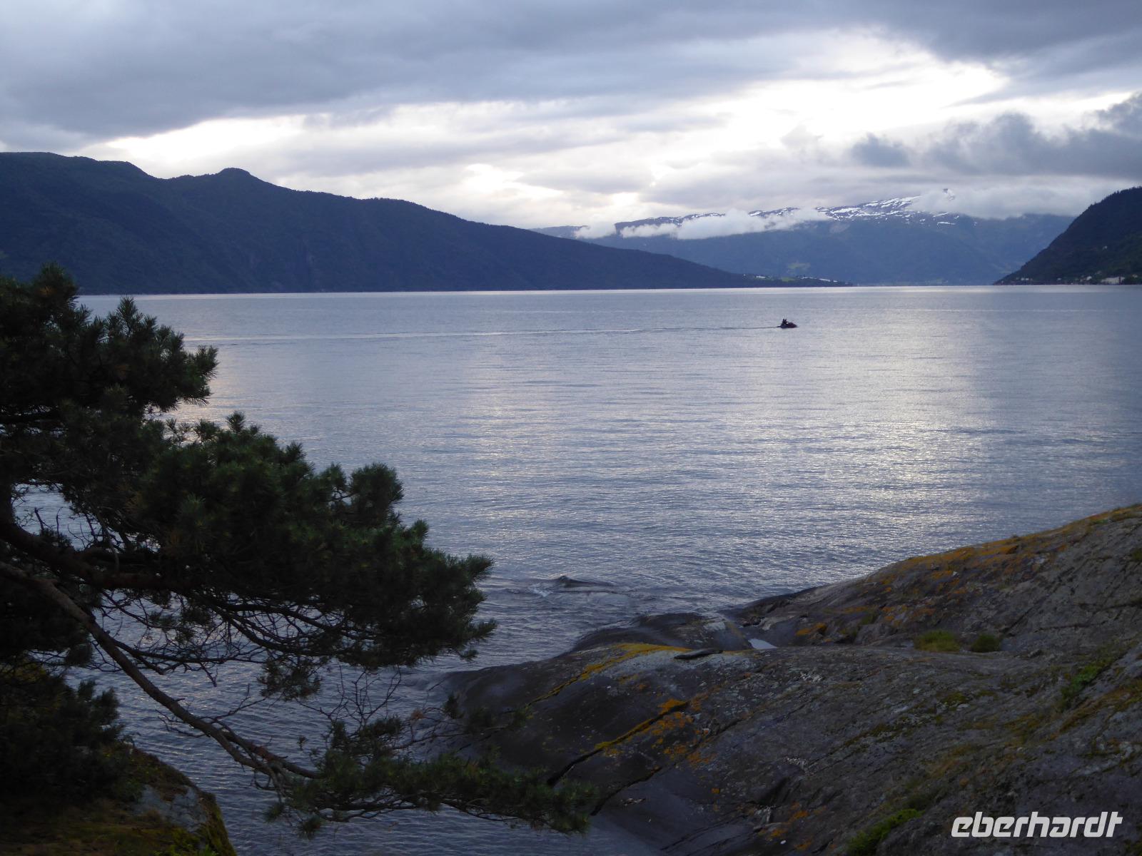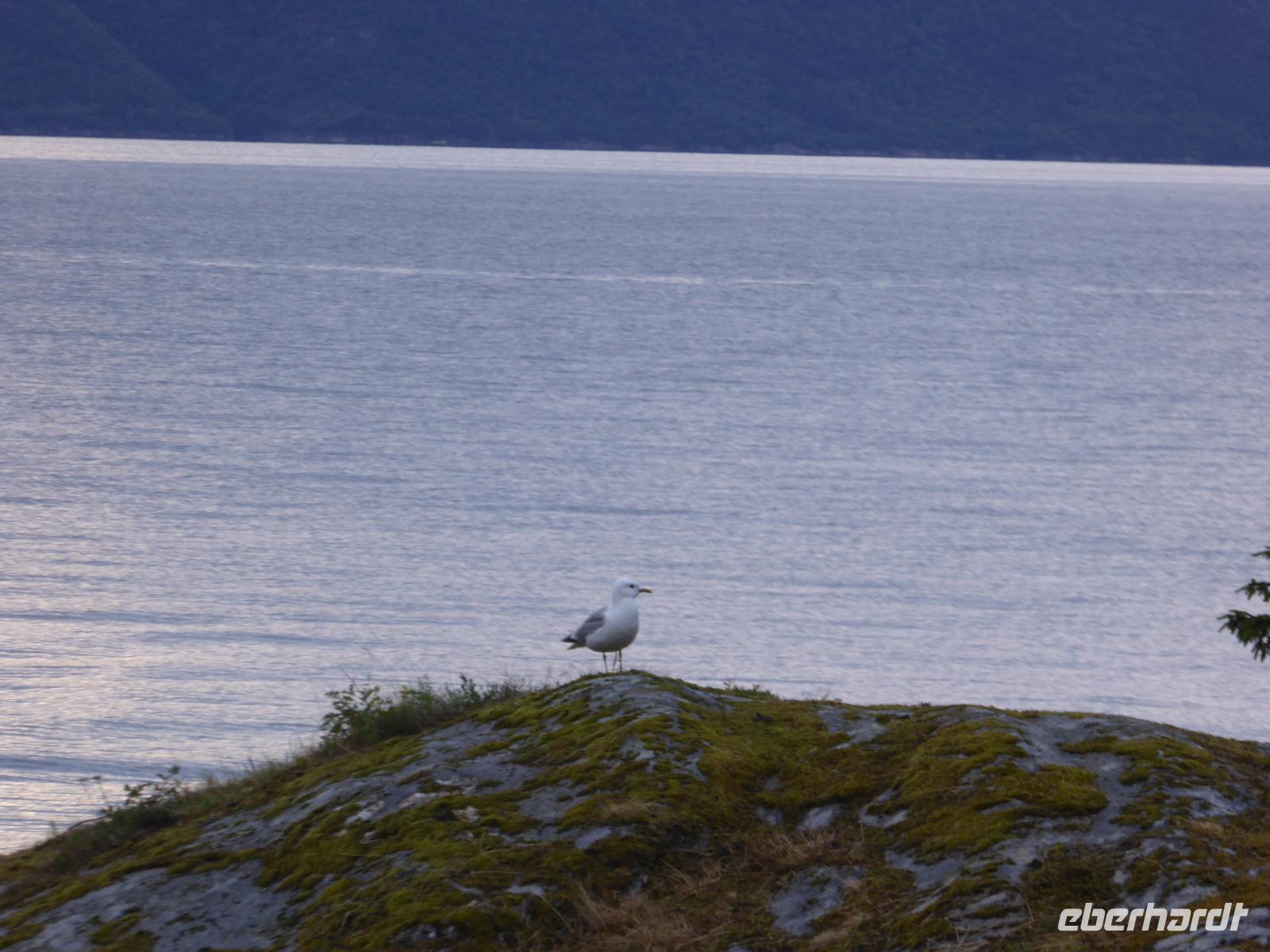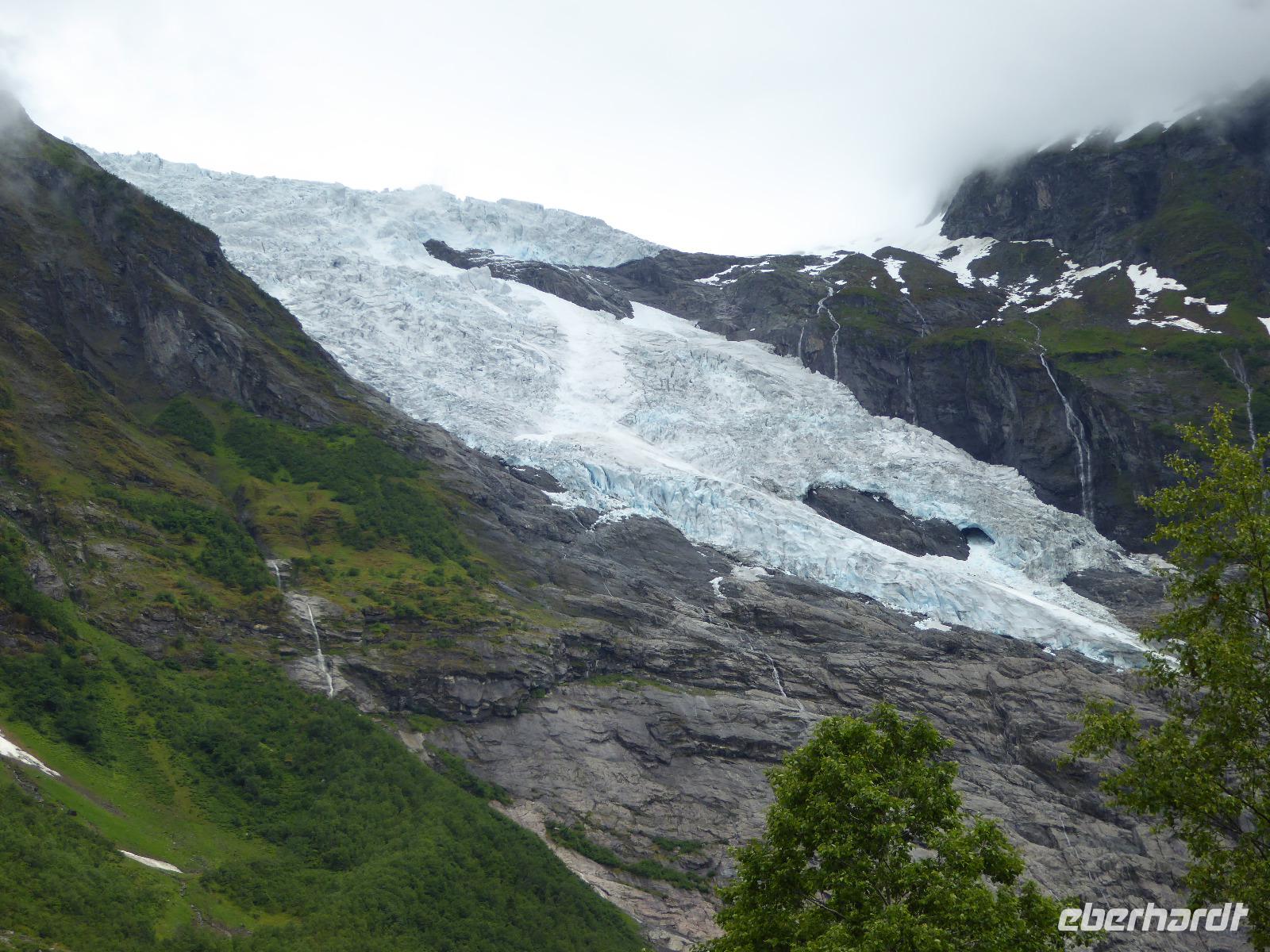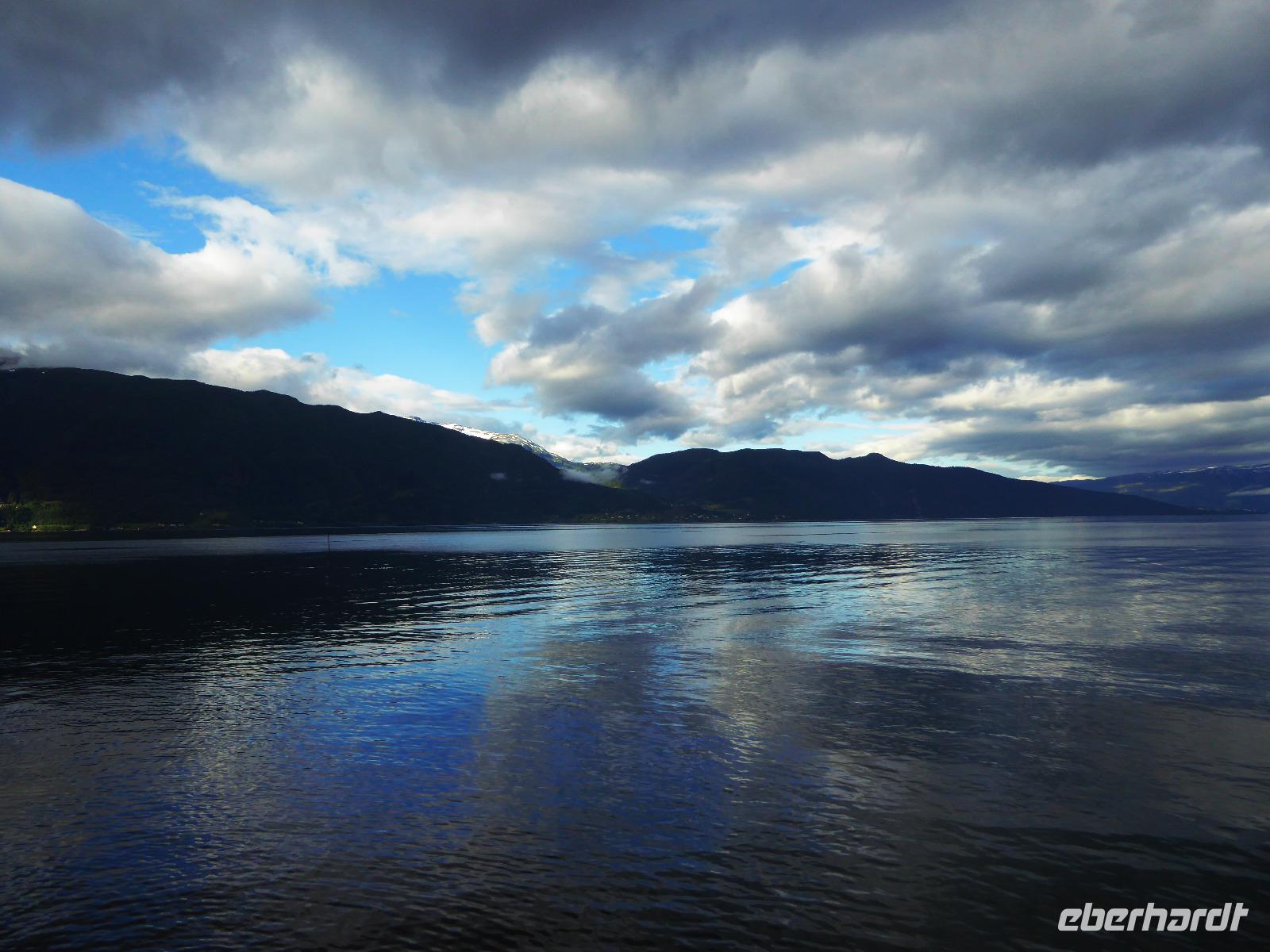 Gemütlich starten wir in den Tag, erst um neun fahren wir los. Am Vormittag besuchen wir das Gletschermuseum in Fjarland. Ein zwanzigminütiger Film lässt uns in die beeindruckende Welt der Gletscher eintauchen. Interaktiv führen Schautafeln durch das Museum und erklären anschaulich, warum das Eis blau und die Fjorde grün sind. Auch dem Gletschermann Ötzi sind ein paar Tafeln gewidmet. Am Ende der Ausstellung kann man durch einen nachgestalteten Gletscher laufen. Vorsicht! An einer Stelle ragt die Hand eines Toten aus dem Eis! Nach gut anderthalb Stunden haben wir alles angesehen und setzen unsere Fahrt fort. Es dauert nicht lange, bis wir den ersten Halt zum Fotografieren einlegen. Die Landschaft ist einfach zu verführerisch. Unterwegs treffen wir immer mal wieder auf Exemplare der einheimischen Tierwelt. Zwar sind es keine Elche, aber Ziegen und Schafe, die es sich auf der Straße gemütlich machen und unser Touristenherz erfreuen.