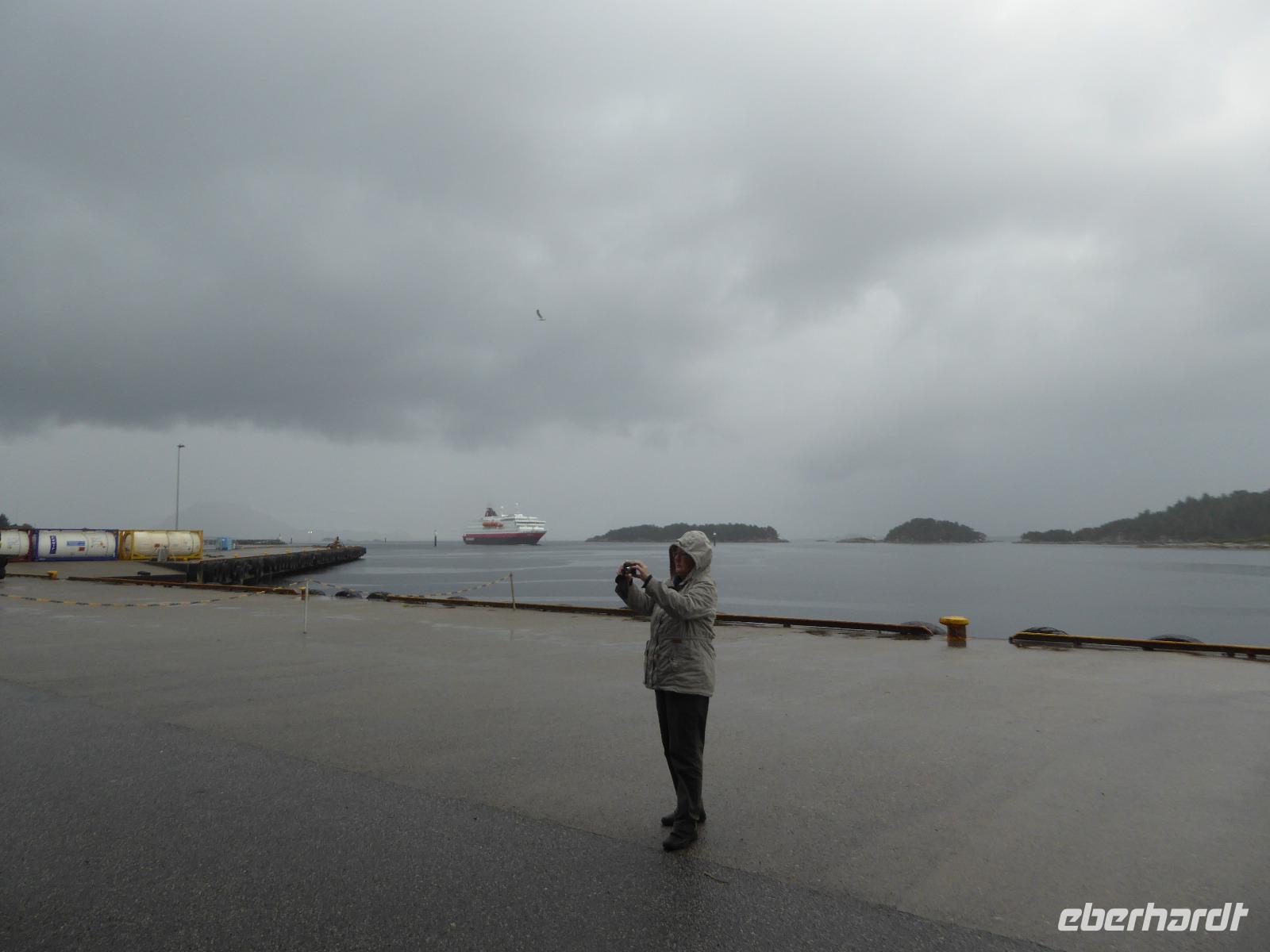 Heute heißt es, etwas eher aufstehen, denn unser Schiff legt bereits um 8.15 Uhr ab. Als wir am Hafen ankommen, ist die MS Nordlys schon von weitem zu sehen. Es regnet und wir stehen wie an einer Bushaltestelle. Beeindruckend ist es, das Anlegemanöver der MS Nordlys zu beobachten. Automatisch öffnen sich die Luken für Pkw und Passagiere. Wir sind die Einzigen, die zusteigen. Die MS Nordlys (norwegisch für Nordlicht) wurde 1994 getauft. Das Schiff ist 121 Meter lang und 19 Meter breit. Es gibt sechs Passagierdecks, von denen wir Deck 4 und Deck 7 nutzen können. Hier befinden sich die Salons. Maximal 691 Passagiere fasst das Schiff, zu sehen sind allerdings wenige. Fast den ganzen Tag haben wir Zeit, die spektakulären Ausblicke von einem Schiff der Hurtigrute zu genießen. Einige schaffen es sogar, sich eine Kabinenbesichtigung zu organisieren. Am Nachmittag kommen wir in Bergen an - der regenreichsten Stadt Europas. Es regnet. Wen wundert's?