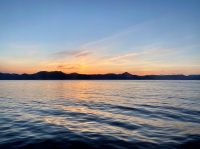 Der Tag begrüßt uns mit einem atemberaubenden Sonnenaufgang, der uns bereits am frühen Morgen schon staunen lässt. Nachdem wir nachts bereits die Häfen Florø, Måløy und Torvik angelaufen haben, legen wir an diesem Morgen, natürlich nicht ohne vorher ausgiebig und lecker gefrühstückt zu haben, gegen 09:45 Uhr im Zentrum von Ålesund an. Die Stadt steht zu Recht synonym für Jugendstil hier in Norwegen, denn keine andere Stadt hat einen Stadtkern, der durch diese Stilrichtung so geprägt ist wie eben Ålesund. Und doch wird man der Stadt nicht gerecht, wenn man sie darauf reduziert. Ålesund ist mehr und davon überzeugen wir uns am Vormittag selbst. Gemeinsam tauchen wir bei einem gemeinsamen Spaziergang ein, in eine Stadt die geprägt ist von dekorativ geschwungenen Linien, floralen Ornamenten, Wasser und der Fischerei. Gemütlich schlendern wir durch das Zentrum und entdecken die Stadt für uns. Nach den vielen Impressionen wollen wir uns anschließend aber auch noch etwas körperlich betätigen und so erklimmen einige von uns den Hausberg „Aksla“. Nach 418 Stufen bis zum Aussichtspunkt, werden wir mit einem faszinierenden Blick über die Stadt, die vorgelagerten Inseln und die südlich gelegenen Sunnmøre-Alpen, belohnt. Sogar unser Schiff können wir in der Ferne entdecken. Das größte Geschenk an diesem Tag ist aber das Wetter. Den ganzen Tag verwöhnt uns der Wettergott hier mit angenehmen Temperaturen, Sonne, blauem Himmel und absoluter Windstille. Einfach nur perfekt. Und so verlassen wir am Abend um 20:00 Uhr mit vielen Bildern und Eindrücken Ålesund und freuen uns nun umso mehr auf alle Erlebnisse, die uns in den nächsten Tagen noch erwarten. Und weil es ein so gelungener Tag war, werden wir am Abend und zum Abschluss des Tages noch mit einem beeindruckenden Sonnenuntergang und der Begegnung mit dem Hurtigruten-Schiff MS Polarlys verwöhnt.