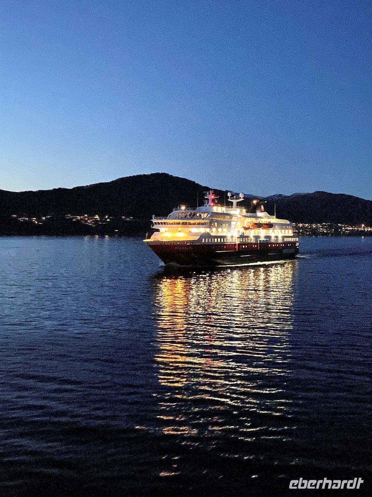 Voller Vorfreude auf unsere Schiffs-Abenteuer in Norwegen machen wir uns am Morgen aus den verschiedensten Ecken Deutschlands auf den Weg Richtung Norden – unser Ziel ist Bergen, wo unser Hurtigruten Schiff, die MS Nordkapp schon auf uns wartet. Es heißt, eine Fahrt mit den Hurtigruten sei die „Schönste Seereise der Welt“ - und so können auch wir uns der Faszination dieser Reise nicht entziehen und betreten am Nachmittag etwas erschöpft aber keineswegs weniger begeistert unser schönes Schiff, auf dem wir die nächsten 12 Tage die Schönheiten Norwegens entdecken werden. Um 20:30 Uhr verlassen wir pünktlich den Hafen von Bergen und begeben uns auf ein großes Abenteuer – von Bergen nach Kirkenes und wieder zurück. Ahoi!
