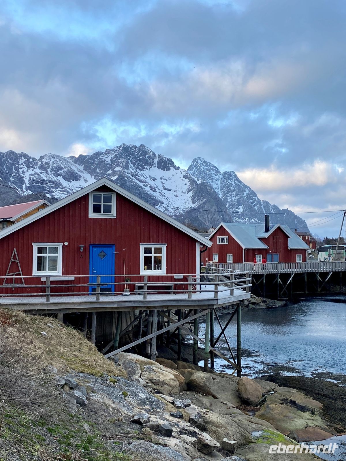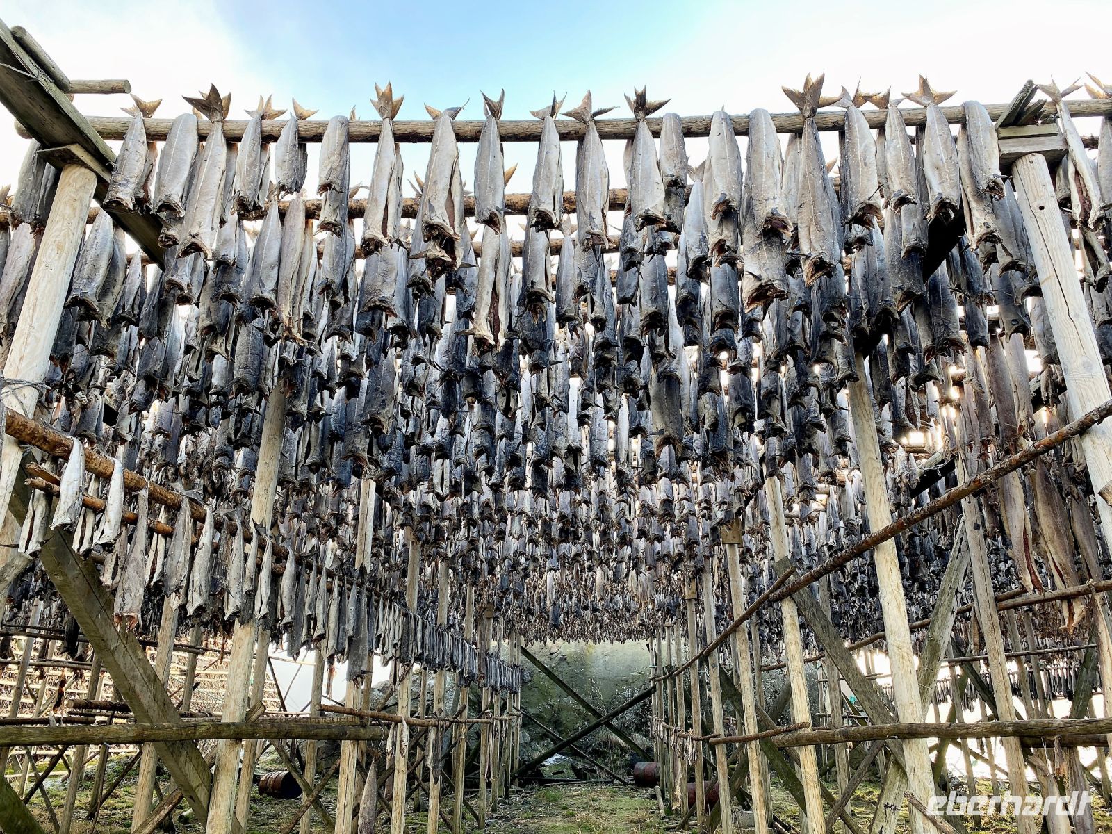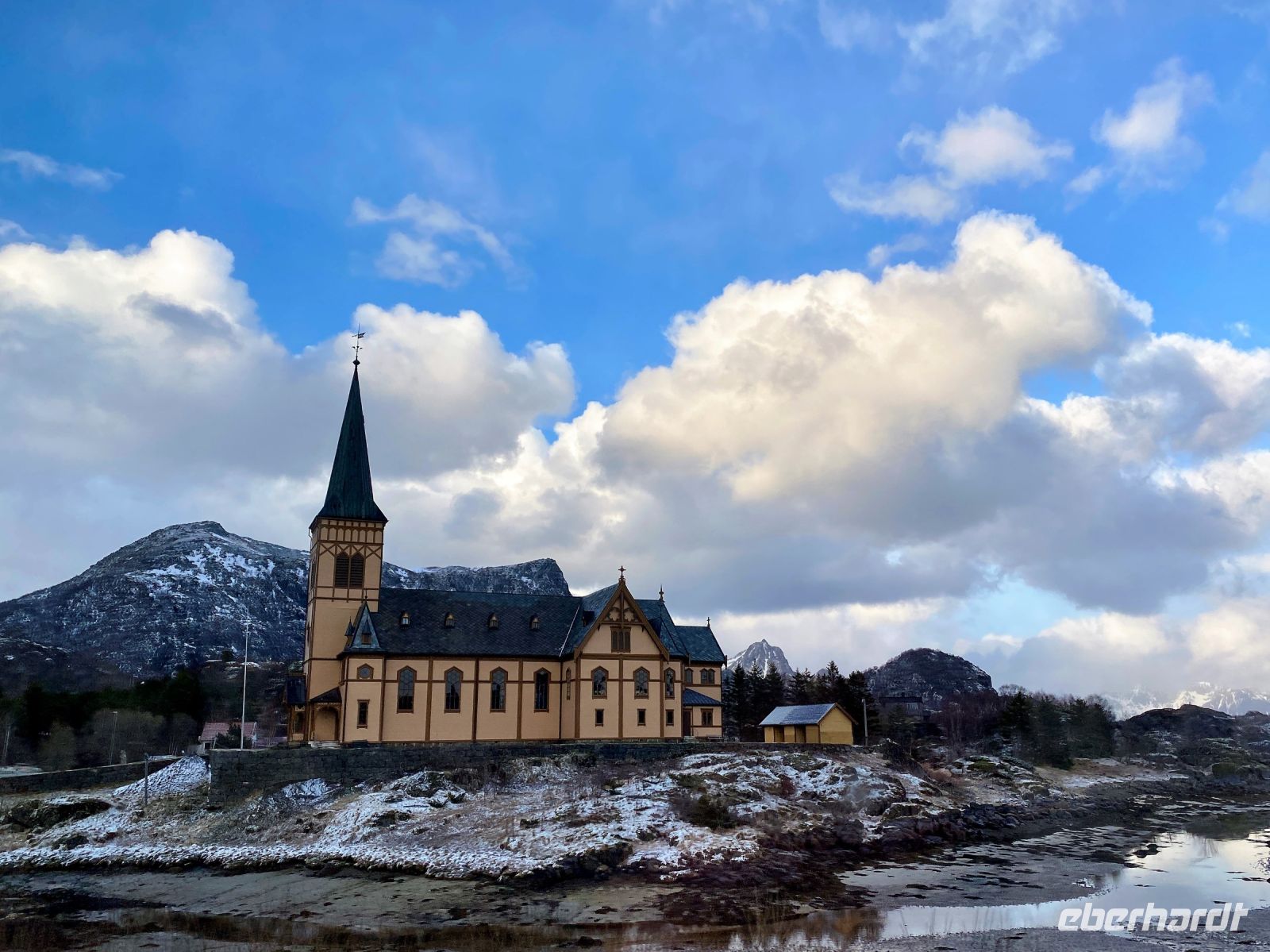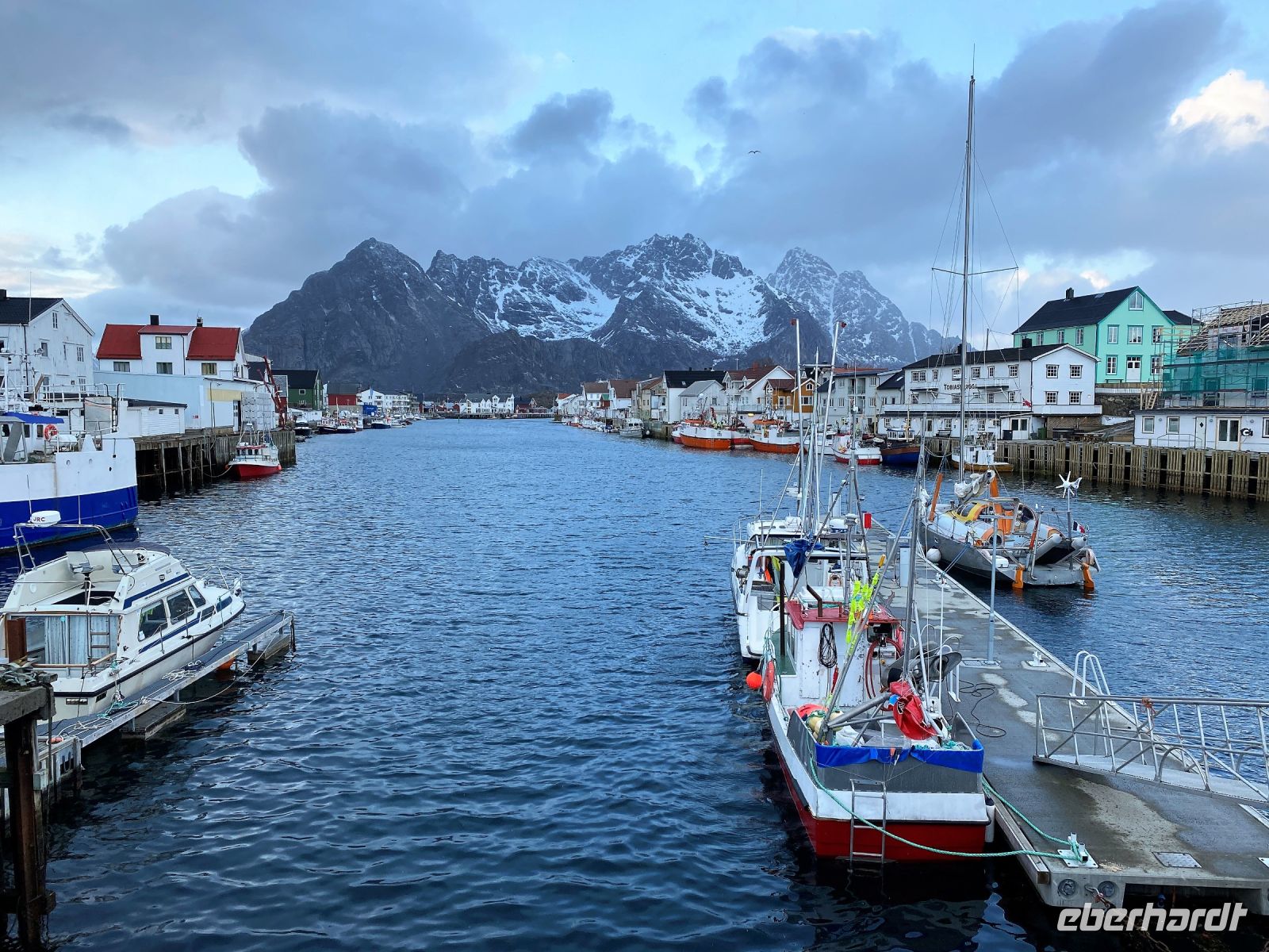 Ein großes Highlight auf unserer Reise ist die bezaubernde Inselwelt der Vesterålen und Lofoten. Und so machen sich bereits am frühen Morgen einige Gäste unserer Gruppe in Harstad auf den Weg, um die faszinierende Schönheit der Vesterålen zu entdecken. Der Ausflug beginnt mit der Fahrt zur Halbinsel Trondenes, wo wir eine mittelalterliche Steinkirche aus dem 13. Jahrhundert, die weltweit nördlichste ihrer Art, besuchen. Anschließend genießen wir von Trondenes aus die malerische Busfahrt über die Insel Hinnøya, entdecken hier sogar einige Rentiere, zu unserer Fähre am Gullesfjord. An Bord stärken wir uns mit einem heißen Getränk und frisch gebackenen Waffeln und genießen die herrliche Aussicht. Anschließend geht die Fahrt weiter entlang des Sigerfjords nach Sortland, wo wir von unserem Schiff hupend empfangen werden. Wieder an Bord stärken wir uns beim Mittagessen und freuen uns auf die vielen kleinen Highlights die der Tage heute noch mit sich bringt – das Hurtigrutenmuseum in Stockmarknen, die Fahrt durch den engen Raftsund am Nachmittag und für einige von uns die spektakuläre Seeadlertour mit Fahrt in den sagenumwobenen Trollfjord. Am frühen Abend erreichen wir den Hafen von Svolvær und verlassen hier für einige Stunden unser Schiff, um uns auf eine Entdeckungstour mit dem Bus über die berühmte Inselwelt der Lofoten zu begeben. Wir genießen die faszinierende Landschaft, entdecken das kleine Fischerdorf Henningsvær und kommen sogar in den Genuss, einmal so richtig den Stockfisch zu riechen, hängt er um diese Jahreszeit doch überall auf den Gestellen in und um Henningsvær. Wir versuchen ein gutes Foto zu ergattern, ohne uns direkt darunter stellen zu müssen, denn unser örtlicher Guide warnt uns ausdrücklich davor, wenn wir den Rest der Reise nicht auch so riechen möchten. Und so schaffen wir es, nach schönen und eindrucksvollen Stunden auf den Lofoten, am Abend ohne den Geruch von Stockfisch an unserer Kleidung unbeschadet zurück aufs Schiff.
