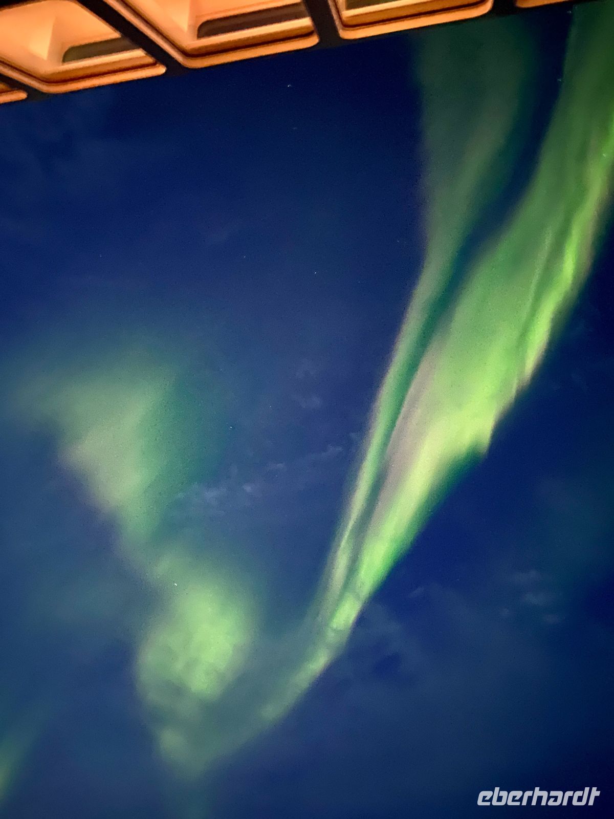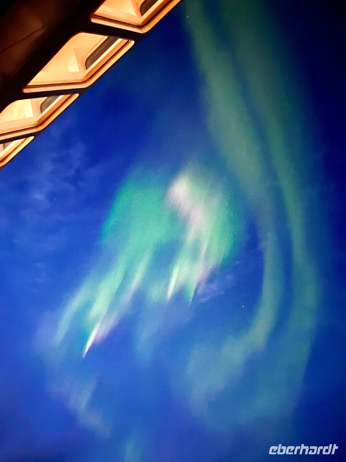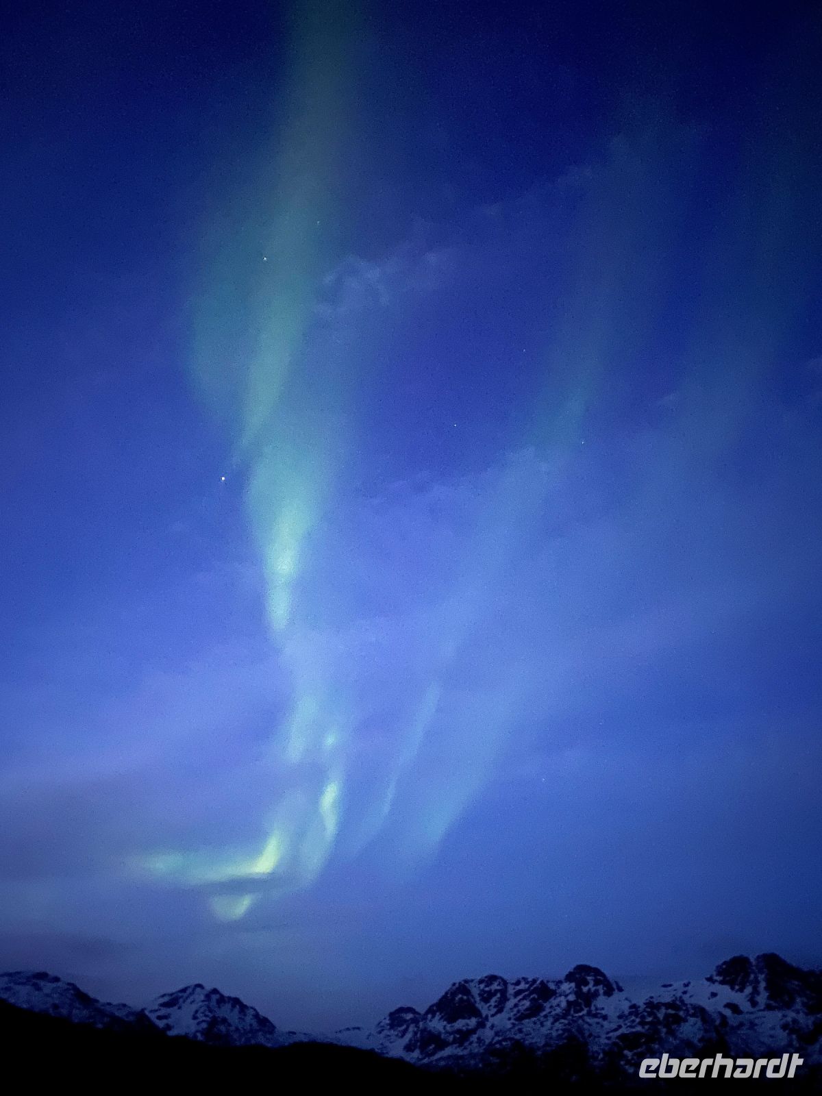 Am Morgen um 07:56 Uhr passieren wir den magischen Punkt. Zusammen mit unserem Schiff überqueren wir den nördlichen Polarkreis und befinden uns nun für die nächsten Tage in arktischen Gewässern. Ab sofort gehören wir zu den Nordlandfahrern und das muss gefeiert werden. Und so erwartet uns wenige Zeit später eine typischen Polarkreistaufe – hierbei wird mit einer großen Kelle tonnenweise Eis in deinen Nacken gekippt. Klingt kalt, ist es auch, aber den Spaß wirklich wert. Und als Entschädigung gibt es ja auch einen typisch norwegischen Moltebeeren-Likör. Mhh lecker. Die Besatzung amüsiert sich bei diesem Ritual jedenfalls köstlich. Nun heißt es aber erst einmal aufwärmen und etwas stärken, bevor wir am frühen Nachmittag Bodø erreichen. Dort angekommen begeben wir uns gemeinsam auf eine kleine Wanderung zum Rønvikfjell. Oben angekommen werden wir mit einem atemberaubenden Blick auf Bodø belohnt. Da hat sich der Aufstieg gelohnt. Wir genießen kurz diesen Moment, bevor wir uns auf den Weg zurück zum Schiff machen. Unser nächstes Ziel heute sind dann die Lofoten. Nach dem Abendessen und einem kurzen Zwischenstopp in Stamsund erreichen wir gegen 21:20 Uhr Svolvær, wichtigster Ort auf der Inselgruppe. Viele von uns nutzen den gut einstündigen Stopp für einen kleinen Abendspaziergang am Hafen oder um die Magic Ice Bar in unmittelbarer Nähe zum Schiff zu besuchen. Auch dieser kurze Aufenthalt wird uns in Erinnerung bleiben – zum einen besticht Svolvær nämlich durch sein einzigartiges Panorama, erheben sich hinter dem Hafen doch die schroffen Bergen, zum anderen liegt ein intensiver Fischgeruch in der Stadt. Direkt am Hafen stehen mehrere Stockfischgestelle, die um diese Jahreszeit eben auch vollgehangen sind mit Fisch. Dieser trocknet dort vor sich hin und verleiht der Stadt ein ganz geruchsintensives Flair. Aber was wären die Lofoten schon ohne ihren Stockfisch? Mit Fischgeruch in der Nase geht es wenig später weiter zum nächsten Highlight an diesem Abend. Eingepackt in unsere Jacken treffen wir uns auf Deck 7 zu einem leckeren Heißgetränk und warmer Fischsuppe und genießen die Fahrt durch den sehr engen Raftsund. Unser Kapitän legt auch noch einen kleinen Abstecher ein und bringt uns bis an die Mündung des berühmten Trollfjords, die er mit lichtstarken Scheinwerfen für uns erleuchtet, damit wir unsere Sammlung an Bildern erweitern können. Wer nun dachte, besser kann der Tag eigentlich nicht mehr werden, der irrte. Ein Blick in den Himmel ließ uns mit offenem Mund staunen – entdeckten wir um diese Jahreszeit doch tatsächlich noch Polarlichter. Farbenfroh tanzten sie für uns am Himmel und ließen unser Herz in die Höhe hüpfen. Ein perfekter Abschluss für diesen Tag.
