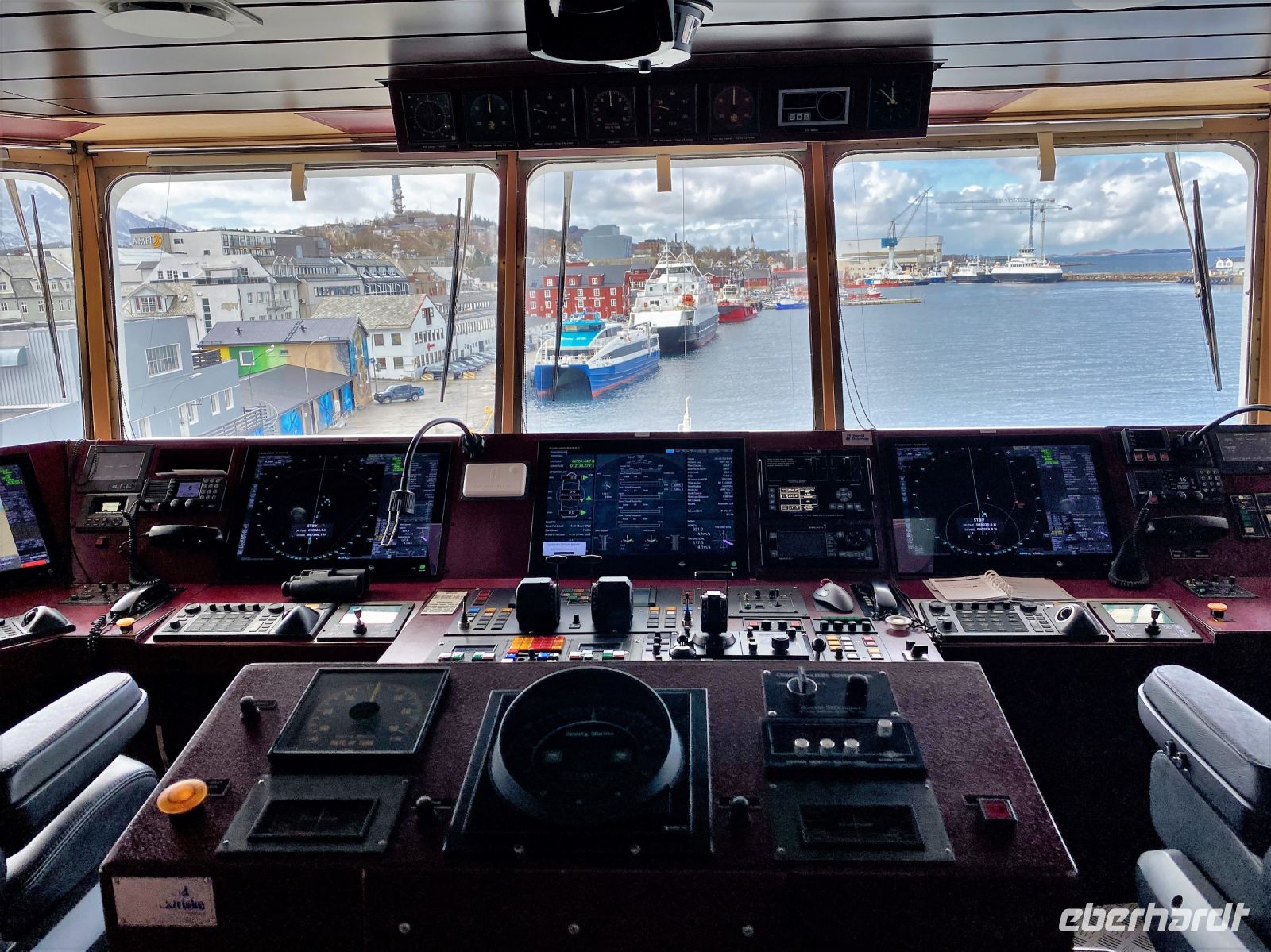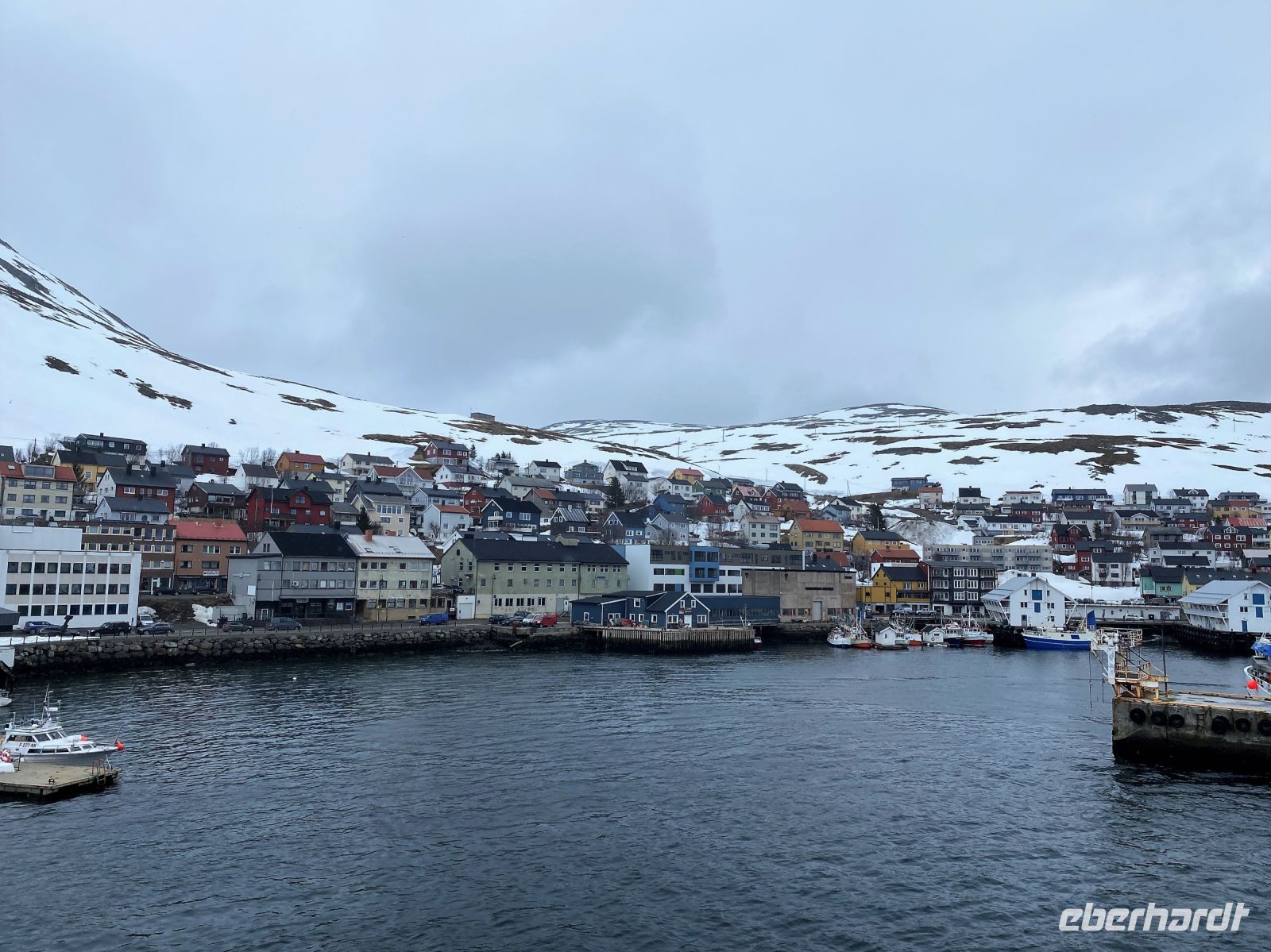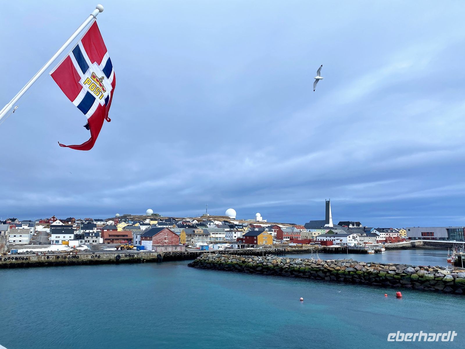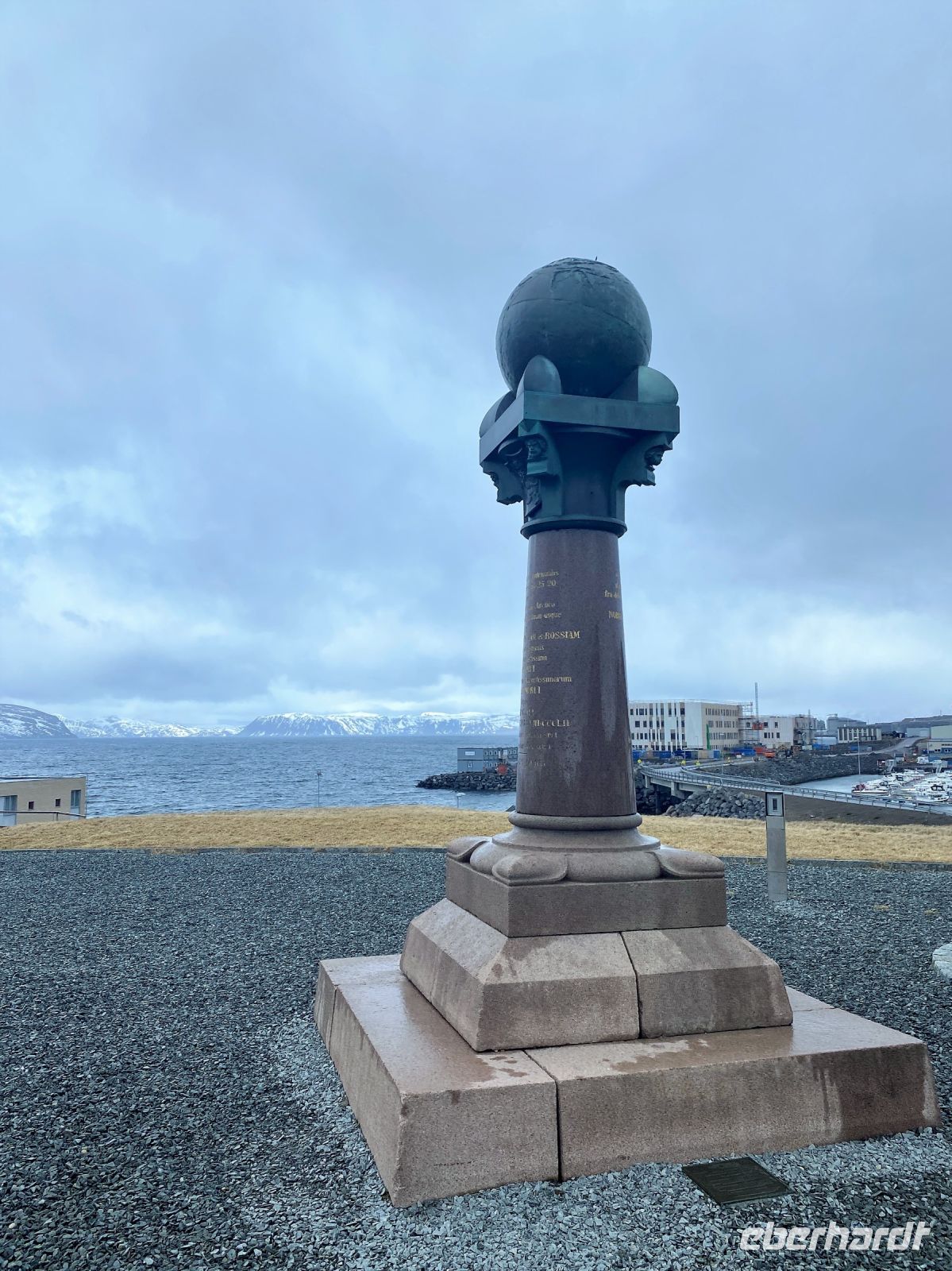 Schon am Morgen werden wir vom Schwesternschiff der MS Polarlys begrüßt und beginnen den Tag, nach einer wellenreichen Nacht, mit einem ausgiebigen Frühstück. Bereits am Vormittag legen wir in Hammerfest, der nördlichsten Stadt der Welt, an. Leider ist es aufgrund von Baumaßnahmen aktuell nicht möglich den Hafen im Zentrum direkt anzufahren, und so legt unser Schiff gut 2,5 km davon entfernt an. Unserer Stimmung tut das keinen Abbruch, haben wir von der anderen Seite einen guten Blick auf die sehr moderne Architektur der Stadt. Da heute auch noch Sonntag ist und die Stadt vermutlich leer, entscheiden wir uns in der Nähe unseres Schiffes zu bleiben und einen kleinen Spaziergang zum nahegelegenen Freilichtmuseum und zur Struve-Meridiansäule zu unternehmen. Von hier genießen wir einen tollen Blick auf die Küstenlinie bevor wir zurück zum Schiff gehen. Lange halten wir es heute nicht draußen aus, denn der Tag bringt uns typisch norwegisches Wetter – Regen, Wind und Kälte. Aber auch das müssen wir auf einer Reise mit dem Schiff um diese Jahreszeit in Norwegen wohl einmal miterleben, sonst würde zu Hause wohl niemand glauben, wo wir die letzten Tage waren. Und so verbringen wir den Rest des Tages bei gutem Essen und interessanten Gesprächen gemütlich auf dem Schiff, bevor wir am Abend kurz vor Mitternacht Tromsø erreichen.