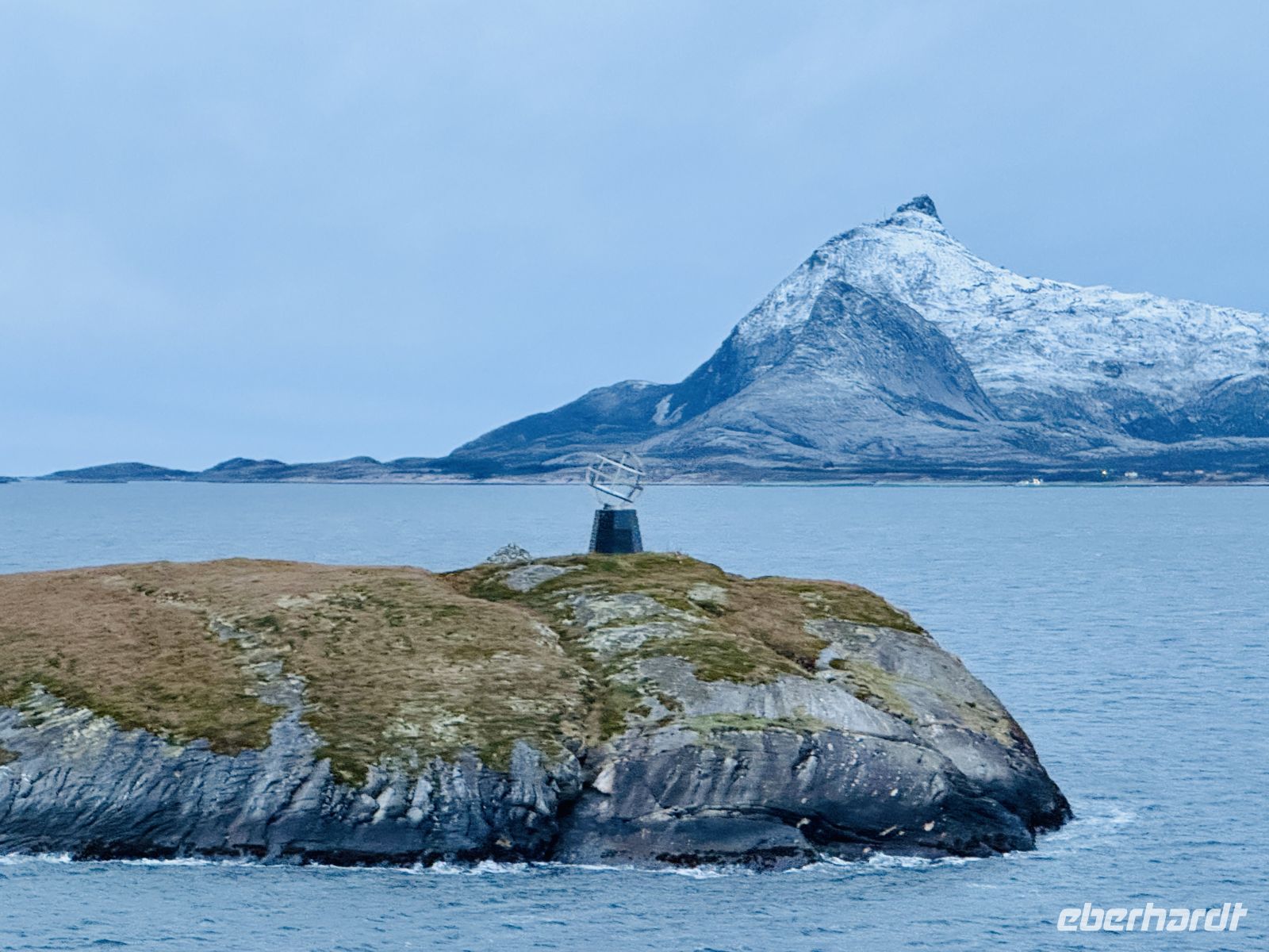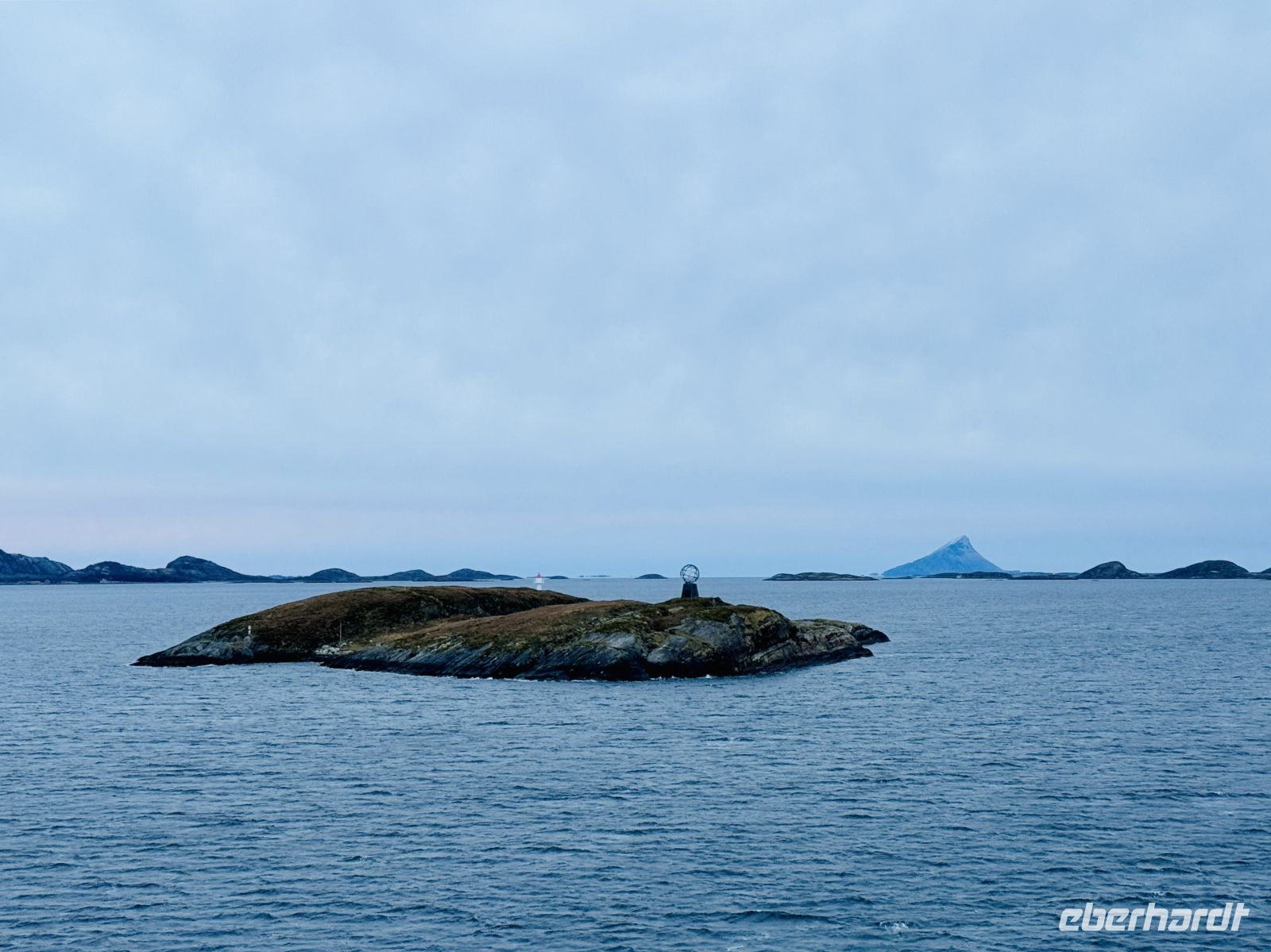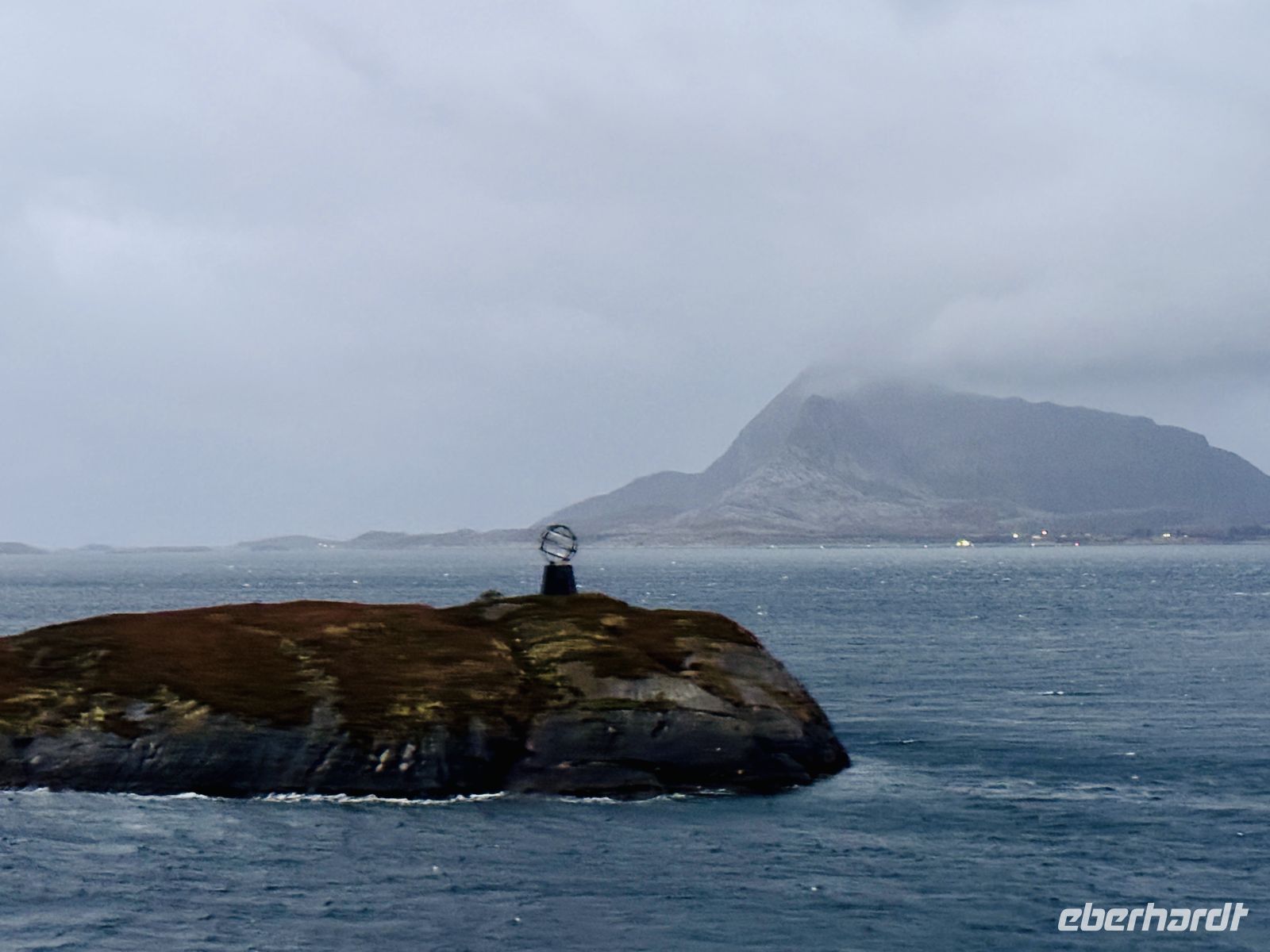 Der Morgen beginnt grau – eine dichte Wolkendecke liegt über dem Meer. Dennoch sind viele von uns schon früh auf den Beinen, denn heute steht ein ganz besonderer Moment bevor: kurz nach halb acht überqueren wir den Polarkreis. Draußen ist es frisch, die Luft klar, und zwischen Nebelschwaden taucht die kleine Insel mit dem weißen Globus auf, der die unsichtbare Grenze zur Arktis markiert. Für einen Augenblick ist es still – nur das gleichmäßige Brummen der Maschinen begleitet uns, während wir diese symbolische Linie passieren.
