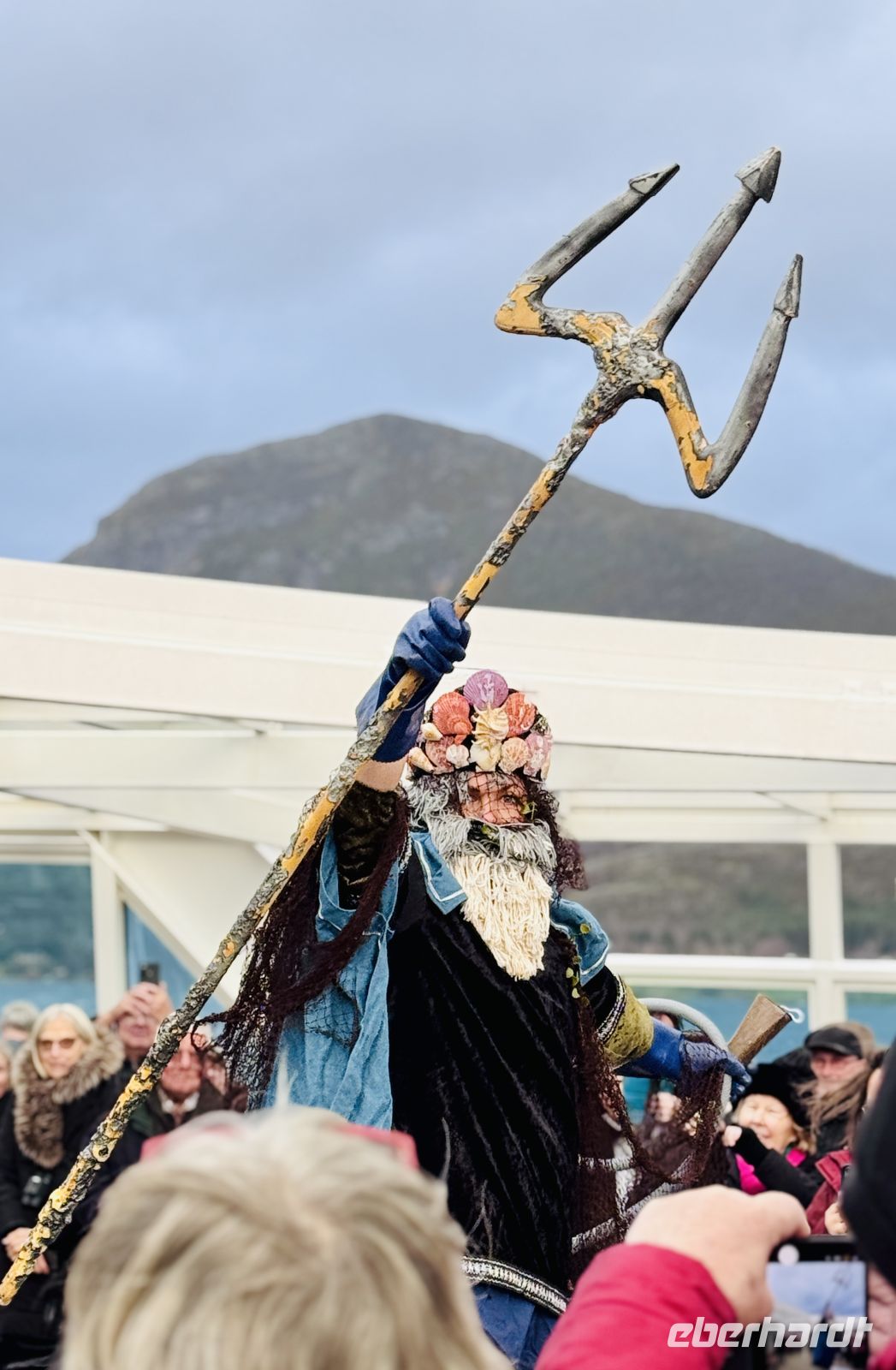Schon am Morgen erwartet uns auf der MS Midnatsol ein besonderer Moment: Wir überqueren erneut den Polarkreis – diesmal in südlicher Richtung. Auf dem Außendeck herrscht fröhliche Stimmung, trotz des grauen Himmels und der kühlen Brise. Die Crew steht schon bereit, um uns zur traditionellen Polarkreiszeremonie zu begrüßen. Ein Löffel Lebertran zu Ehren des Meeresgottes Njörd darf dabei natürlich nicht fehlen – die Gesichter sprechen Bände, als der kräftige Geschmack über die Lippen geht. Doch alle nehmen es mit Humor, und die kleinen Polarkreis-Löffel, die wir als Andenken erhalten, werden stolz in die Kameras gehalten.