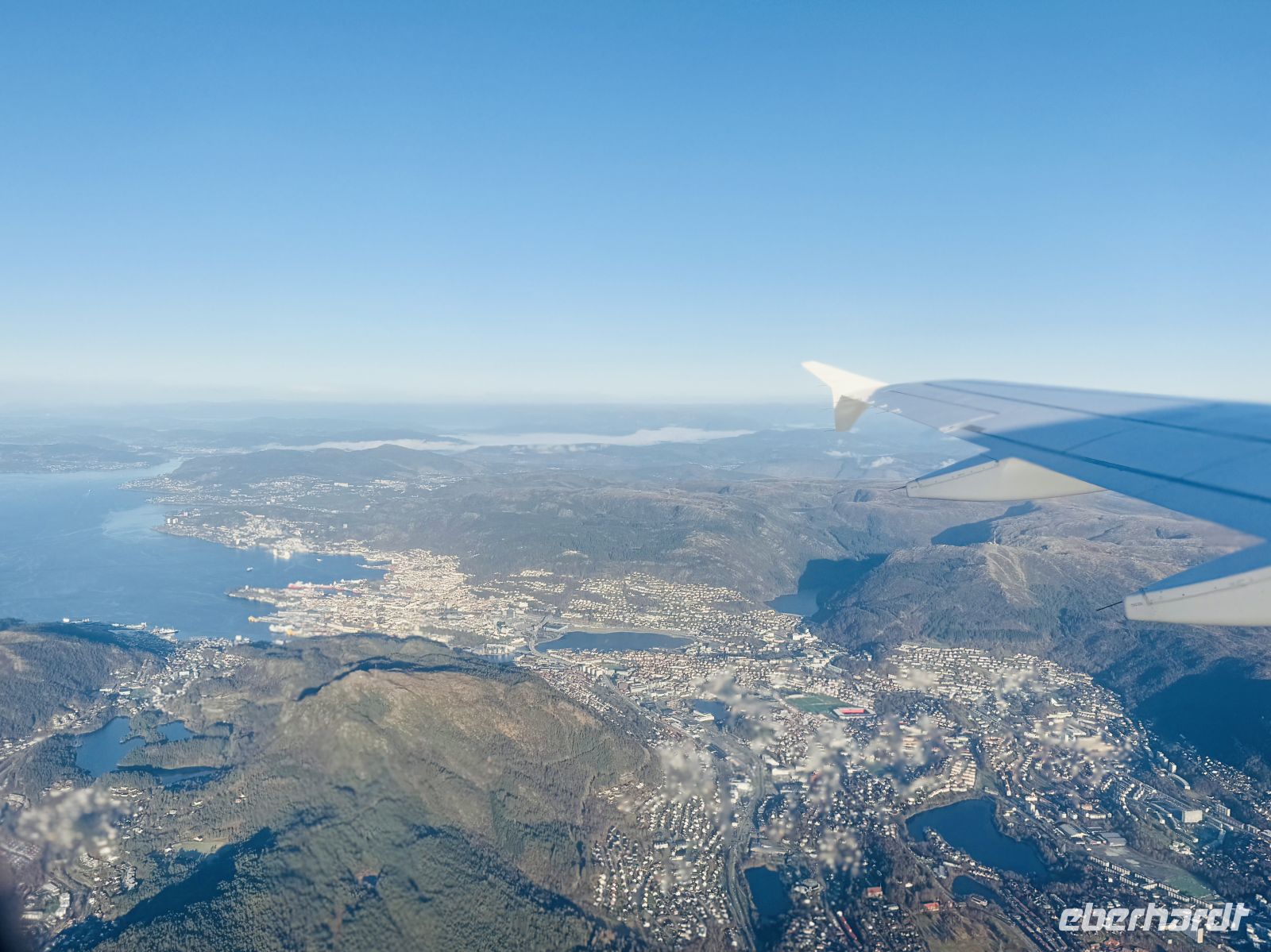 Am Flughafen angekommen, läuft alles ruhig und geordnet ab. Gegen Mittag heben wir ab – erneut bei bestem Wetter. Als das Flugzeug steigt, breitet sich unter uns ein Bild aus, das man nur schwer vergisst: Bergen, eingerahmt von seinen sieben Bergen, dazu die glitzernden Fjorde und das satte Blau des Meeres.