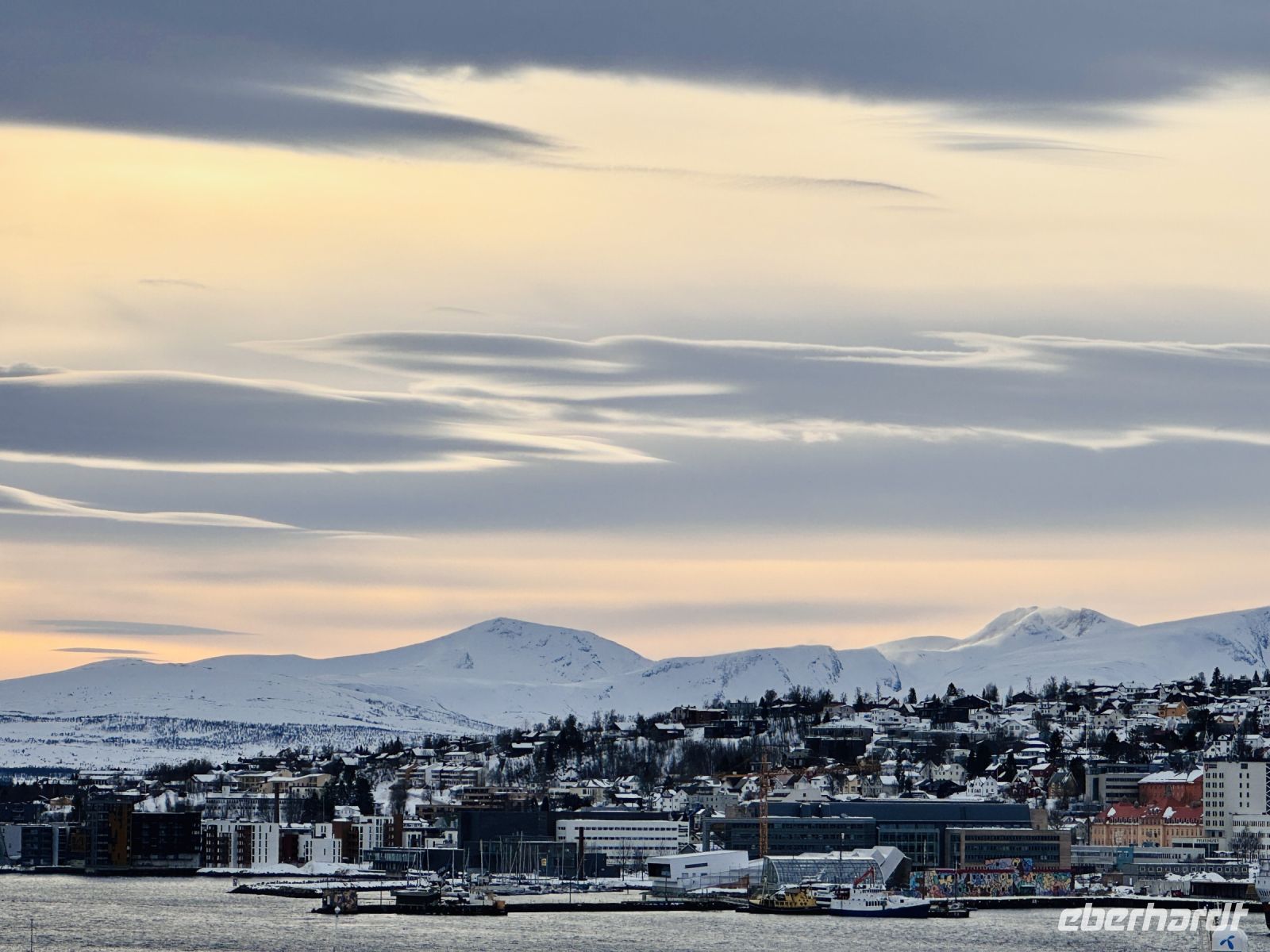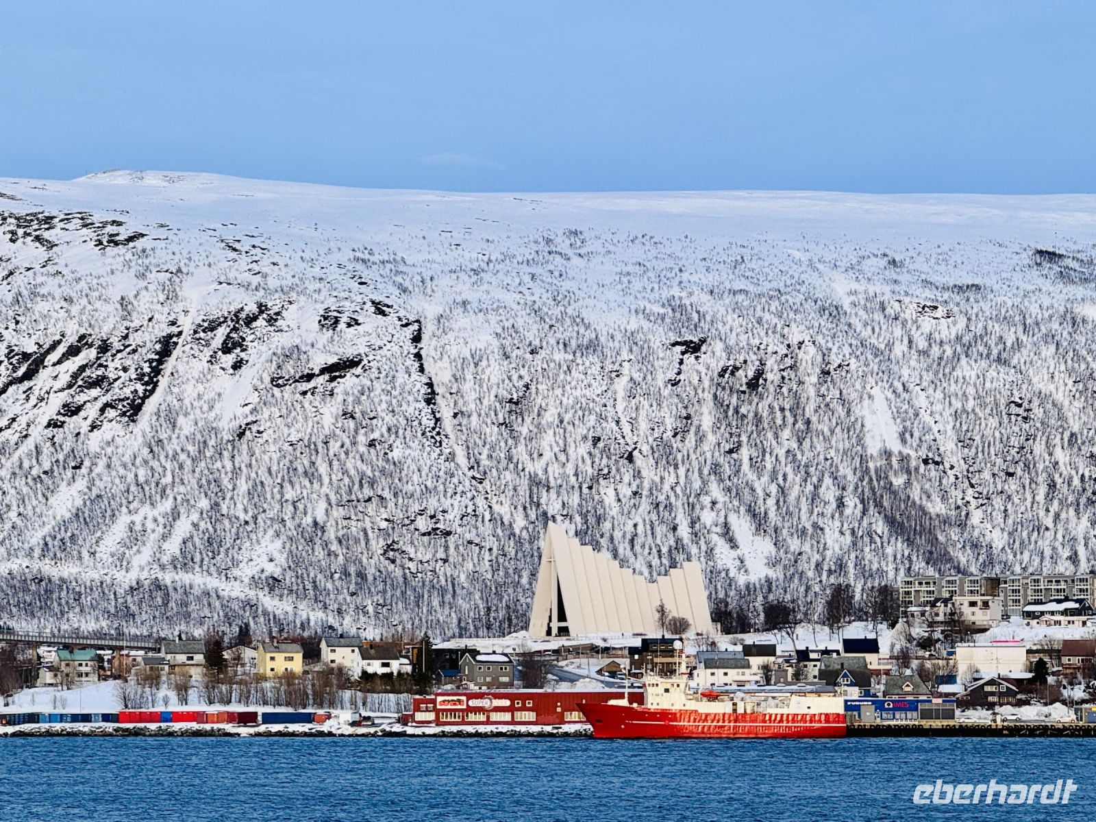 Der fünfte Tag unserer Reise beginnt entspannt an Bord der MS Vesterålen. Während wir unser Frühstück genießen, macht das Schiff einen kurzen Stopp in Harstad. Die schneebedeckten Berge der Vesterålen spiegeln sich im ruhigen Wasser, und die klare Luft lässt die Landschaft fast unwirklich erscheinen. Nach der Begegnung mit der MS Havila Capella setzen wir unsere Reise fort, vorbei an kleinen Inseln und entlang der tief eingeschnittenen Fjorde. Am Nachmittag erreichen wir Tromsø, das Tor zur Arktis. Unser Guide Florian erwartet uns bereits am Hafen. Er ist sachkundig und ruhig, vermittelt uns aber auf seine unaufgeregte Art viele interessante Details über die Stadt und ihre Geschichte. Unsere Rundfahrt beginnt mit einer Erkundung der Insel Tromsøya, auf der sich das Stadtzentrum befindet. Gemächlich fahren wir durch die Straßen und bekommen einen Eindruck von Tromsøs einzigartiger Mischung aus Tradition und Moderne. Wir passieren das alte Hafenviertel, das einst Ausgangspunkt großer Polarexpeditionen war, und fahren weiter zur Mack-Brauerei, der nördlichsten Brauerei der Welt. Tromsø wirkt lebendig – trotz der kühlen Temperaturen sind viele Menschen unterwegs, Cafés sind gut besucht, und zwischen den alten Holzhäusern stehen moderne Glasbauten, die das Stadtbild prägen. Bevor wir die Tromsø-Brücke überqueren, führt unsere Route noch durch das Universitätsviertel. Die Universität Tromsø ist ein bedeutendes Zentrum für arktische Forschung. Dann geht es weiter zur Eismeerkathedrale, einem der markantesten Bauwerke der Stadt. Ihre dreieckige Architektur erinnert an treibendes Eis, und im Inneren beeindruckt das riesige Glasmosaik, das in Blau-, Rot- und Goldtönen leuchtet. Der Raum strahlt eine beeindruckende Ruhe aus, die den Blick auf das kunstvolle Fenster noch eindrucksvoller macht. Nach einem Besuch im Polarmuseum, wo wir mehr über die wagemutigen Polarforscher und ihre Expeditionen erfahren, geht es zurück zum Hafen. Die MS Vesterålen nimmt Kurs weiter gen Norden, und während wir an Deck stehen, verschwinden langsam die Lichter von Tromsø in der Ferne. Doch der Abend hält noch eine Überraschung bereit: Zunächst zögerlich, dann immer intensiver beginnen sich grüne und violette Lichtbänder über den Himmel zu schlängeln. Die Polarlichter tanzen über uns, leuchten mal kräftig, mal sanft flackernd. In völliger Stille beobachten wir dieses Schauspiel – ein magischer Moment, der uns sprachlos macht.