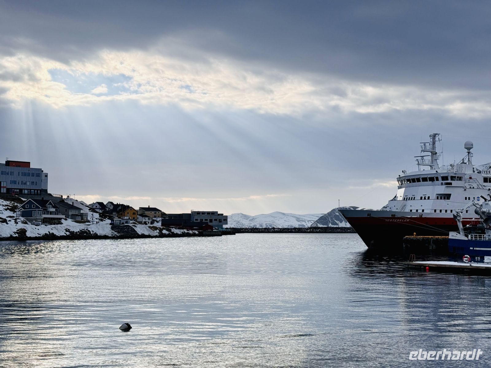 Nach einer weiteren Nacht voller magischer Polarlichter erwachen wir heute mit der Gewissheit: Unsere Reise hat ihren Wendepunkt erreicht. Kirkenes, hoch im Norden und nahe der russischen Grenze, markiert den Punkt, ab dem unser Schiff wieder Kurs Richtung Süden nimmt. Doch noch liegt ein spannender Vormittag vor uns – und das Wetter meint es gut mit uns. Bei klarem Himmel und frischer Luft erkunden wir die Stadt und ihre Umgebung. Die Möglichkeiten sind vielfältig: Einige von uns zieht es zur russischen Grenze, wo Geschichte und Gegenwart aufeinandertreffen. Andere lassen sich im berühmten Schneehotel von kunstvollen Eisskulpturen verzaubern oder wagen sich auf eine Königskrabben-Safari. Wer es ruhiger angehen möchte, schlendert durch das kleine Zentrum von Kirkenes oder besucht das Grenzlandmuseum mit seinen faszinierenden Einblicken in die Region. So genießen wir den Vormittag ganz nach unseren eigenen Interessen – und jeder von uns kehrt mit besonderen Erlebnissen zurück an Bord. Gegen Mittag heißt es Abschied nehmen. Langsam gleiten wir aus dem Hafen, die Sonne glitzert auf dem Wasser, während unser Schiff seine südgehende Route aufnimmt. Eigentlich sollte unser nächster Halt Vardø sein, Norwegens östlichster Hafen. Doch der Wind meint es heute nicht gut mit uns – zu stark sind die Böen, um dort sicher anzulegen. Also lassen wir Vardø hinter uns und genießen stattdessen die vorbeiziehende Küstenlandschaft vom Schiff aus. Am Abend kehrt Ruhe ein. Beim gemeinsamen Essen tauschen wir unsere Eindrücke des Tages aus und blicken nach vorne – denn auch wenn der Wendepunkt erreicht ist, liegt noch eine wundervolle Reise vor uns.