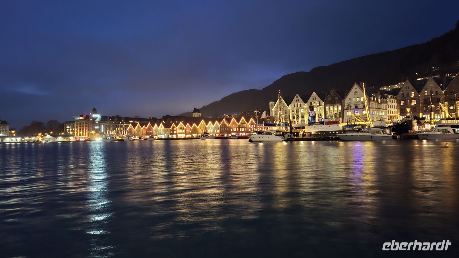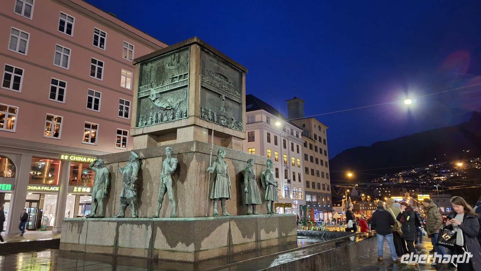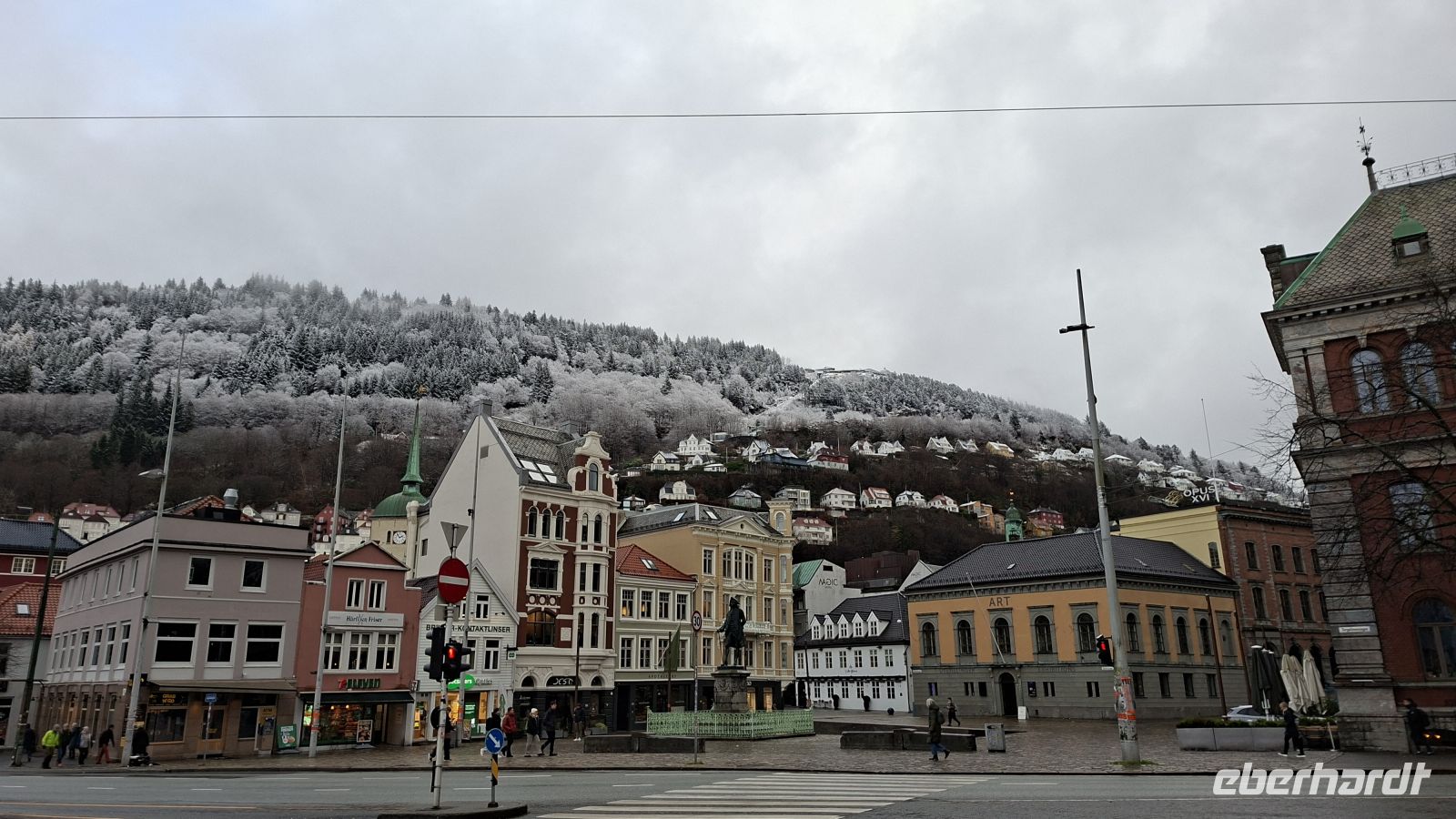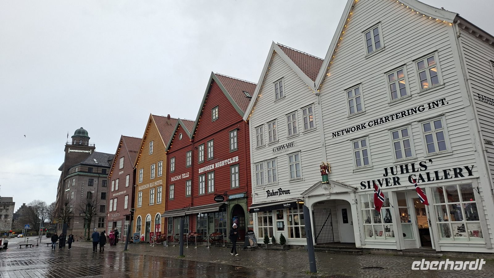 In der charmanten Küstenstadt Bergen, die malerisch zwischen Meer und Bergen liegt und für ihr oft wechselhaftes, „dramatisches“ Wetter bekannt ist, wurden wir direkt in nordische Stimmung versetzt. Vom Flughafen fuhren wir zum Kreuzfahrtterminal und brachen zu einem kleinen Orientierungsrundgang auf.