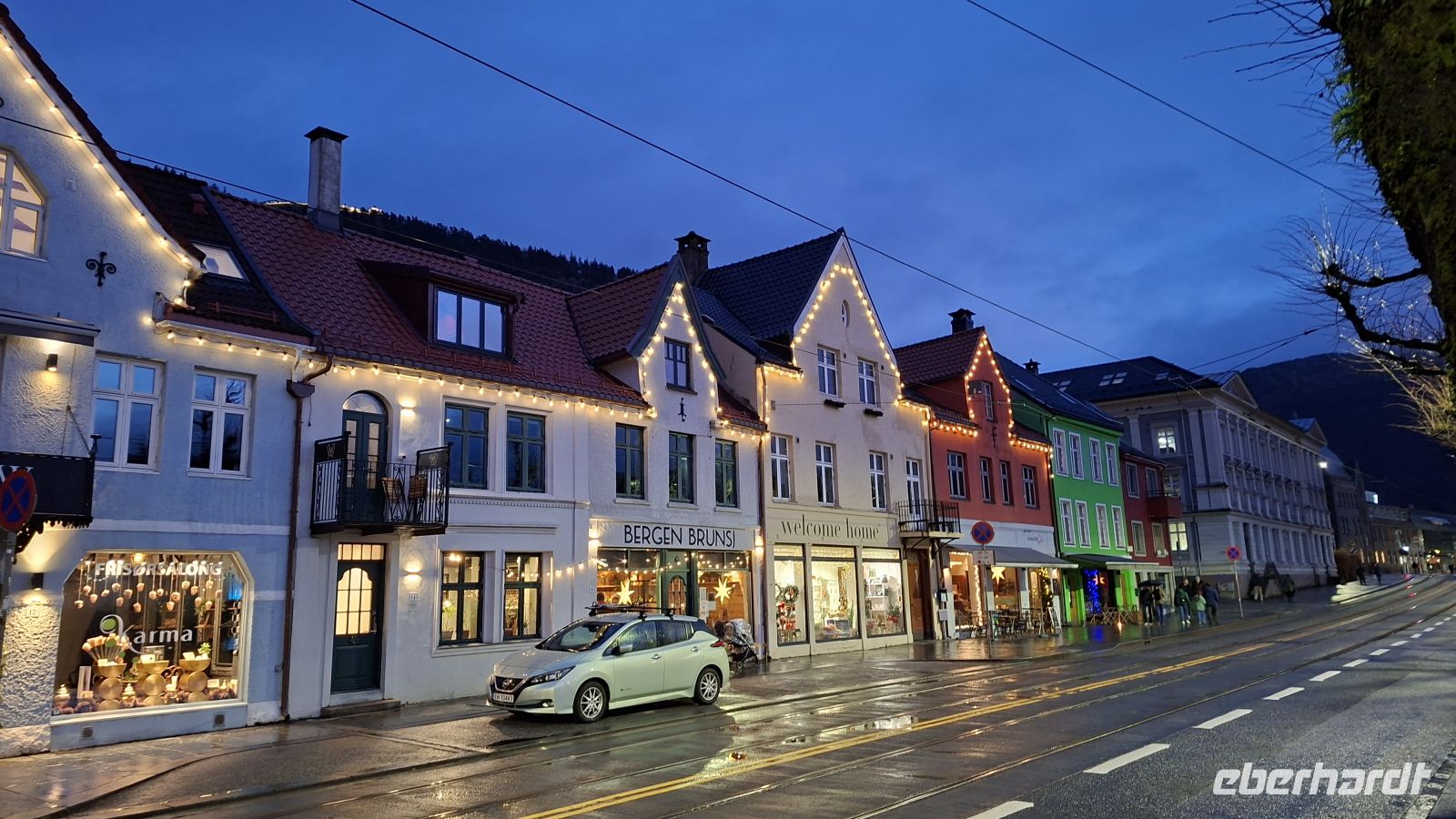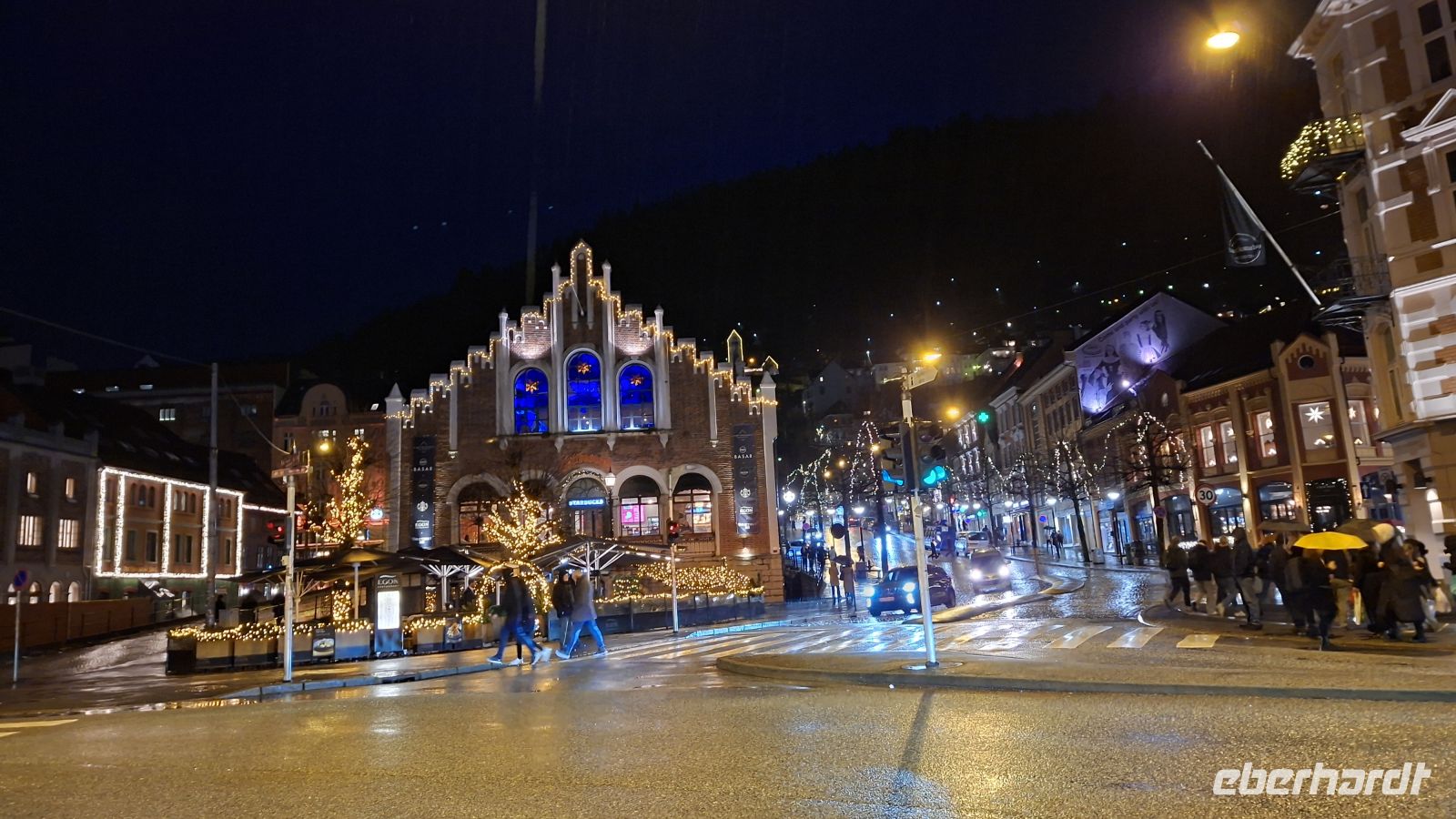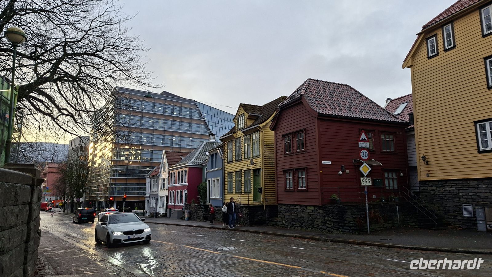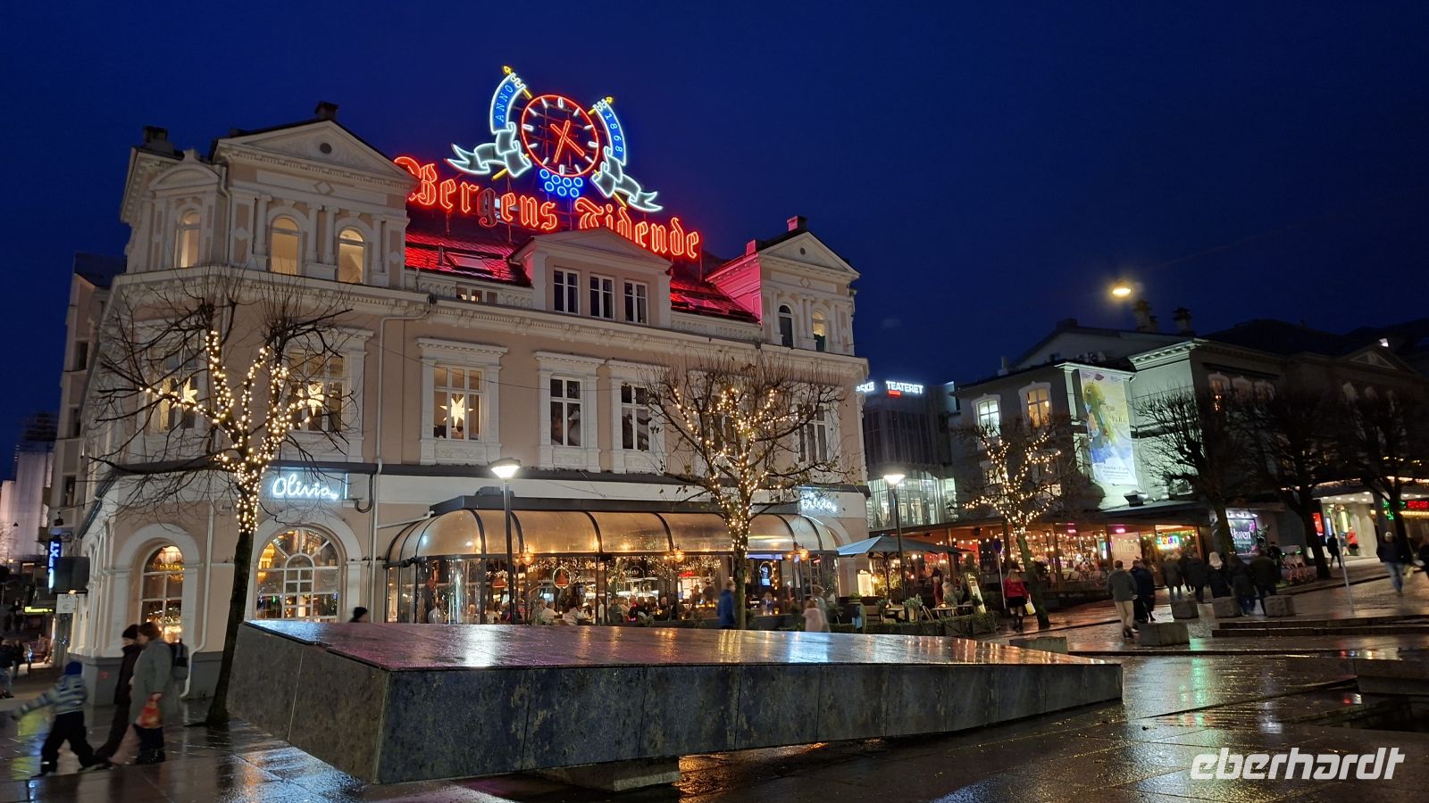 In der charmanten Küstenstadt Bergen, die malerisch zwischen Meer und Bergen liegt und für ihr oft wechselhaftes, „dramatisches“ Wetter bekannt ist, wurden wir direkt in nordische Stimmung versetzt. Vom Flughafen fuhren wir zum Kreuzfahrtterminal und brachen zu einem kleinen Orientierungsrundgang auf.