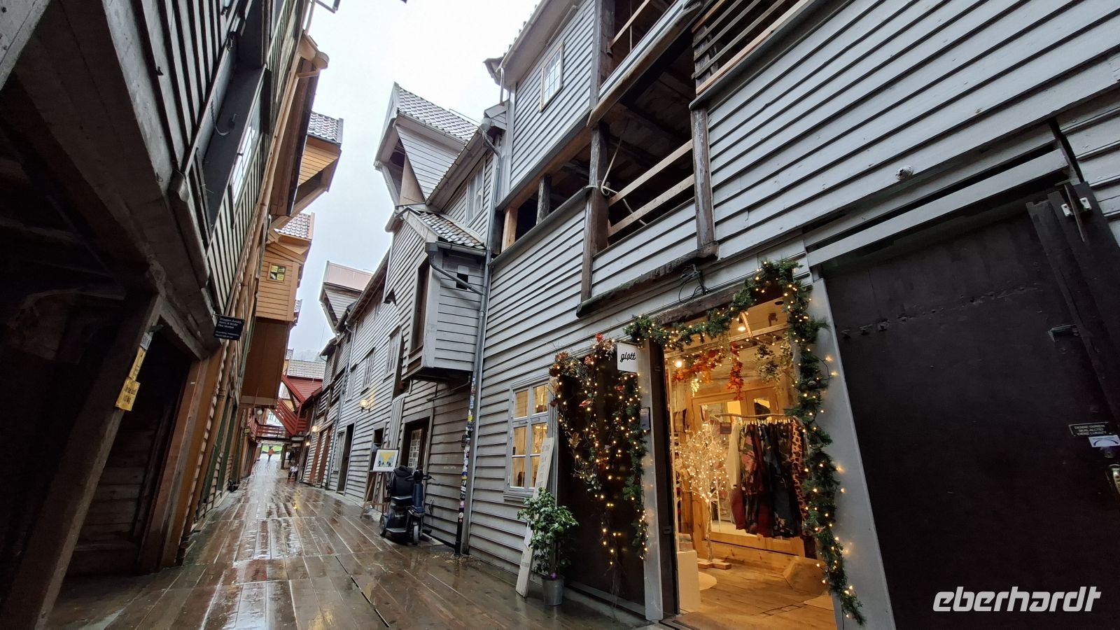 Wir spazierten durch Bergen bis nach Bryggen, dem berühmten Hanseviertel mit seinen bunten, leicht schief wirkenden Holzhäusern direkt am Hafen. Bryggen gehört zum UNESCO-Weltkulturerbe und steht für die lange Handelstradition der alten Hansezeit – enge Gassen, knarrende Holzbalken und das Gefühl, ein bisschen in der Zeit zurückzureisen. Nach unserem Weg zurück zum Terminal fühlten wir uns schon erstaunlich heimisch in der Stadt.