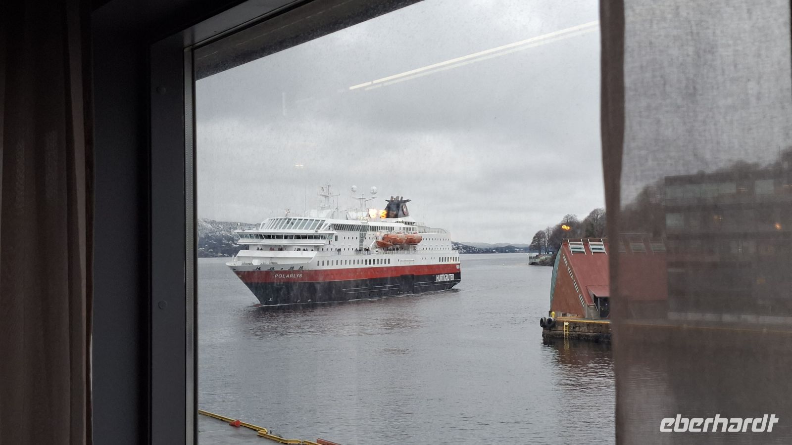 Gegen drei Uhr am Nachmittag erreichten wir dann wieder den Hafen von Bergen. Nun war endgültig der Moment des Abschieds gekommen: von der MS Polarlys und der liebgewonnenen Crew. Wir winkten noch ein letztes Mal, schauten zurück – und stiegen dann in den Bus, der uns zu unserem Hotel brachte.