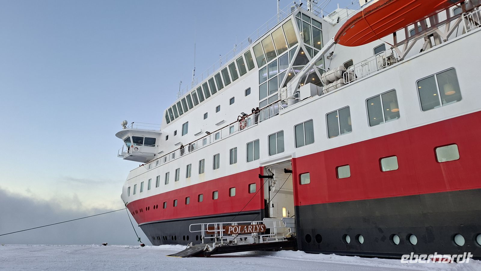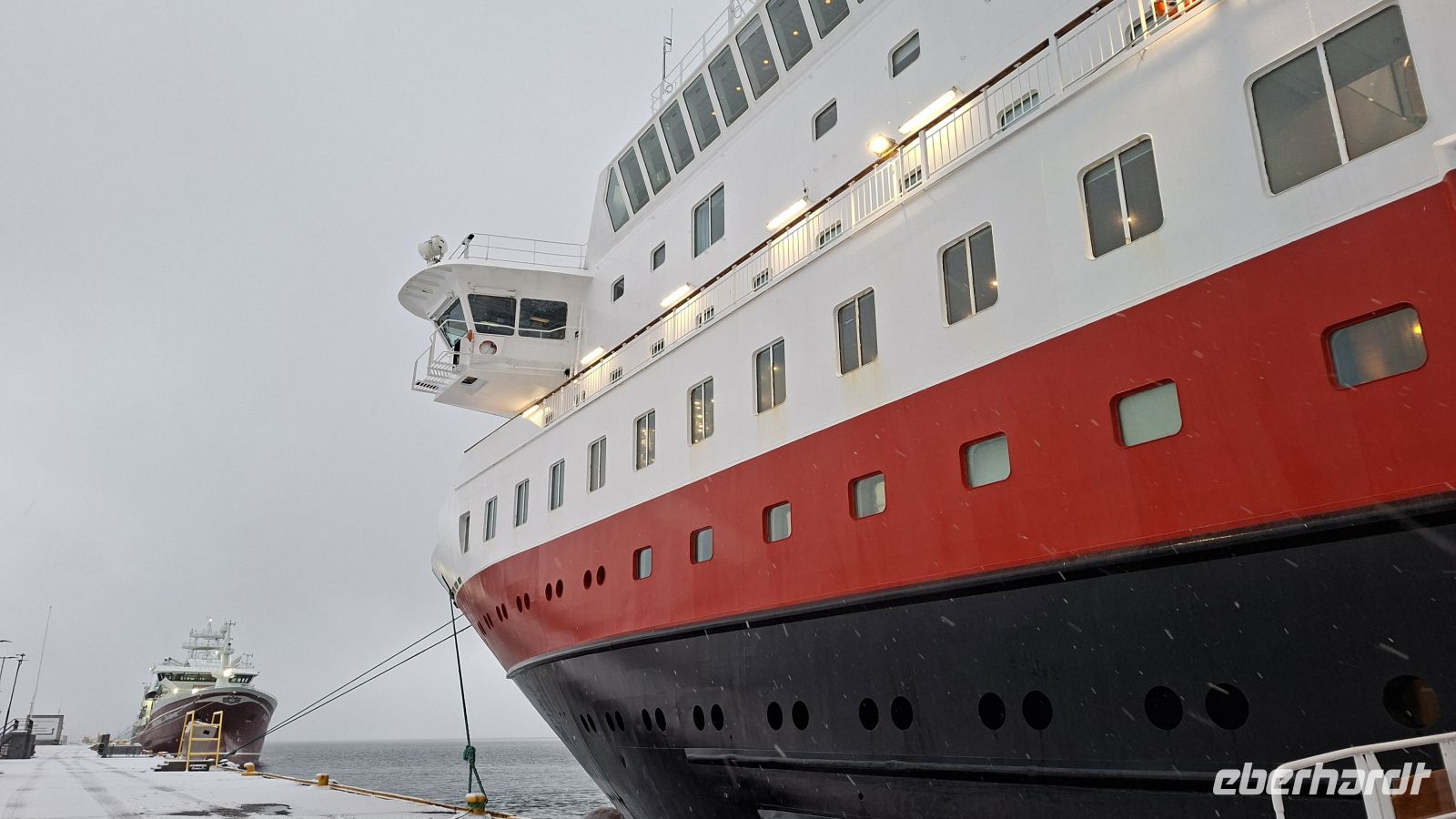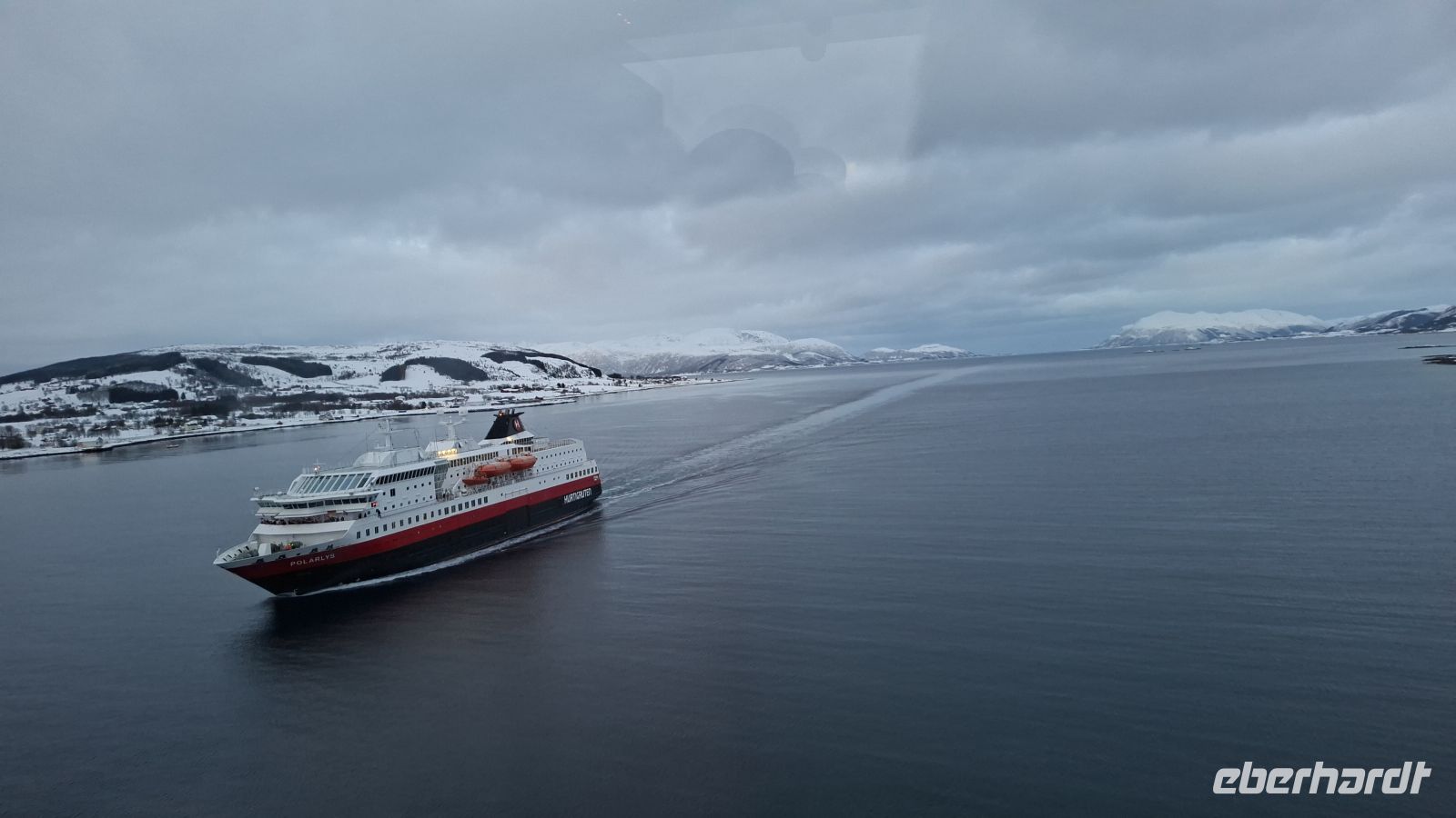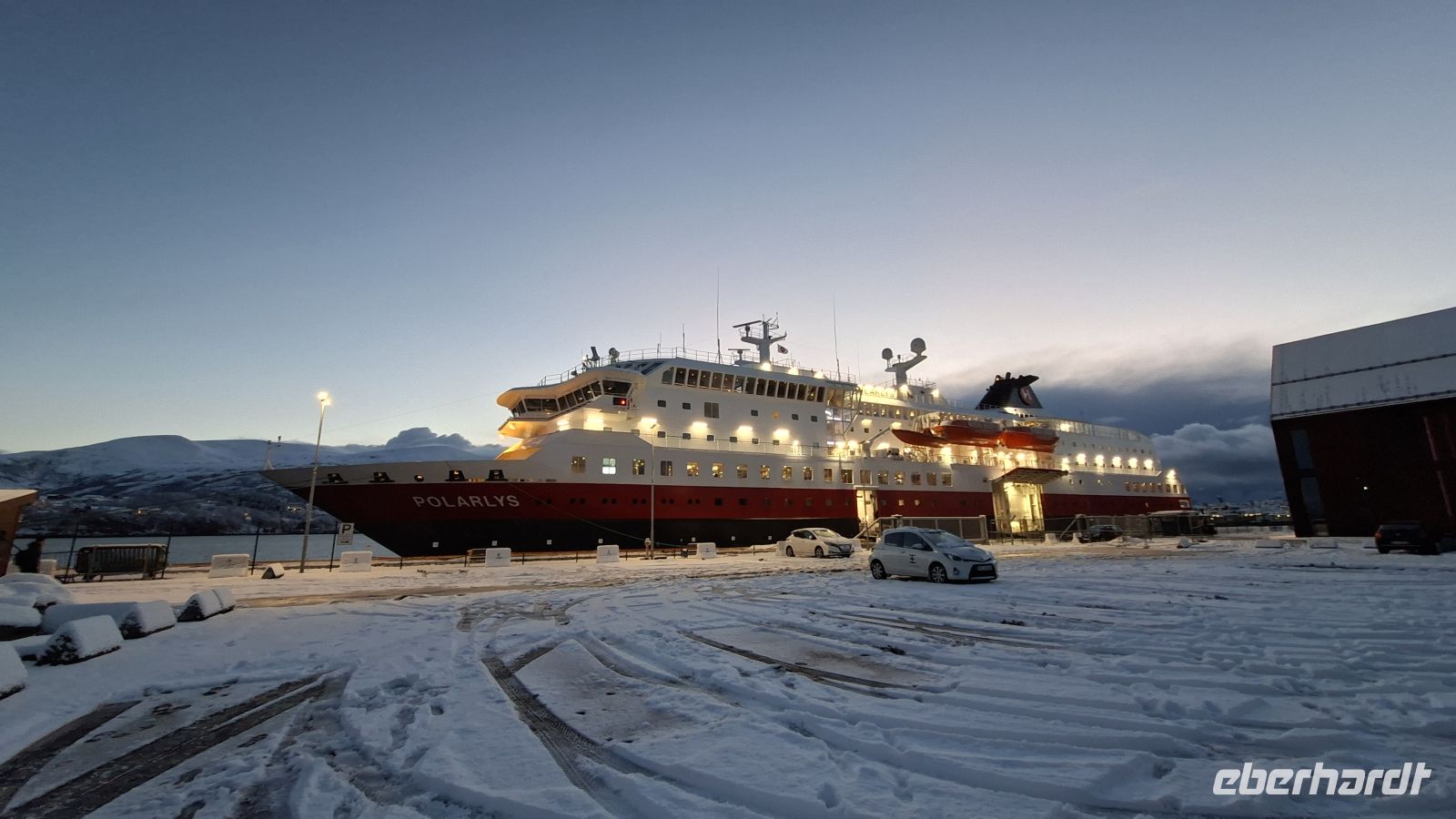 Dann war es so weit: Die MS Polarlys von Hurtigruten, unser zukünftiges schwimmendes Zuhause, lief in den Hafen ein. Die Polarlys ist ein klassisches Postschiff der norwegischen Küstenroute – nicht nur Kreuzfahrtschiff, sondern auch Versorger für die kleinen Küstenorte. Genau diese Kombination macht die Reise so authentisch: Wir waren nicht nur Touristen, sondern ein kleines Stück Alltag an der norwegischen Küste.