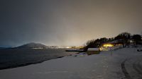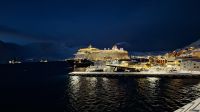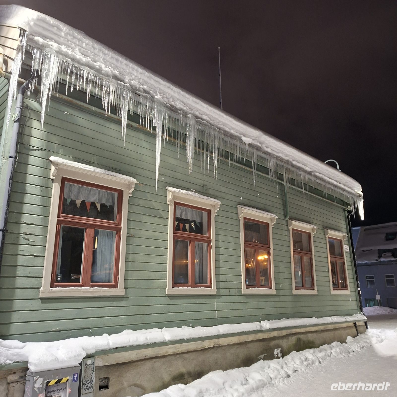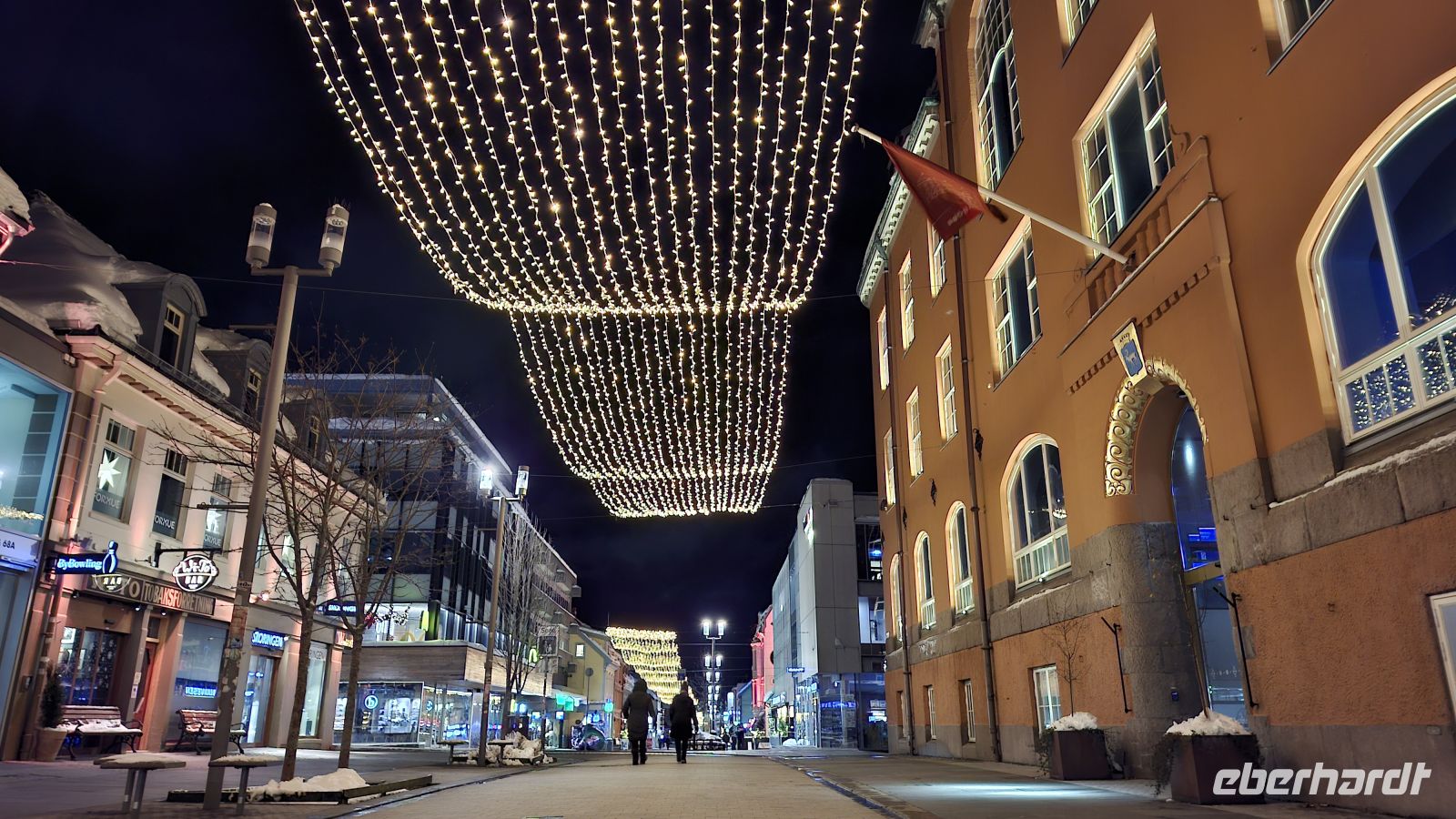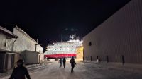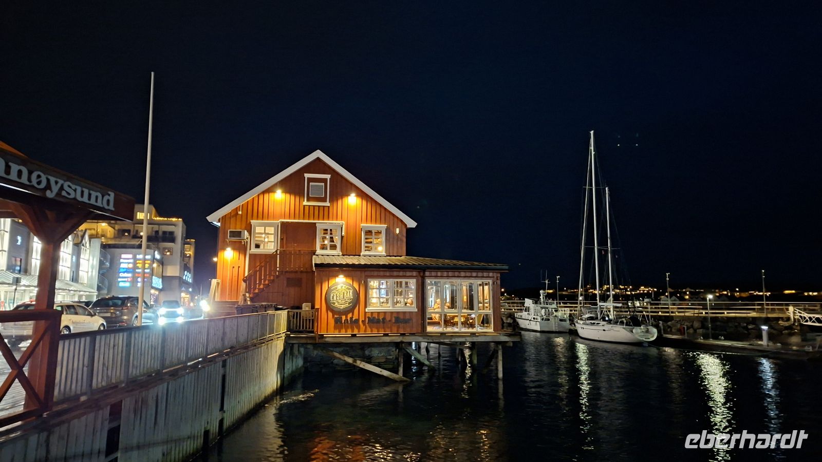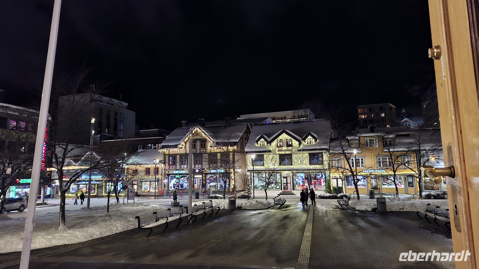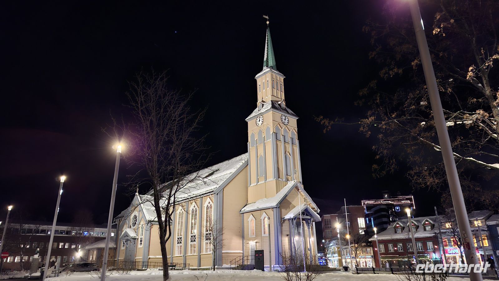 In der Nacht erreichten wir erneut Tromsø. Diesmal erlebten wir die Stadt in einem ganz anderen Licht – nämlich im nächtlichen. Einige Gäste unternahmen einen Spaziergang zur Tromsø Domkirke, der hübschen Holzkirche im Zentrum, und erlebten ein besonderes Mitternachtskonzert. Andere drehten noch eine kleine Runde durch die stille Stadt. Lichter spiegelten sich im Schnee und im Wasser, und die Straßen wirkten ruhiger, fast vertraut, als hätten wir Tromsø schon ein bisschen ins Herz geschlossen.