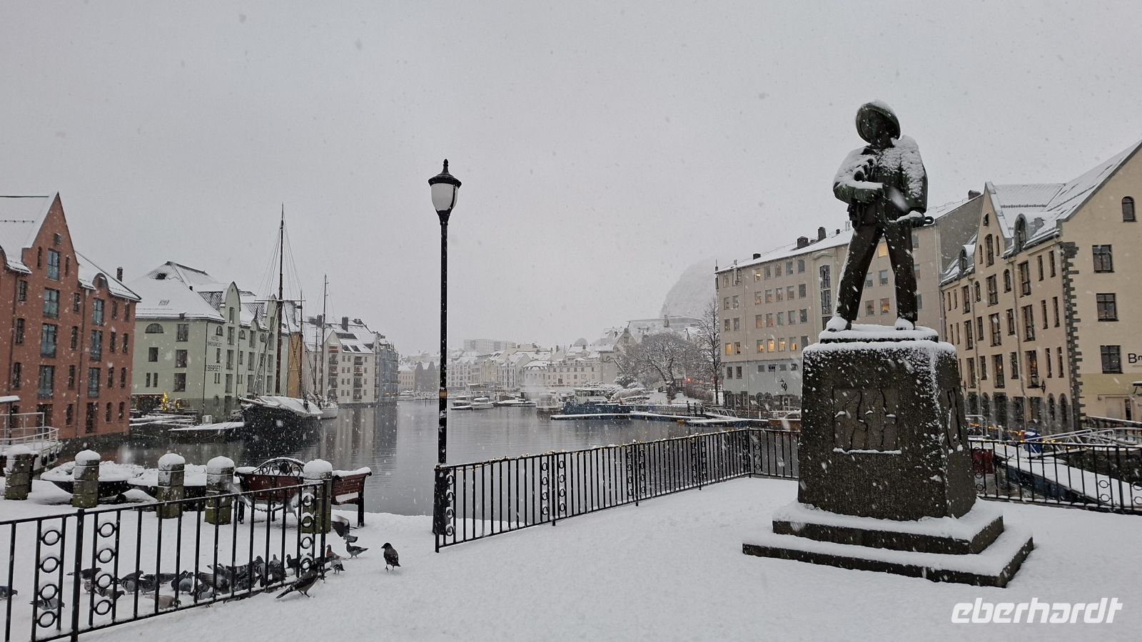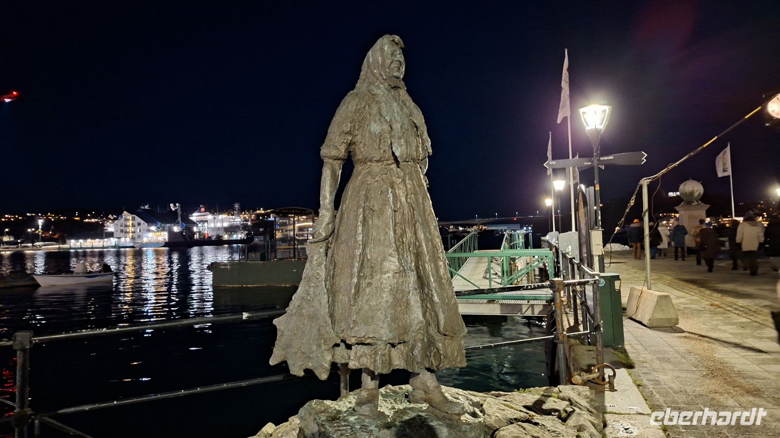 Am Nachmittag erreichten wir Kristiansund und nutzten die Liegezeit für einen Spaziergang zur Klippfischfrau. Die Statue erinnert daran, wie wichtig der getrocknete Klippfisch für die Stadt war. Ein kurzer Rundgang, ein paar Fotos, tief die salzige Luft einatmen – dann ging es wieder zurück an Bord.