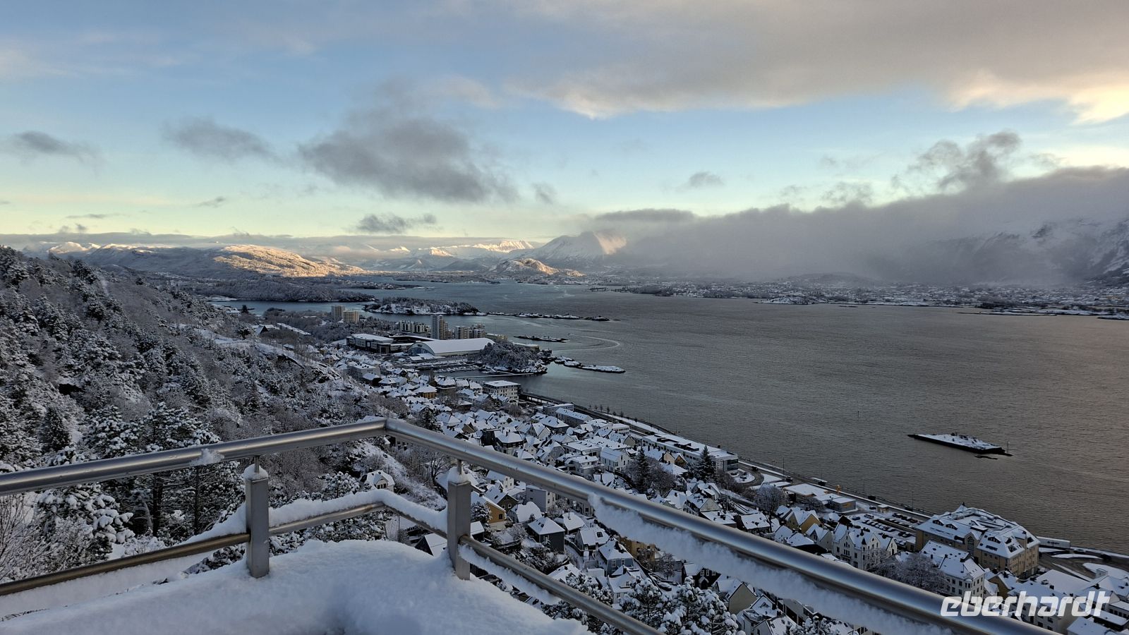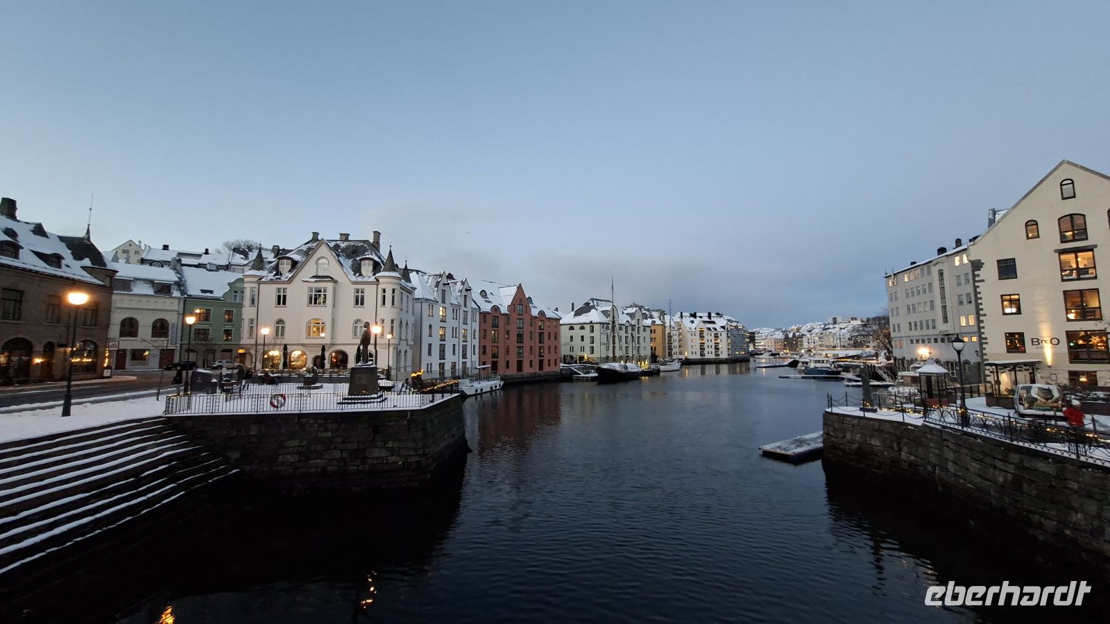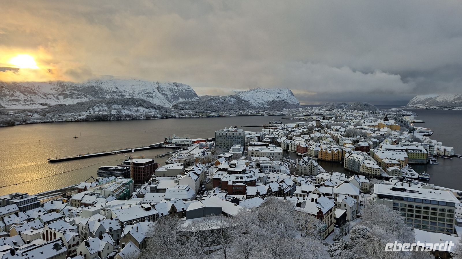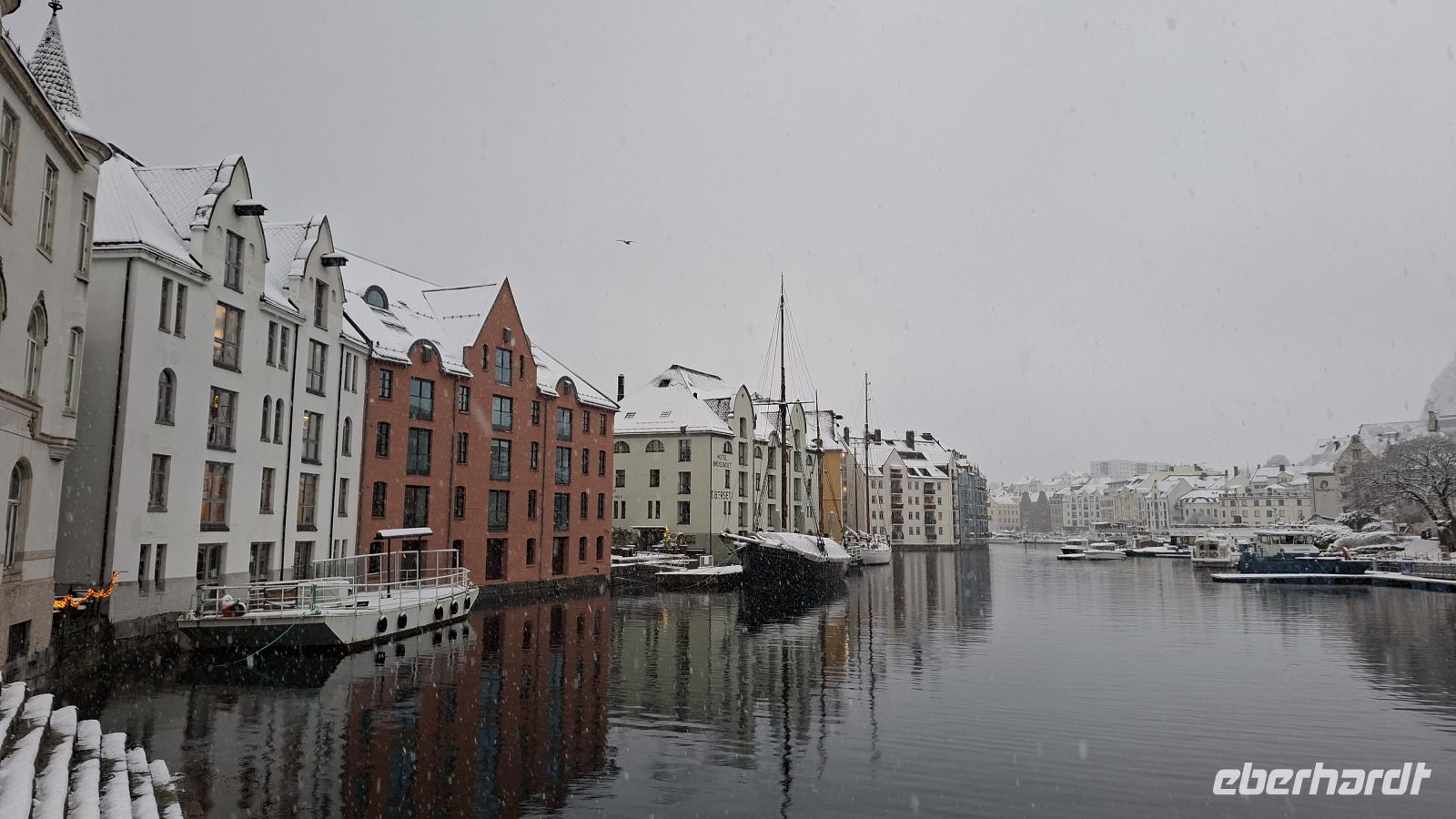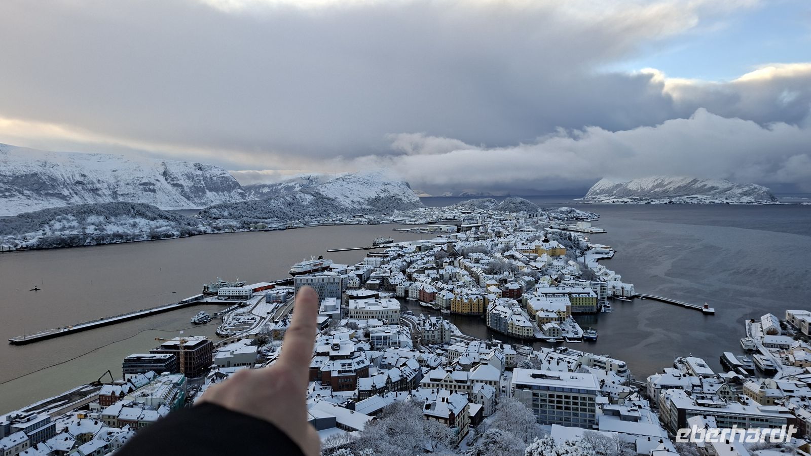 Am Morgen sind wir in Ålesund angekommen, einer charmanten Küstenstadt, die sich über mehrere Inseln erstreckt und von Bergen und Meer eingerahmt wird. Ålesund ist vor allem dafür bekannt, dass es nach einem großen Stadtbrand Anfang des 20. Jahrhunderts fast komplett im Jugendstil wieder aufgebaut wurde – deshalb sahen wir überall verspielte Fassaden, Türmchen und Ornamenten, fast wie aus einem Märchenbuch. In der Ferne lagen die Regionen, von denen wir schon so viel gehört hatten: der berühmte Geirangerfjord und die dramatische Bergwelt der Sunnmøre-Alpen, die diese Gegend so spektakulär machen.