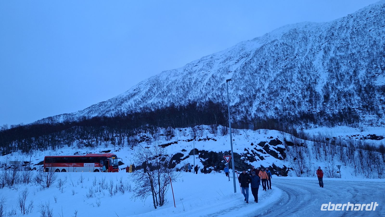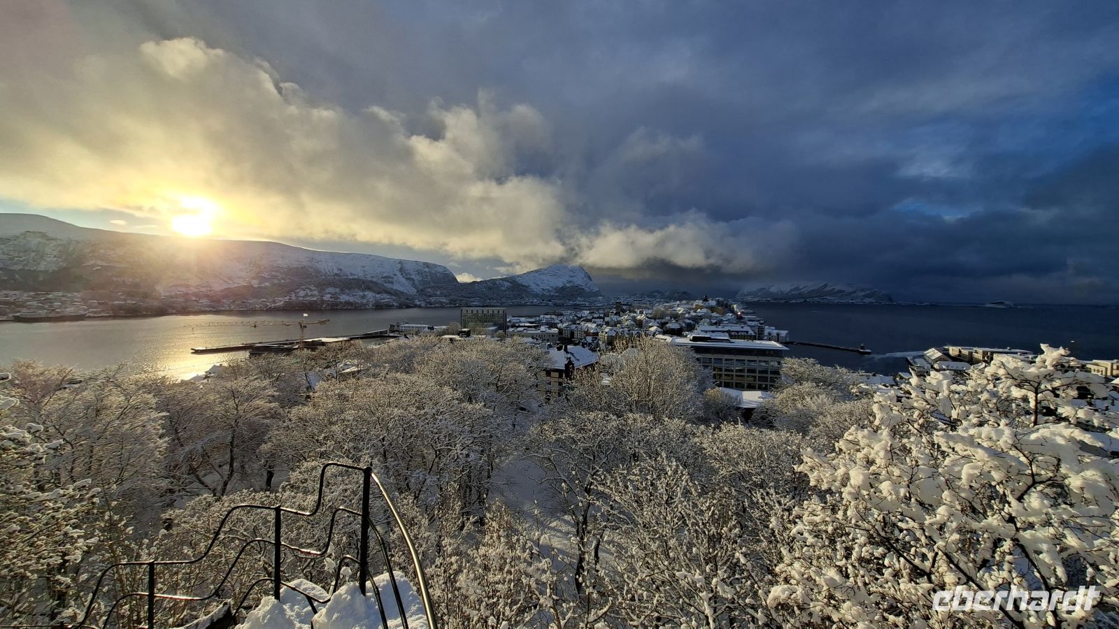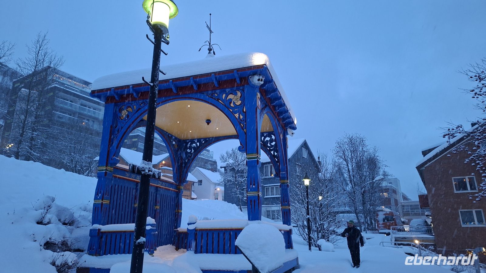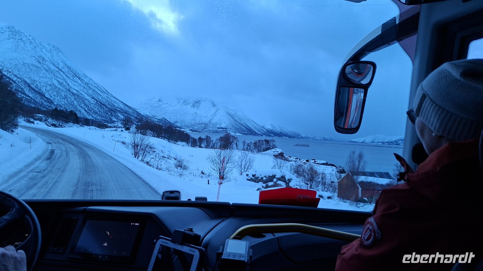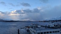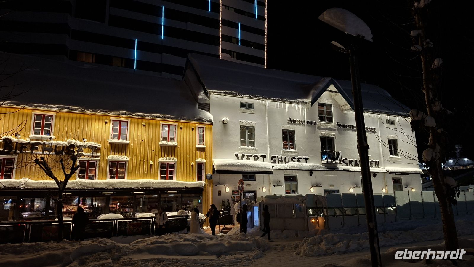 Nach dem Mittagessen erreichten wir Tromsø. Es war zwar erst früher Nachmittag, aber schon wieder am Dämmern – typisch Norden im Winter. Das bläulich-graue Licht legte sich über die Stadt und verlieh allem eine fast märchenhafte Stimmung.