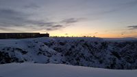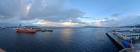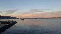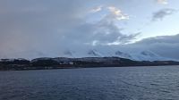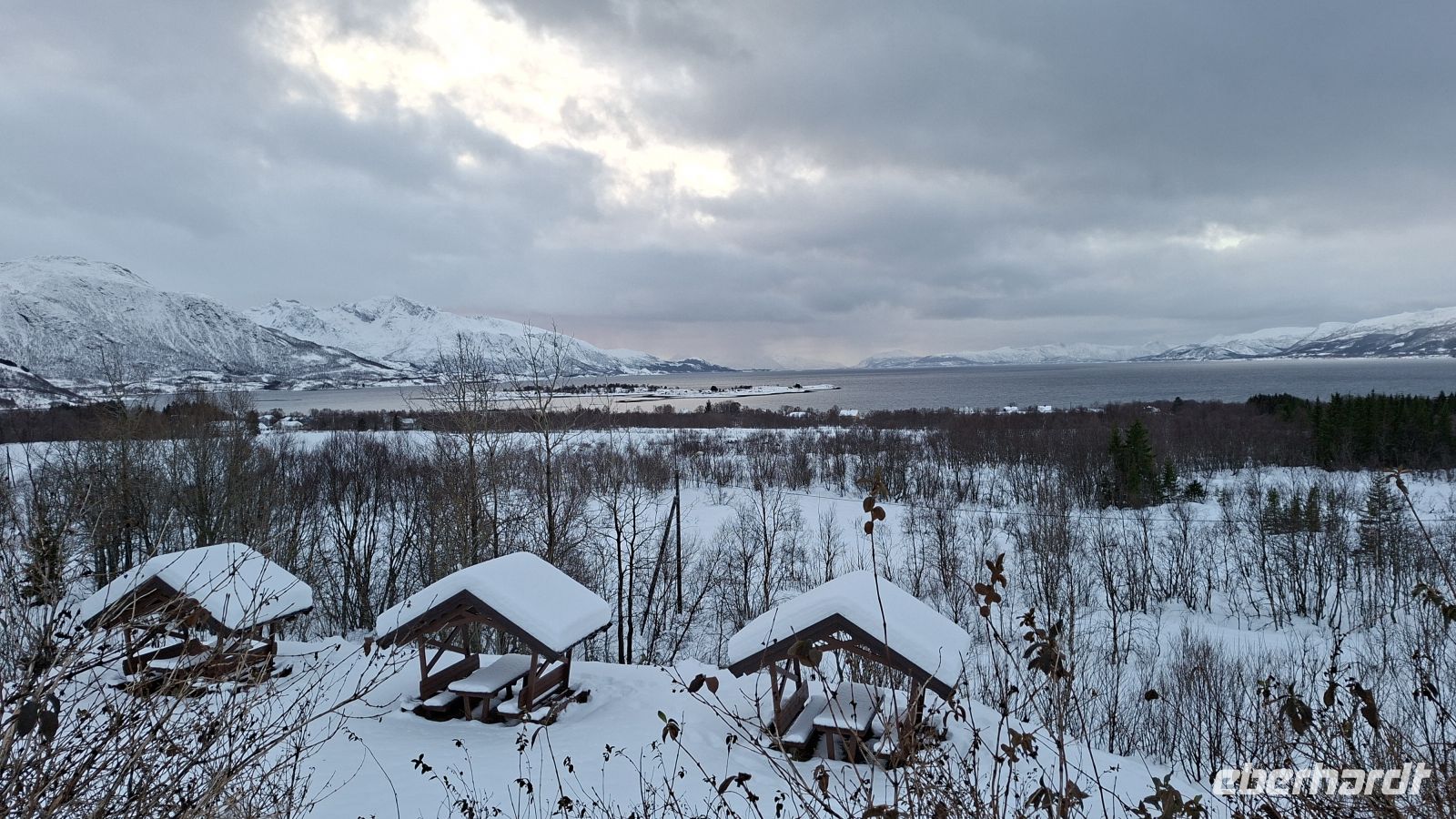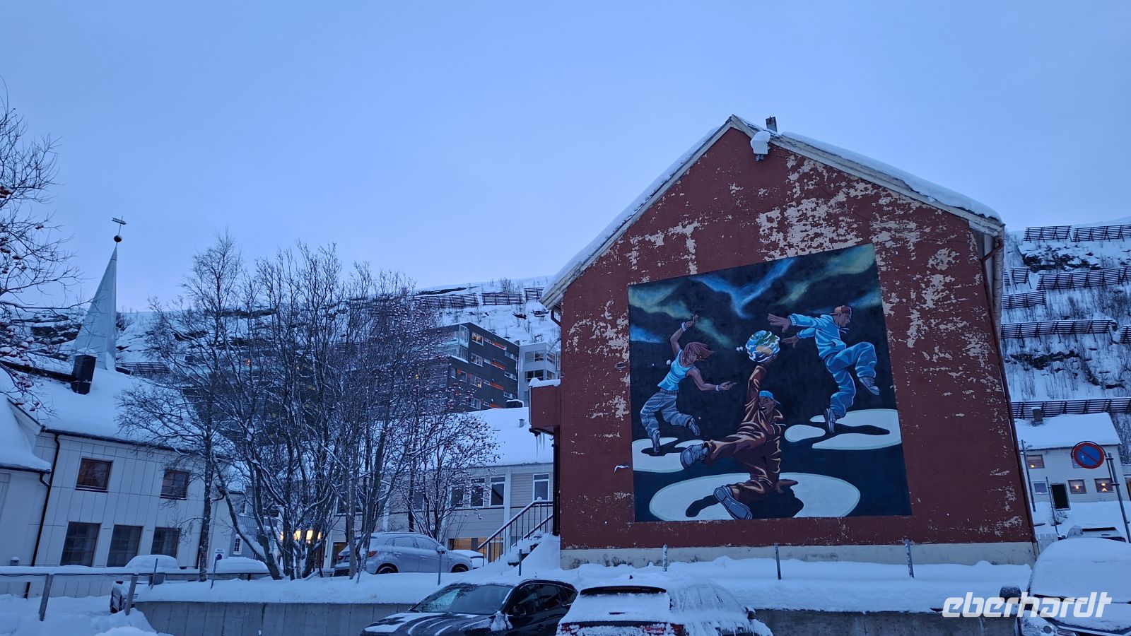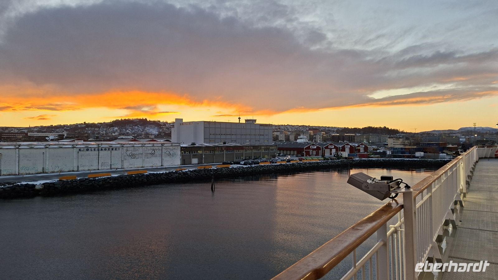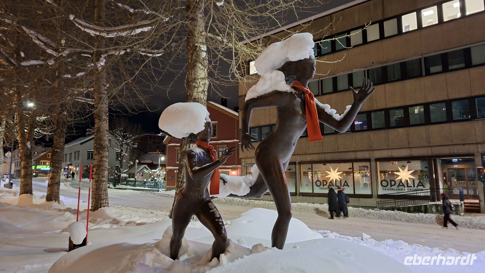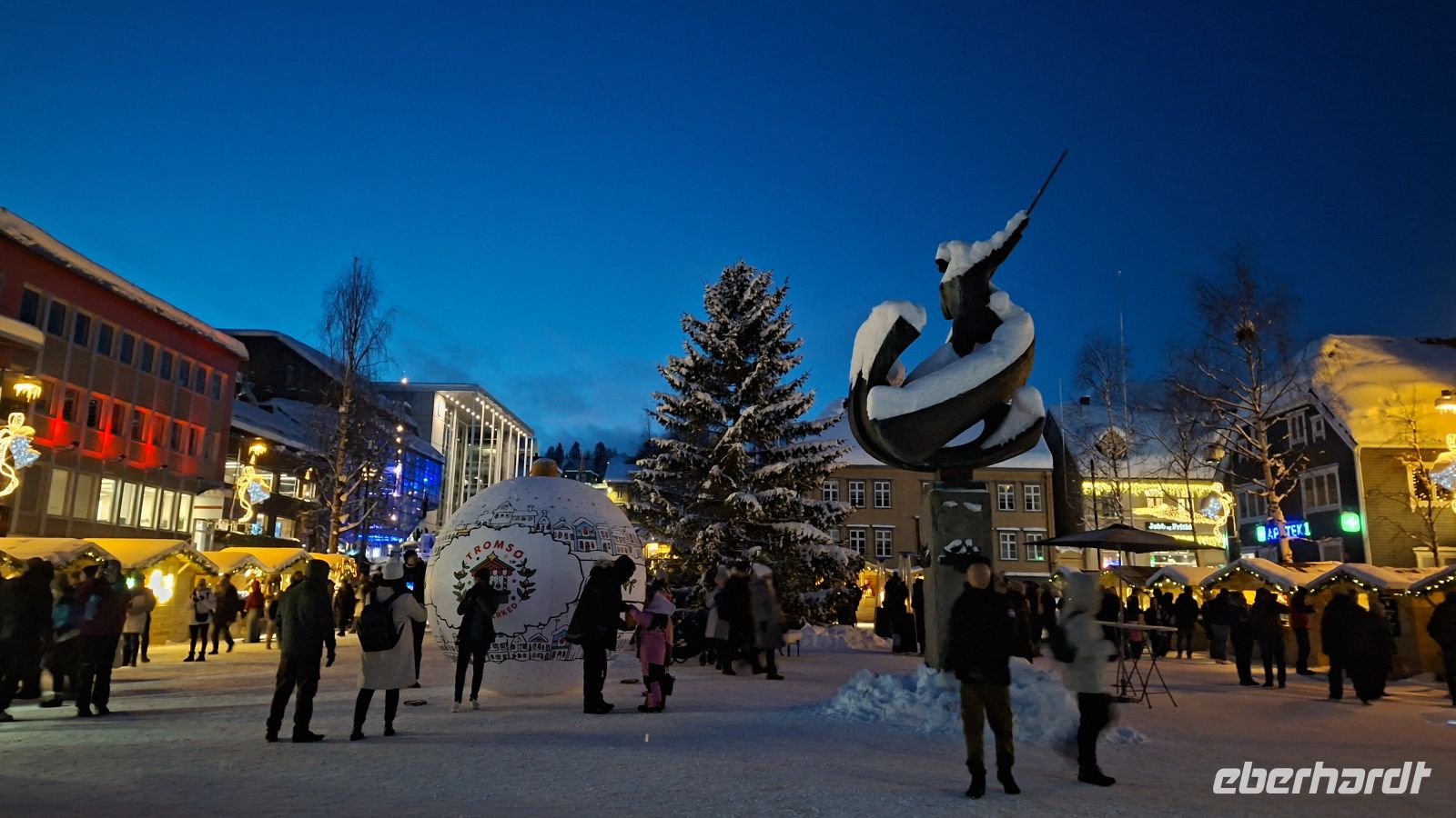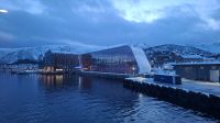 Nach dem Mittagessen erreichten wir Tromsø. Es war zwar erst früher Nachmittag, aber schon wieder am Dämmern – typisch Norden im Winter. Das bläulich-graue Licht legte sich über die Stadt und verlieh allem eine fast märchenhafte Stimmung.
