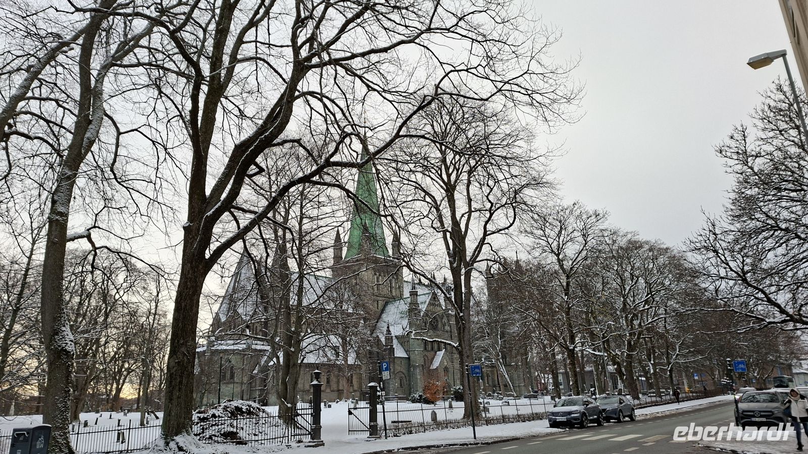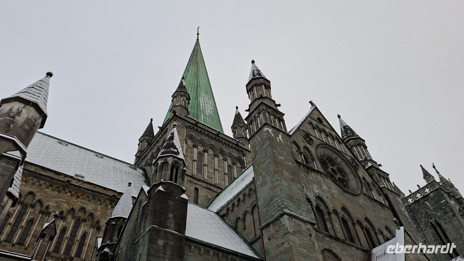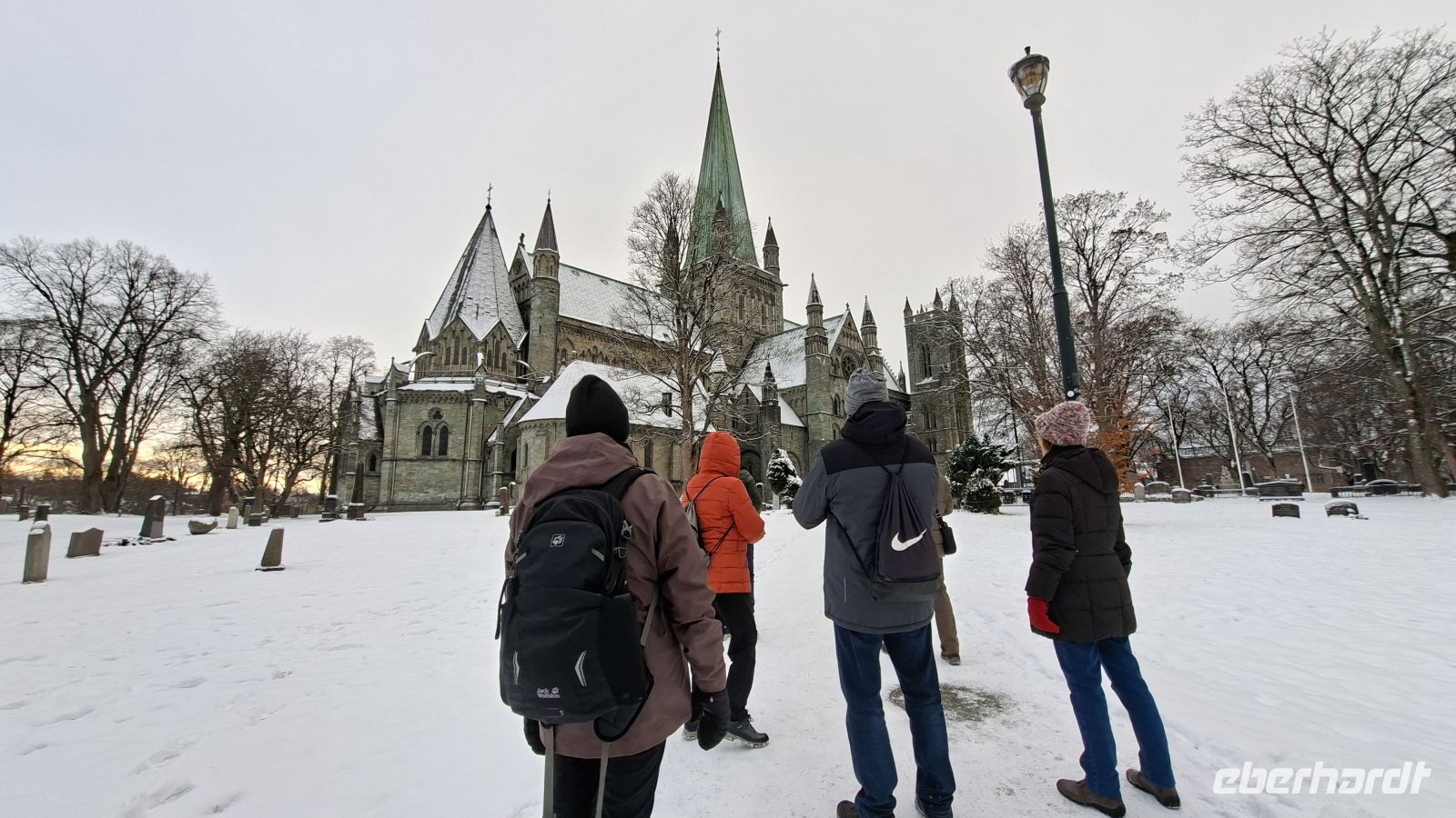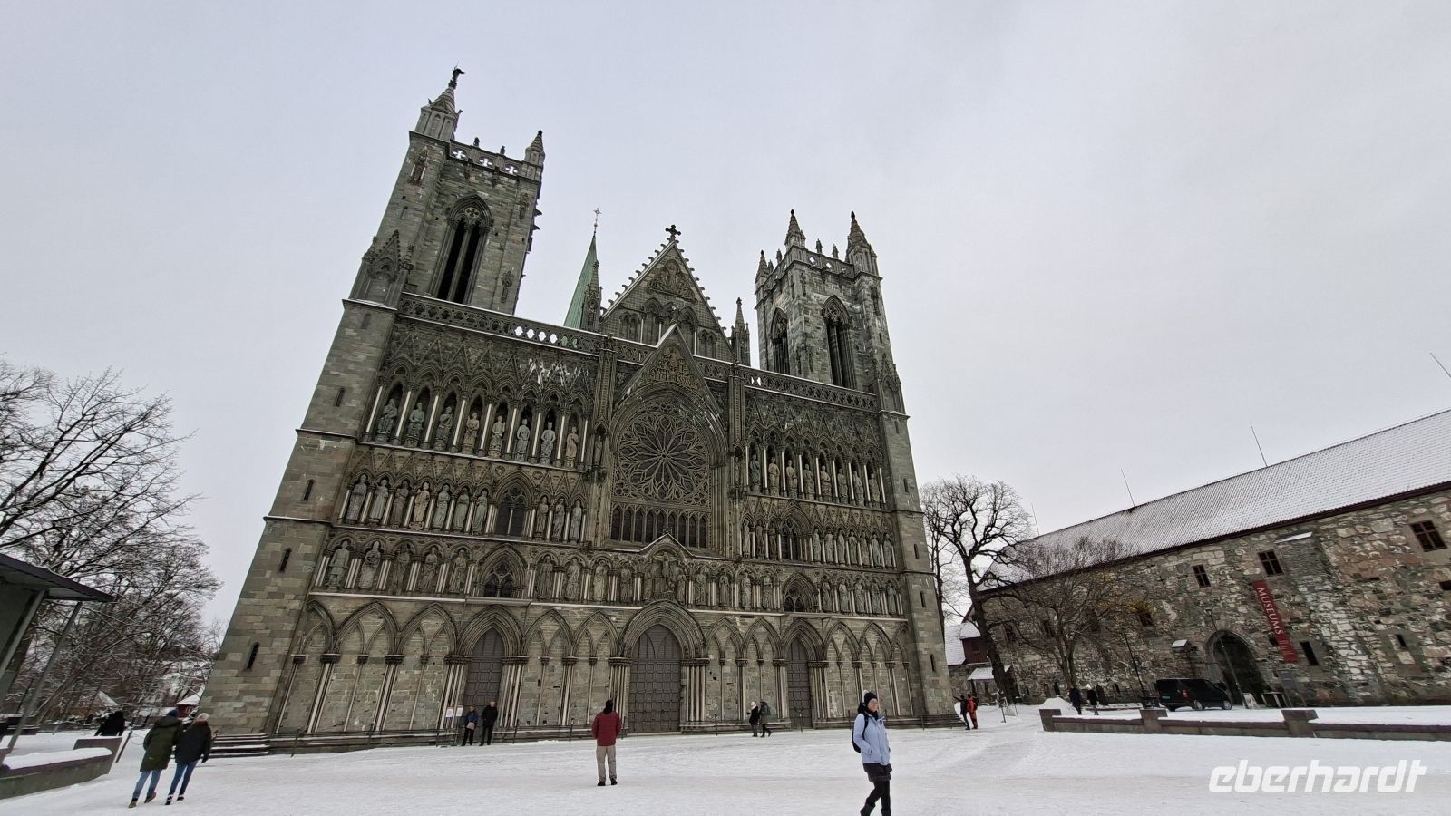 Von dort ging es weiter zum Nidarosdom, den wir uns von außen anschauten. Die Frontfassade war beeindruckend: ein riesiges, detailliertes Steinportal mit unzähligen Figuren, Verzierungen und Spitzbögen. Der Nidarosdom ist Norwegens Nationalheiligtum und jahrhundertelang ein wichtiger Pilgerort gewesen – allein vor dieser Fassade zu stehen, fühlte sich an, als würde man direkt vor einem Geschichtsbuch stehen, nur eben aus Stein.