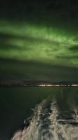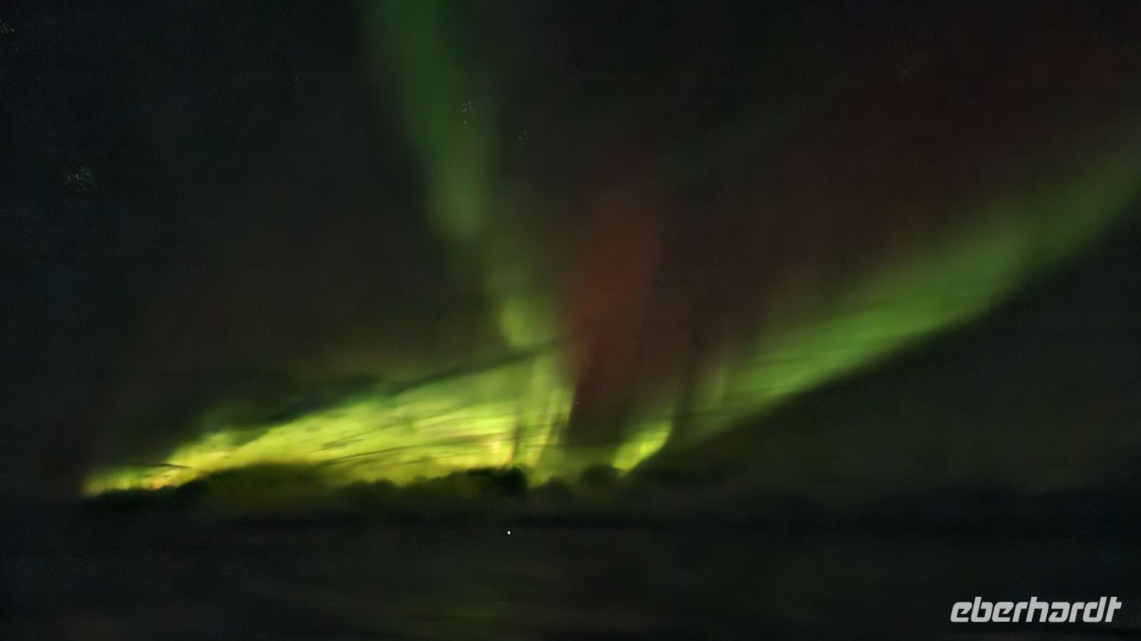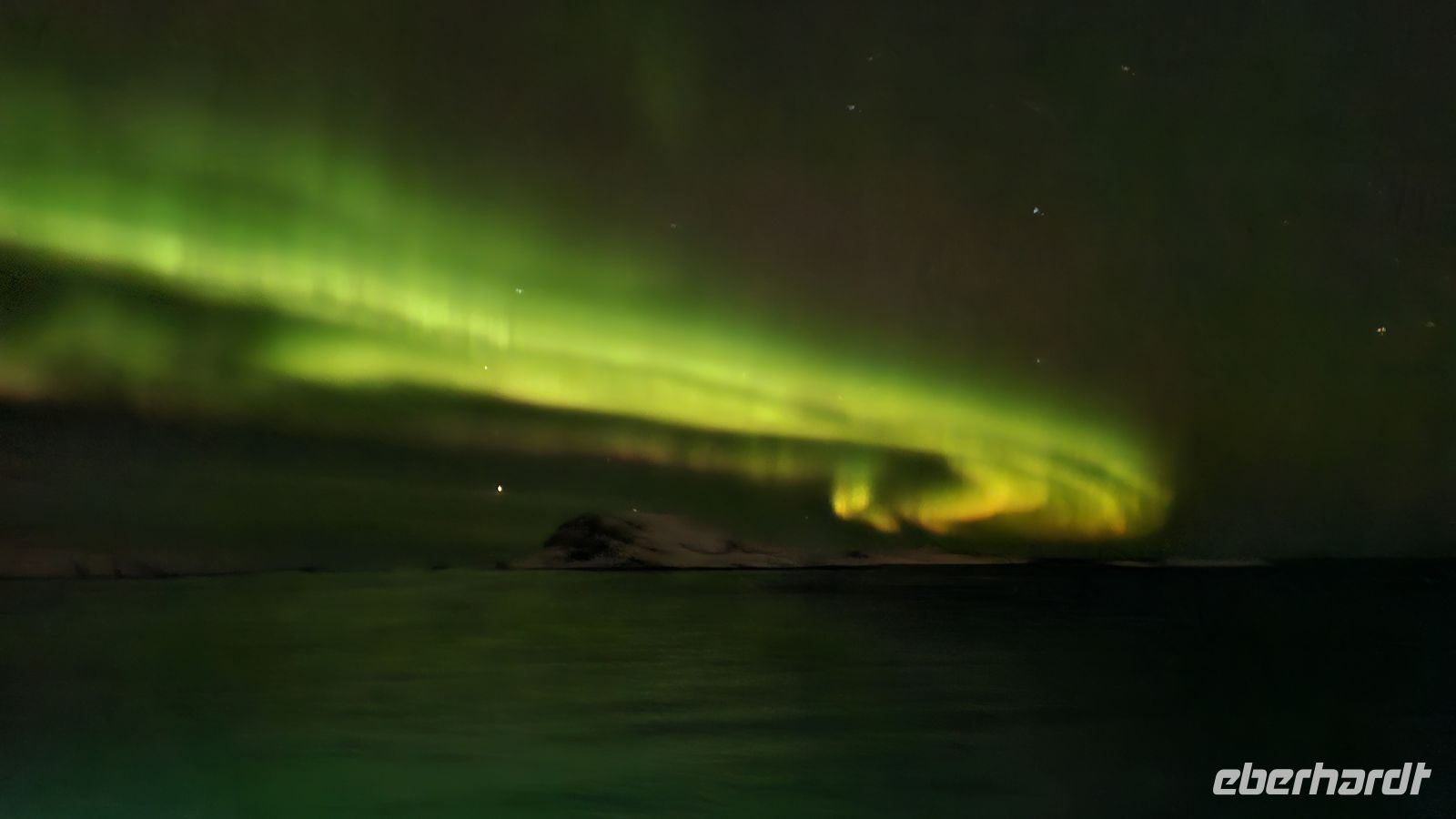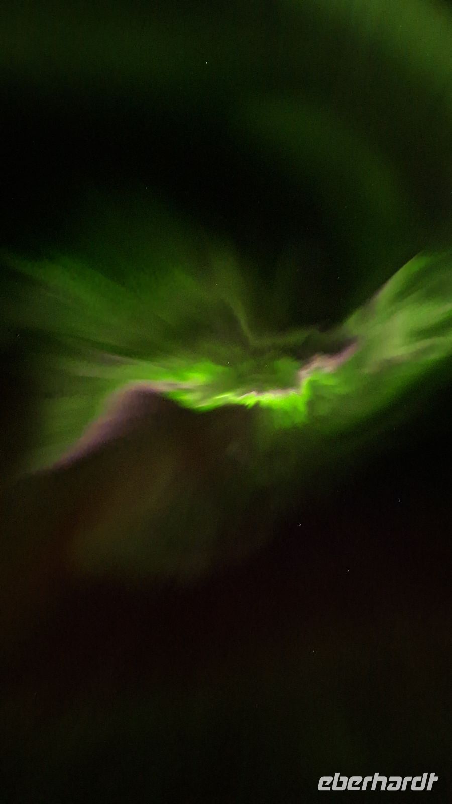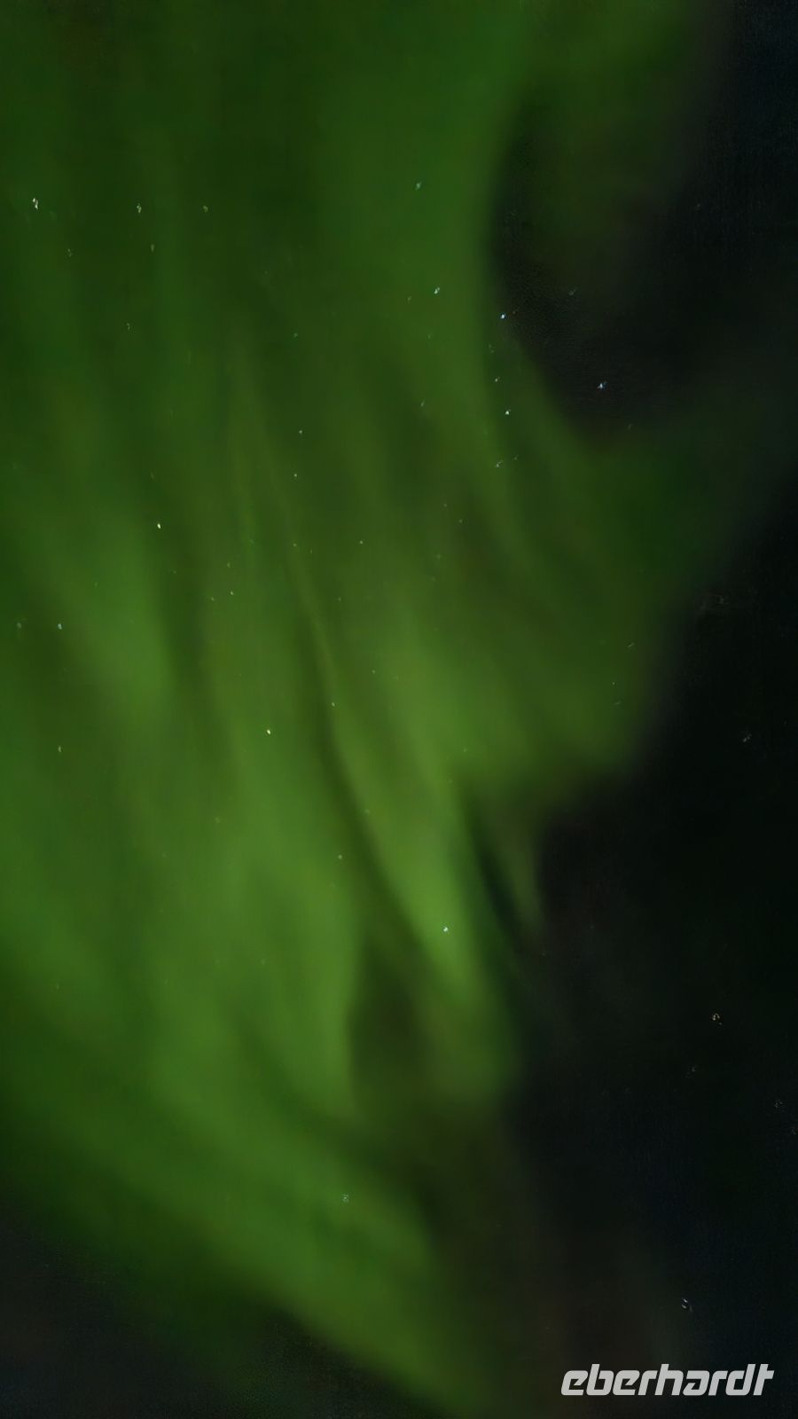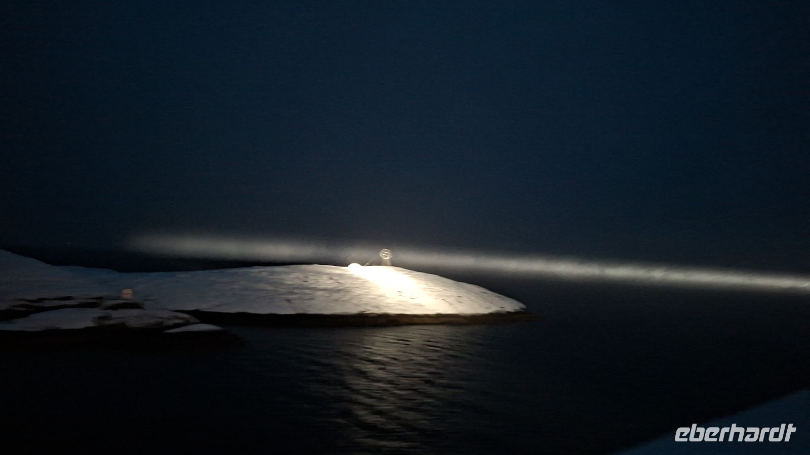 Und dann waren sie wieder da: die Polarlichter! Dieses Mal so prächtig und intensiv wie noch an keinem Tag zuvor. Grün leuchtende Bögen, die sich über den Himmel spannten, Wellen, die tanzten und immer wieder ihre Form wechselten. Wir standen staunend am Heck, froren ein wenig, aber das war in dem Moment völlig egal. Es war sogar so hell und kräftig, dass man die Nordlichter filmen konnte – ein echtes Geschenk, denn normalerweise lassen sie sich ja nur schwer so einfangen.