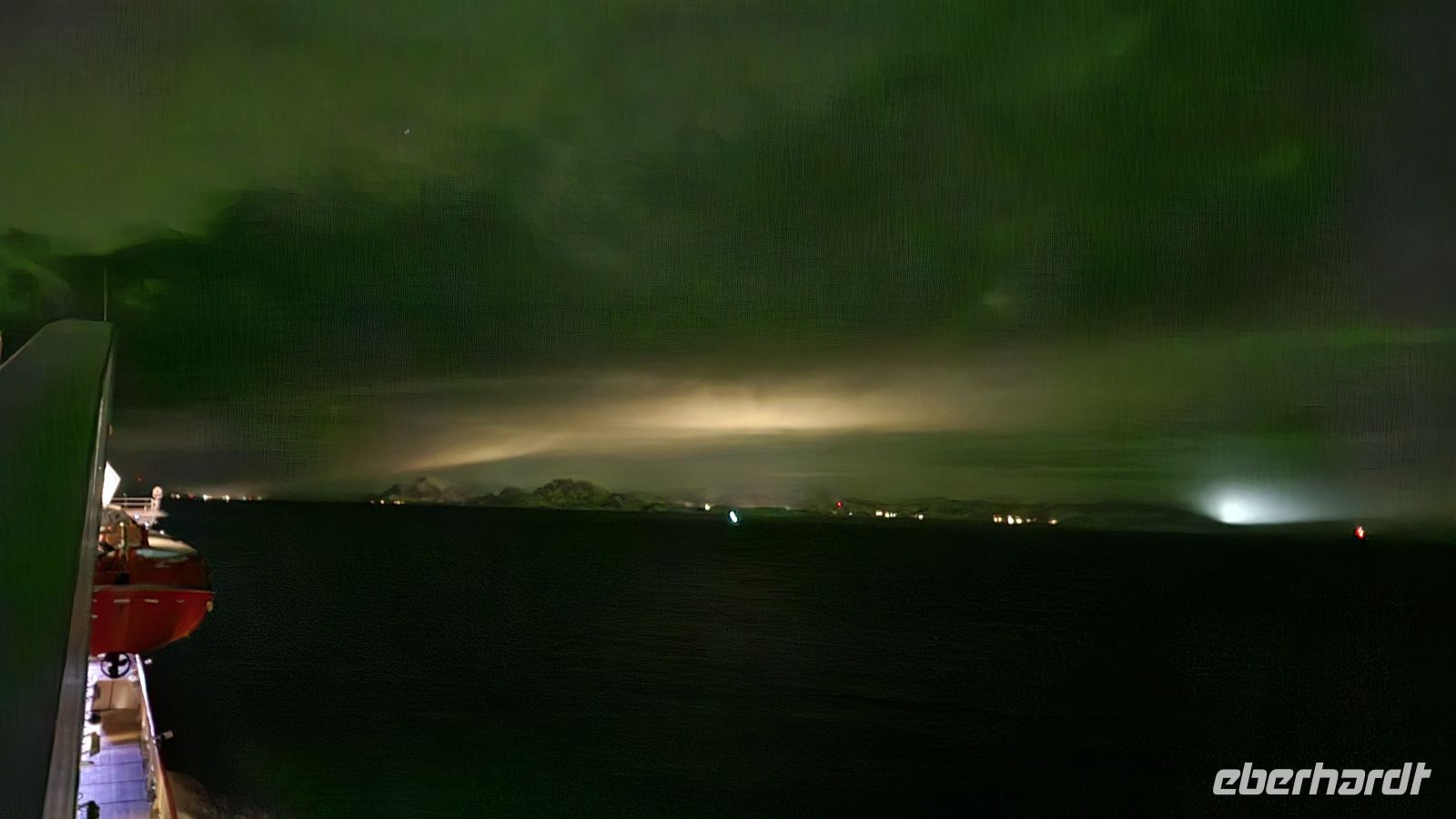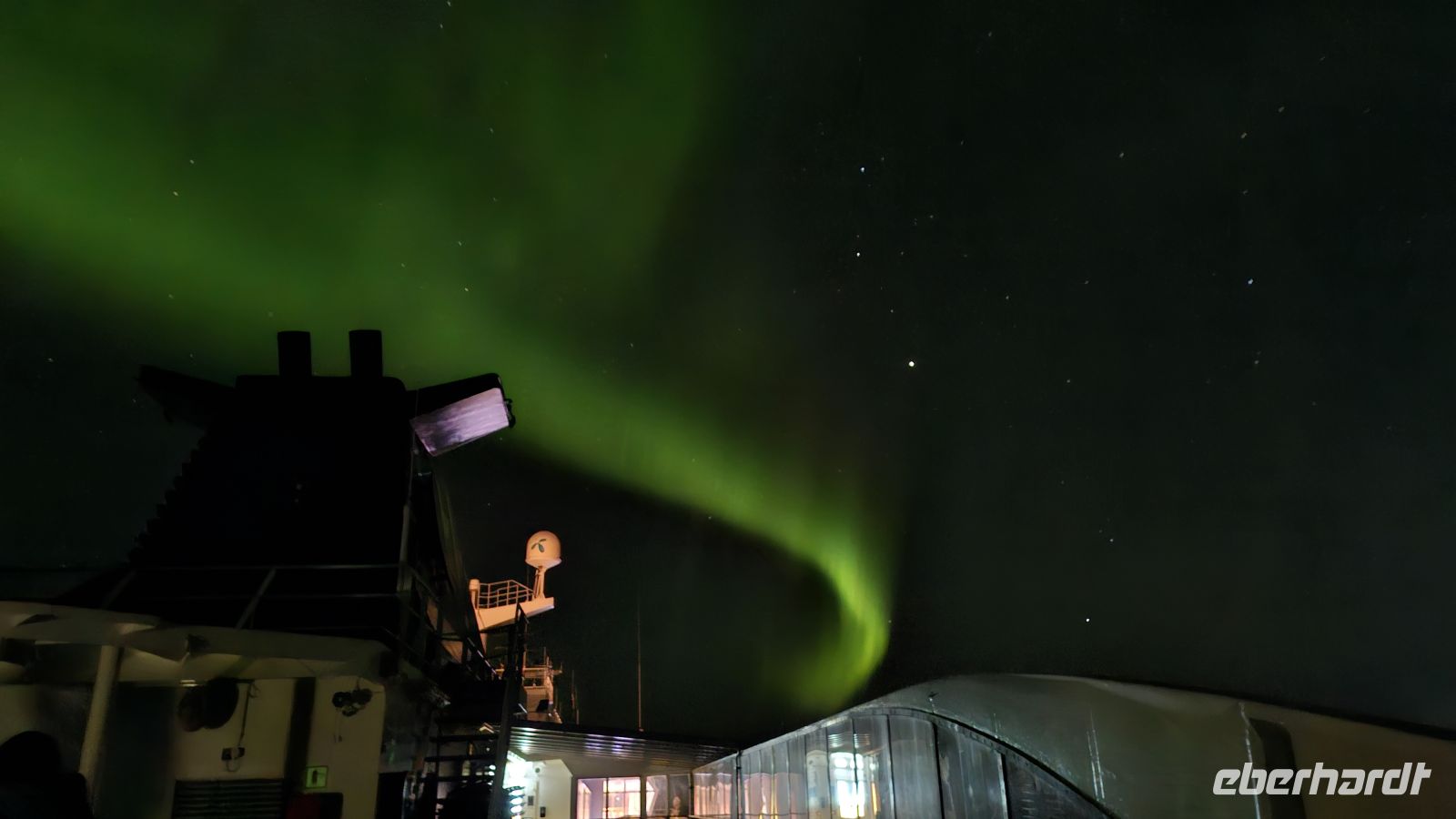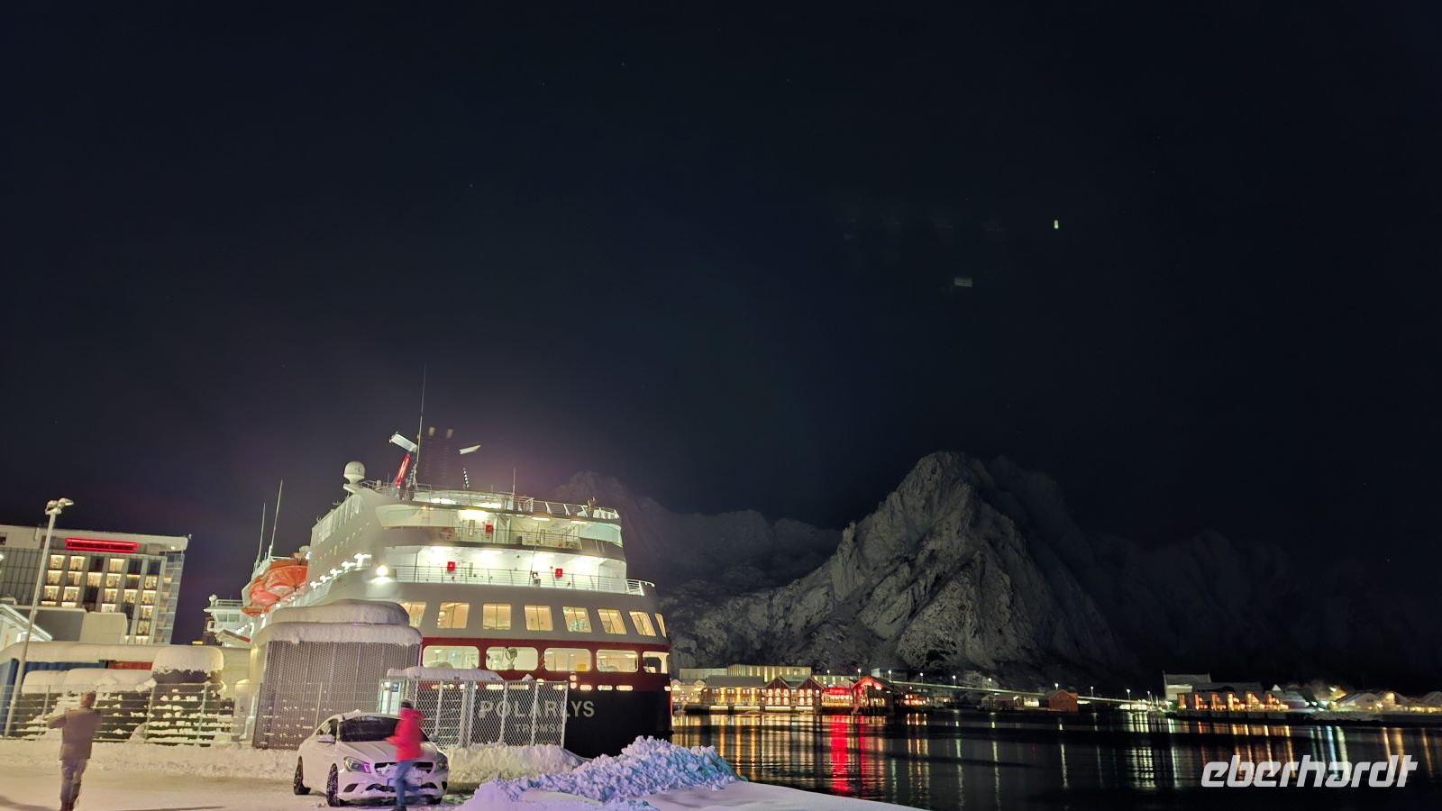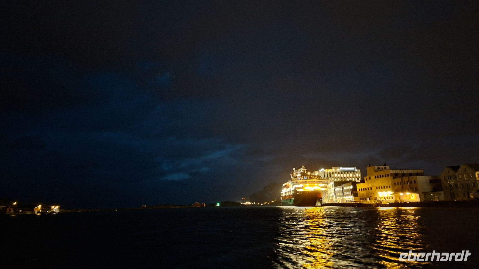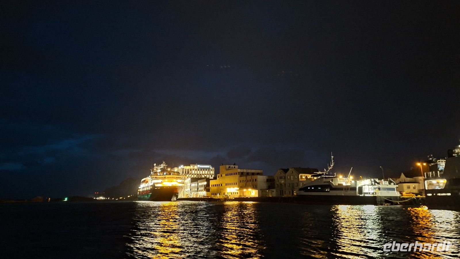 Einige Häfen folgten noch in der Nacht, dazu hier und da noch ein paar kleinere Nordlichter am Himmel – wie ein leiser, grüner Vorhang zum Abschied dieses Tages. Irgendwann siegte dann doch die Müdigkeit. Wir krochen zufrieden in unsere Betten, ein bisschen durchgefroren, aber innerlich ganz warm vor lauter Eindrücken – und mit dem Gefühl, dem hohen Norden erneut ein Stück näher gekommen zu sein.
