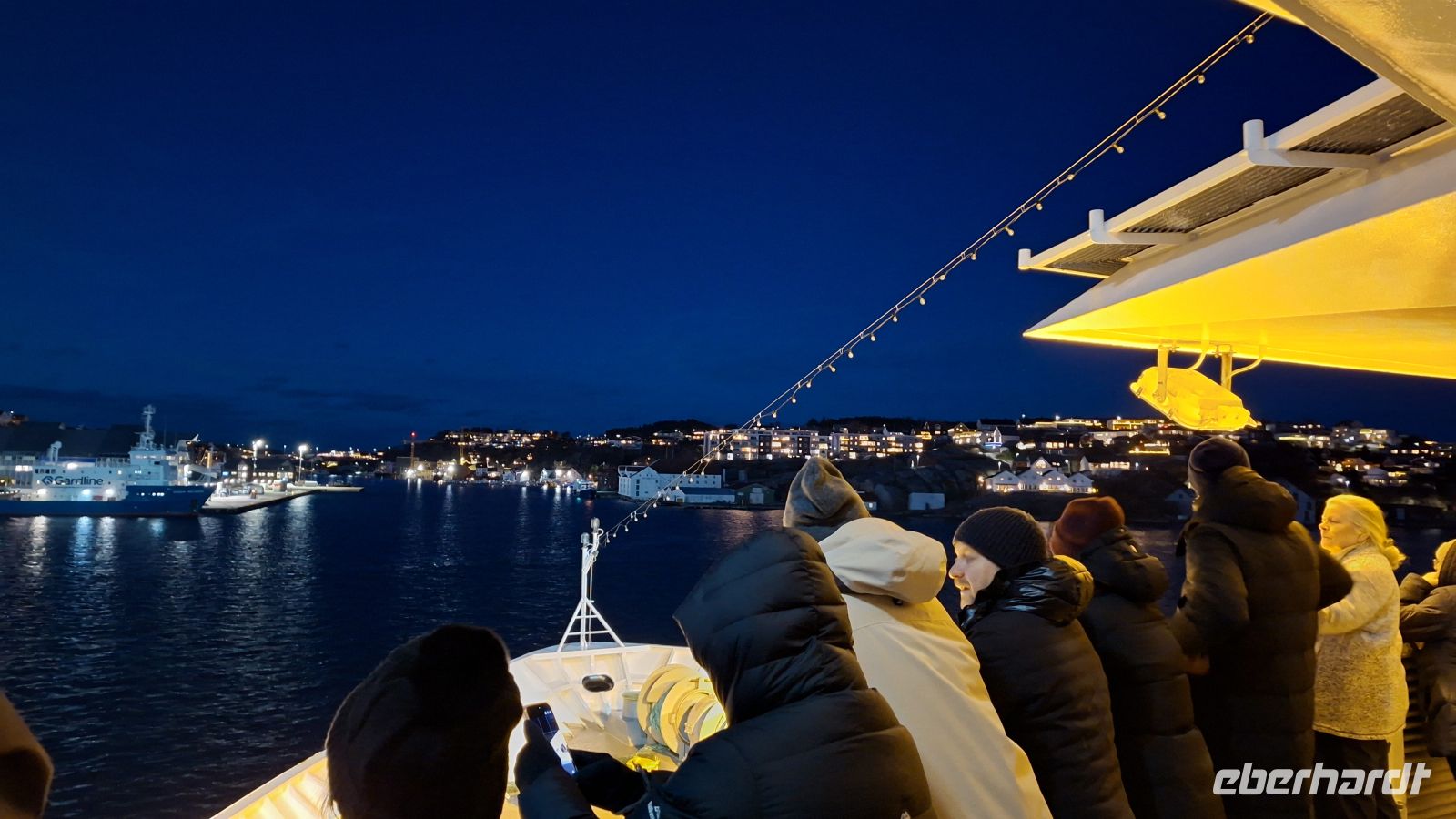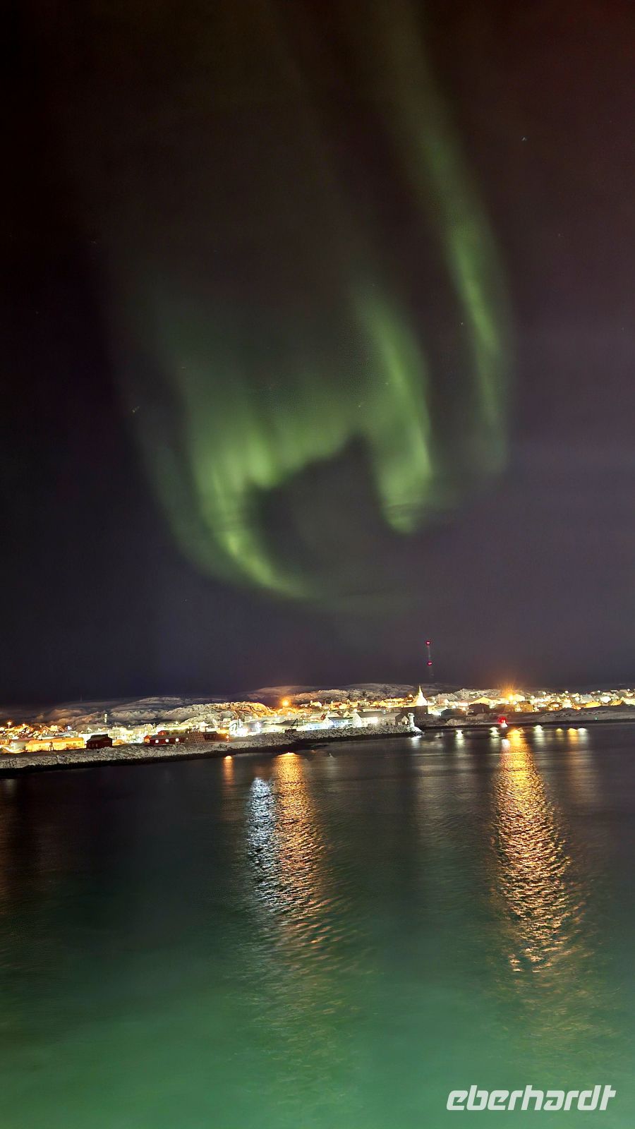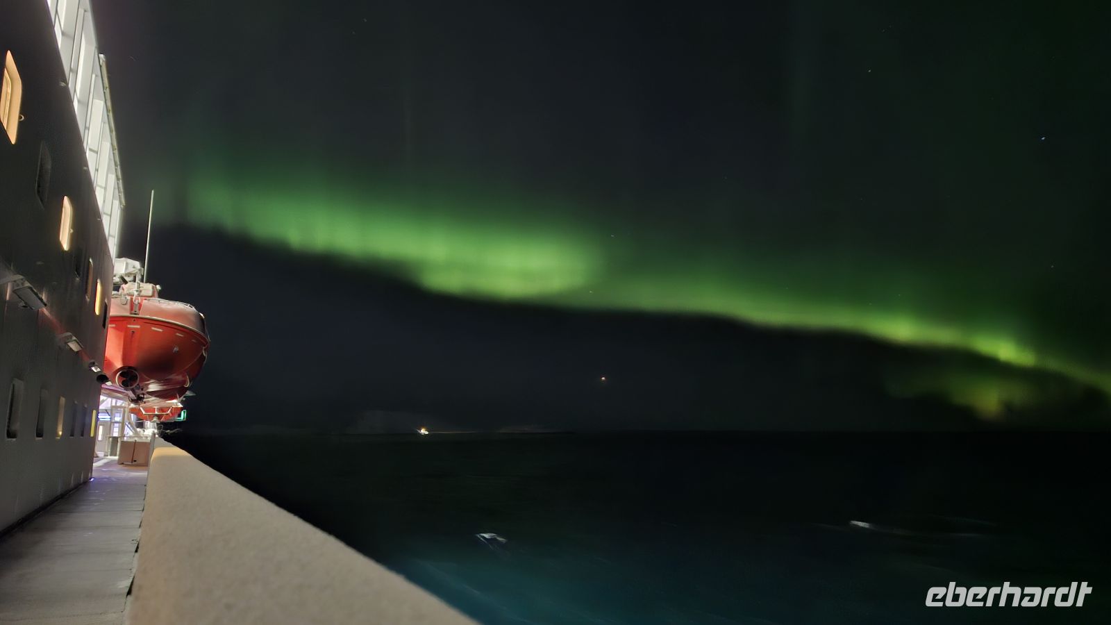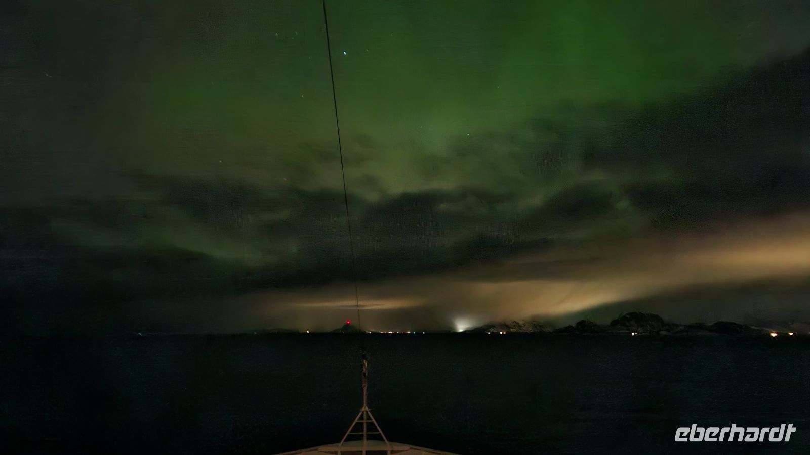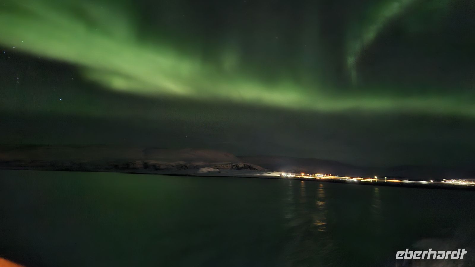 Einige Häfen folgten noch in der Nacht, dazu hier und da noch ein paar kleinere Nordlichter am Himmel – wie ein leiser, grüner Vorhang zum Abschied dieses Tages. Irgendwann siegte dann doch die Müdigkeit. Wir krochen zufrieden in unsere Betten, ein bisschen durchgefroren, aber innerlich ganz warm vor lauter Eindrücken – und mit dem Gefühl, dem hohen Norden erneut ein Stück näher gekommen zu sein.