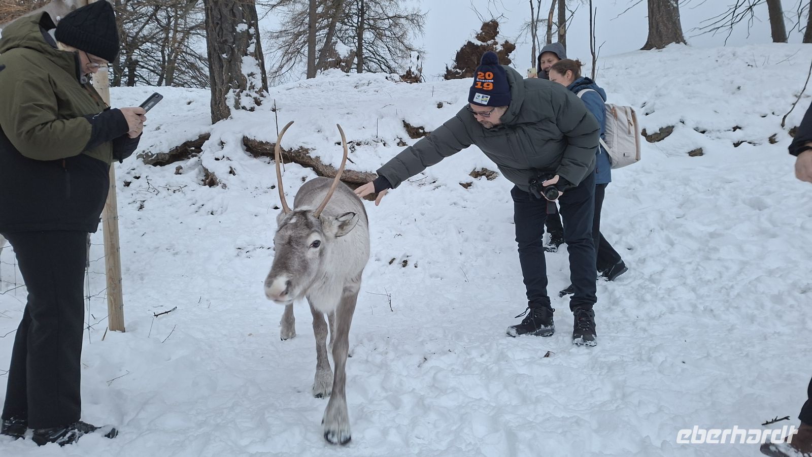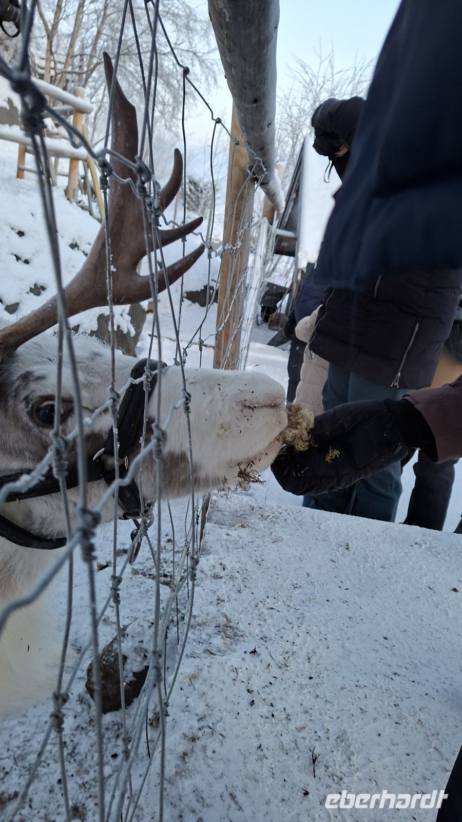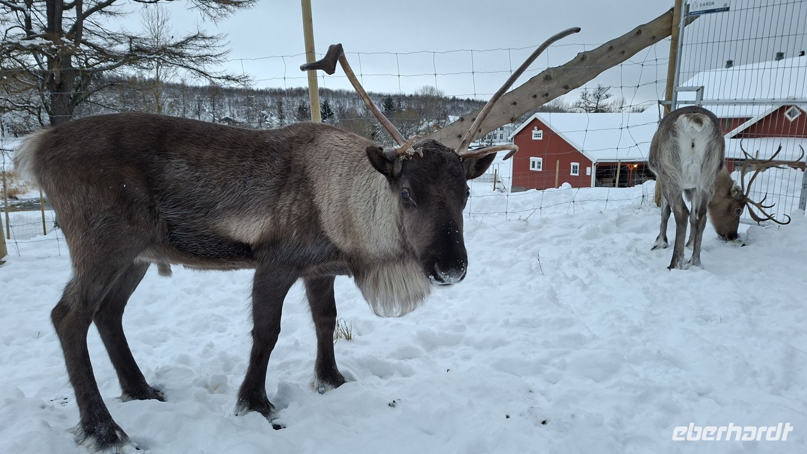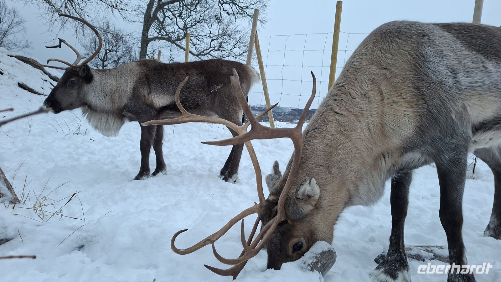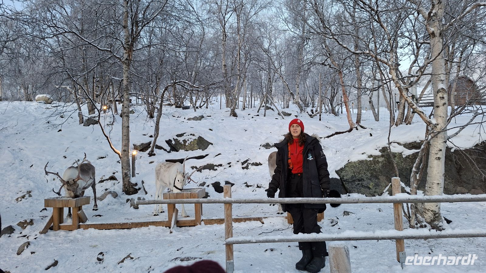 Danach fuhren wir weiter entlang der wunderschönen Fjordlandschaft des Kvæfjords. Links und rechts schneebedeckte Hänge, dazwischen das stille Wasser – und mittendrin wir, gemütlich im Bus. Unterwegs entdeckten wir tatsächlich Rentiere, die ganz entspannt in der Nähe des Straßenrands durch den Schnee stapften. Einige hatten sogar das Glück, beim Vorbeifahren einen Elch im Gebüsch zu erspähen – wir waren allerdings so schnell wieder weitergefahren, dass er für andere eher ein „Hast-du-ihn-gesehen-oder-nicht?“-Diskussionsthema blieb.