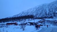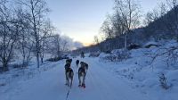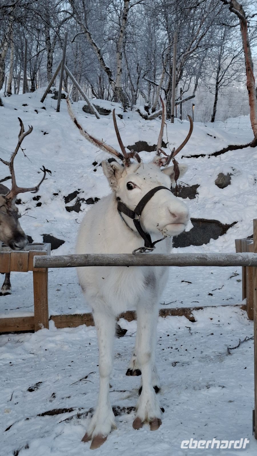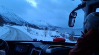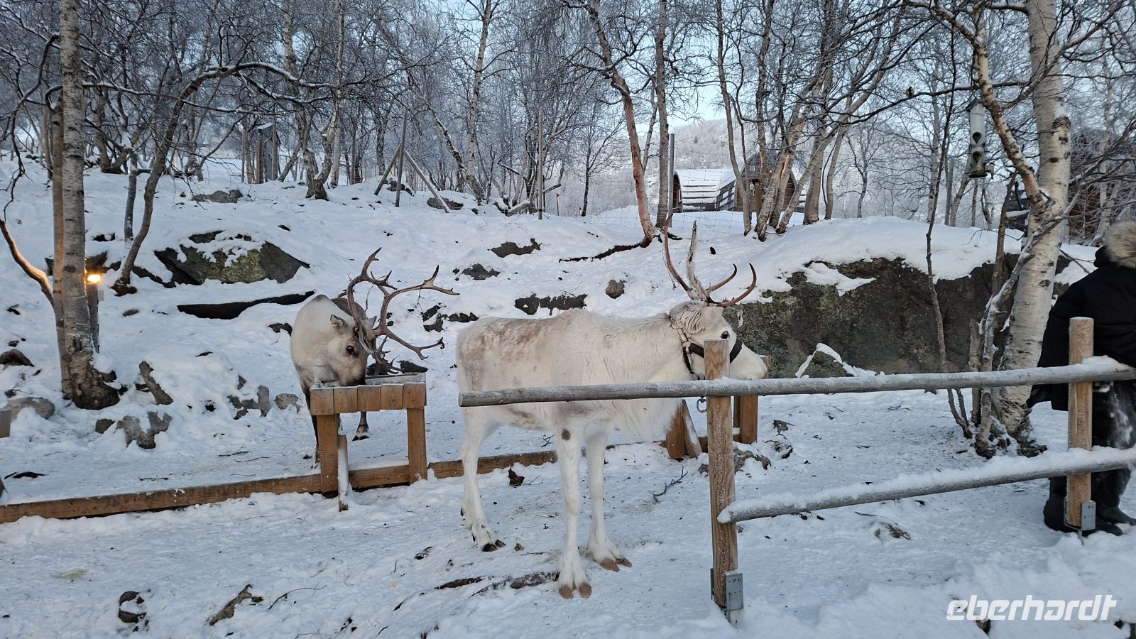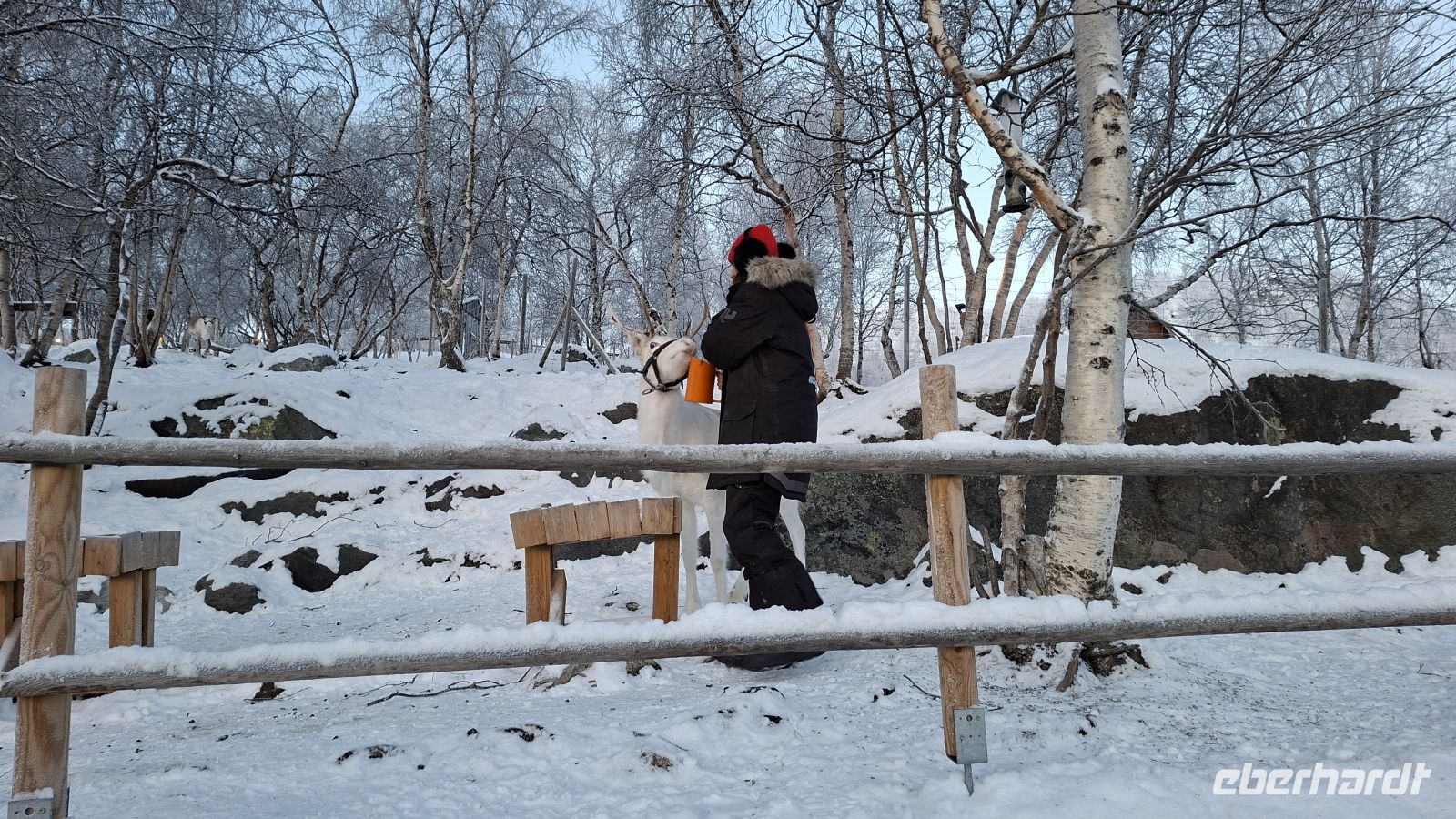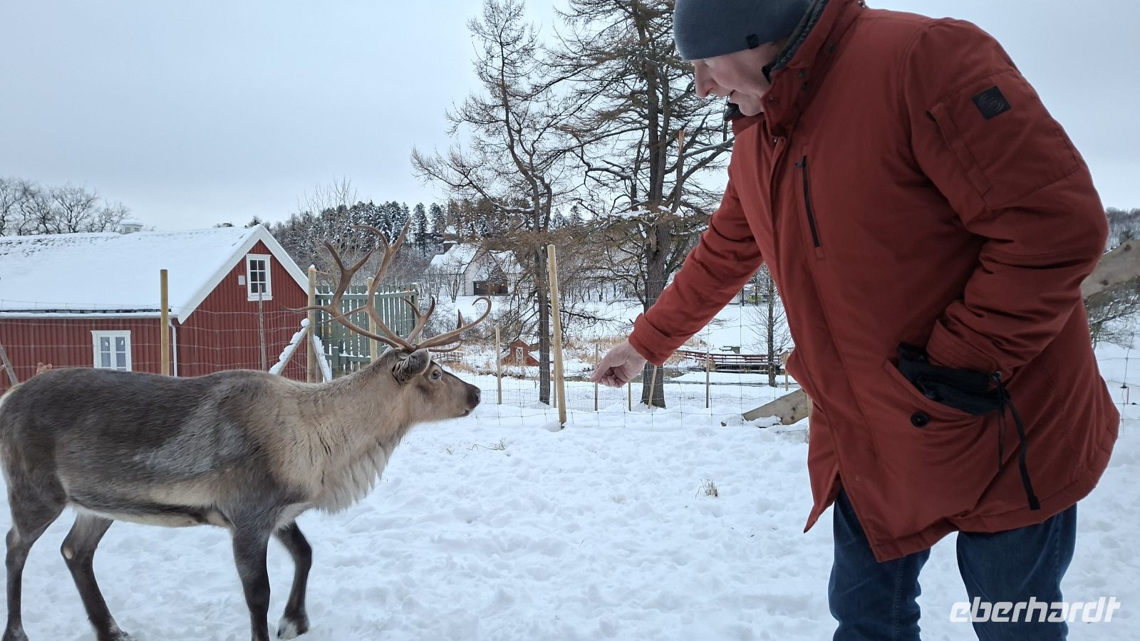 Danach fuhren wir weiter entlang der wunderschönen Fjordlandschaft des Kvæfjords. Links und rechts schneebedeckte Hänge, dazwischen das stille Wasser – und mittendrin wir, gemütlich im Bus. Unterwegs entdeckten wir tatsächlich Rentiere, die ganz entspannt in der Nähe des Straßenrands durch den Schnee stapften. Einige hatten sogar das Glück, beim Vorbeifahren einen Elch im Gebüsch zu erspähen – wir waren allerdings so schnell wieder weitergefahren, dass er für andere eher ein „Hast-du-ihn-gesehen-oder-nicht?“-Diskussionsthema blieb.