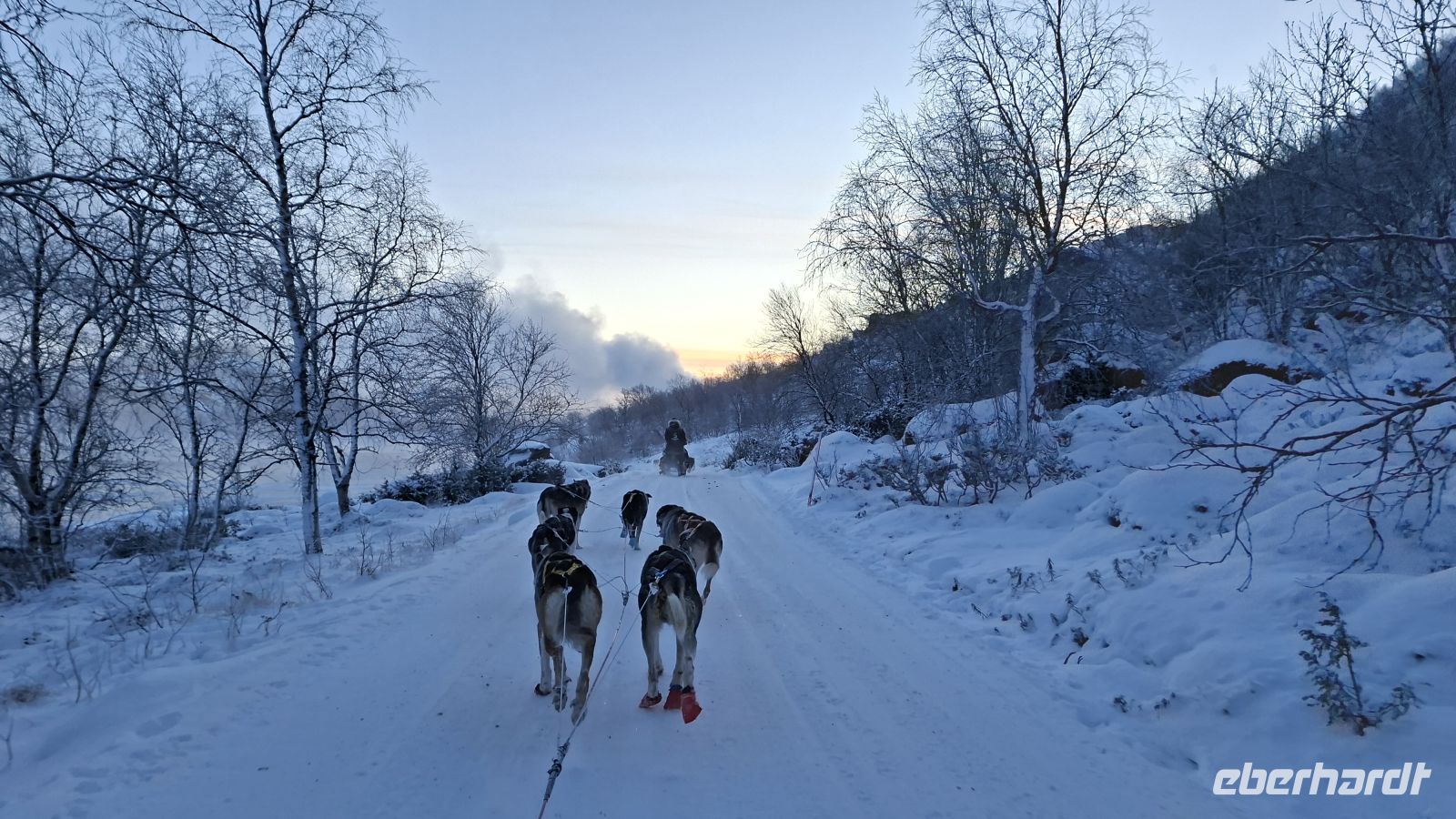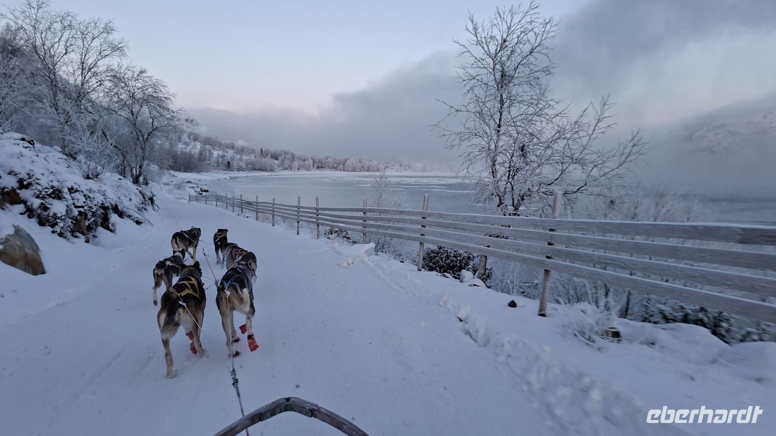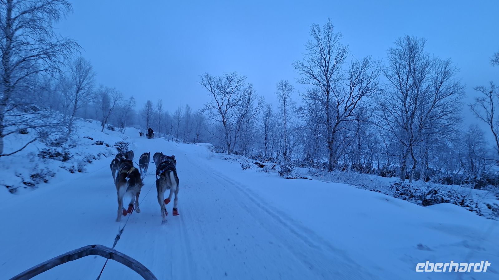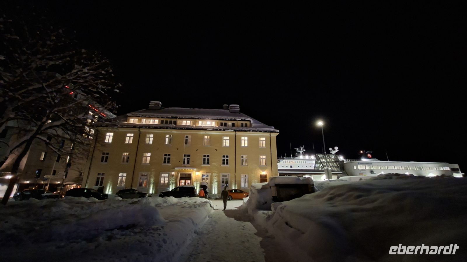 Mittags waren wir wieder an Bord, und die Rückmeldungen klangen alle gleich: hellauf begeistert. Egal ob Schneehotel oder Huskys – dieser Vormittag hatte bei allen Eindruck hinterlassen. Inzwischen wurde es schon wieder deutlich dunkler. Es war Polarnacht und Winter, die Sonne schaffte es nicht über den Horizont, und das Tageslicht verwandelte sich schnell in ein tiefblaues Dämmerlicht. Genau das verlieh der ganzen Szenerie ihren ganz besonderen Zauber.