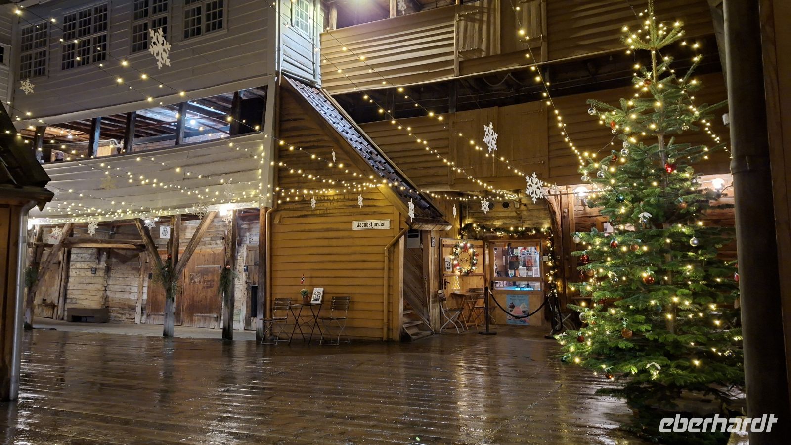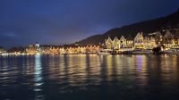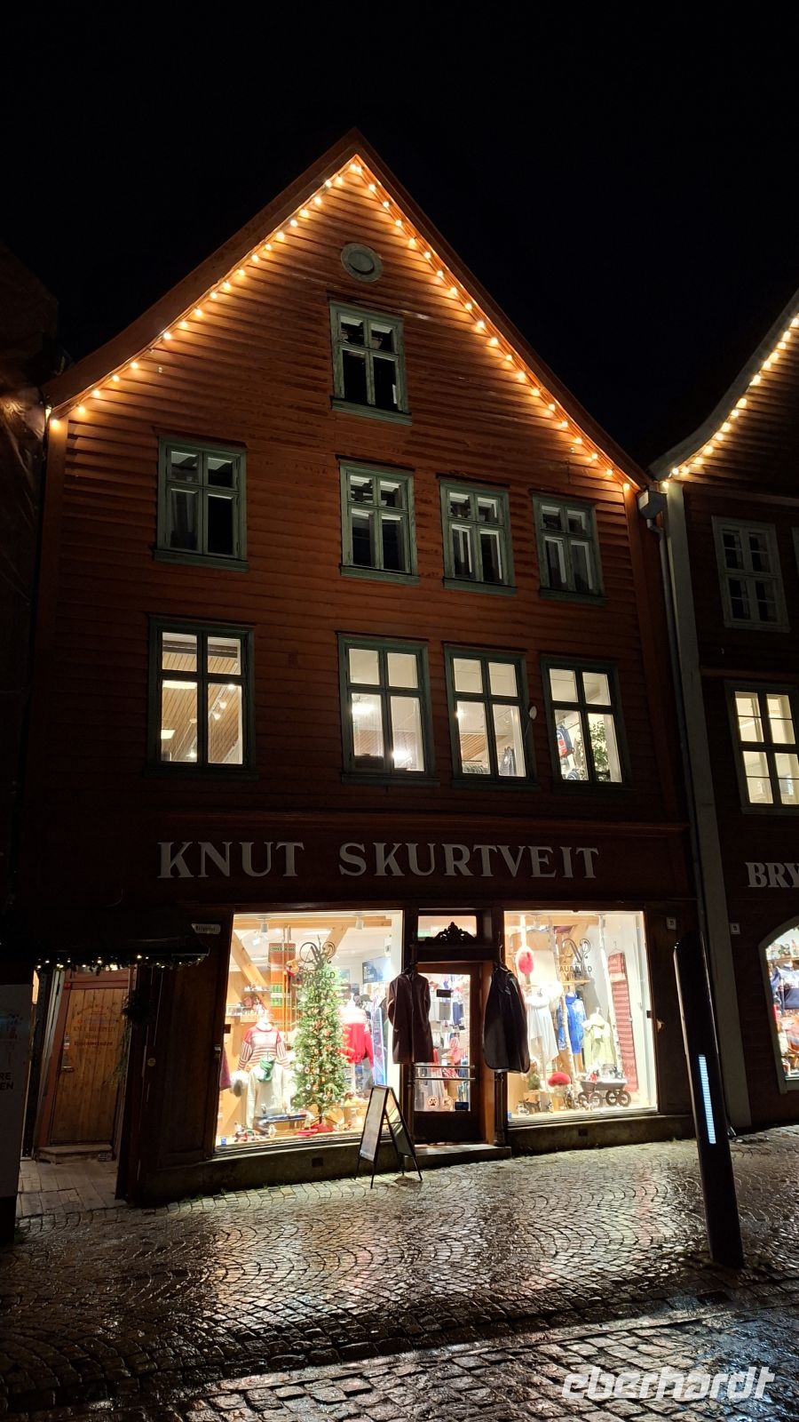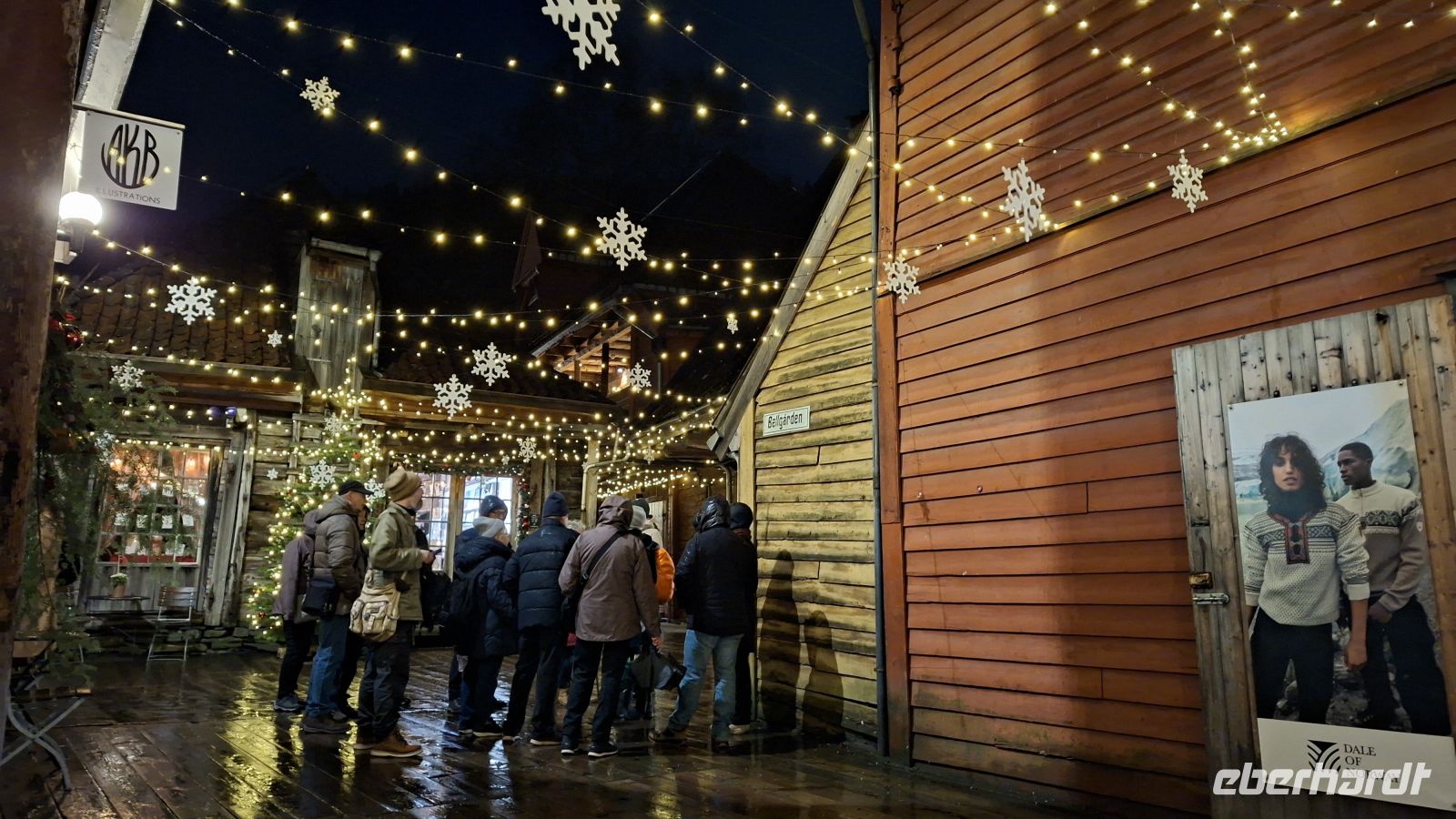 Gemeinsam mit einer örtlichen Reiseleiterin begaben wir uns auf Entdeckungstour durch Bergen. Wir spazierten durch den Stadtpark, warfen einen Blick auf den Weihnachtsmarkt und schlenderten an der Skulptur "Der blaue Stein" vorbei, bevor wir Bryggen erreichten. Dort erwarteten uns die typischen, bunten Holzhäuser der ehemaligen Hanse. Bryggen hatte eine lange und bewegte Geschichte. Im Mittelalter war hier das Zentrum der Hanse in Bergen, wo deutsche Kaufleute über Jahrhunderte Stockfisch, Getreide und andere Waren handelten. Die dicht aneinandergereihten Holzhäuser dienten als Warenlager, Kontore und Wohnhäuser zugleich. Immer wieder wurde das Viertel von Bränden heimgesucht, trotzdem wurde es jedes Mal in der alten, traditionellen Bauweise wieder aufgebaut. Heute gehörte Bryggen zum UNESCO-Weltkulturerbe – und während wir durch die schmalen, leicht schiefen Gassen gingen, konnten wir uns gut vorstellen, wie hier früher das geschäftige Treiben der Händler geherrscht hatte. Unser Weg führte uns schließlich bis zum Eingang der Fløibahn, von wo aus man auf den Hausberg Floyen fahren konnte. Einige Gäste nutzten die Gelegenheit, fuhren hinauf und genossen die einmalige Aussicht über die Stadt, den Hafen und die umliegenden Berge, während der Rest von uns gemütlich weiter unten durch die Gassen bummelte.