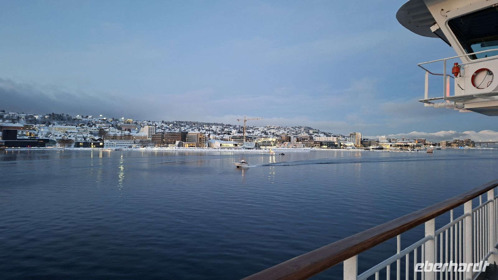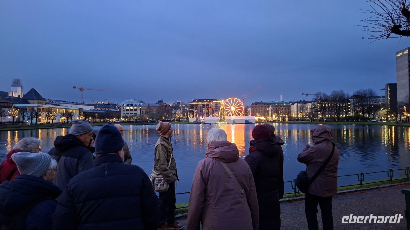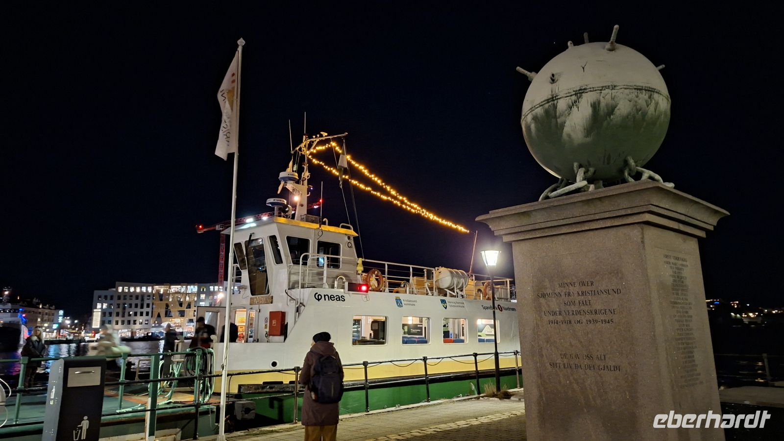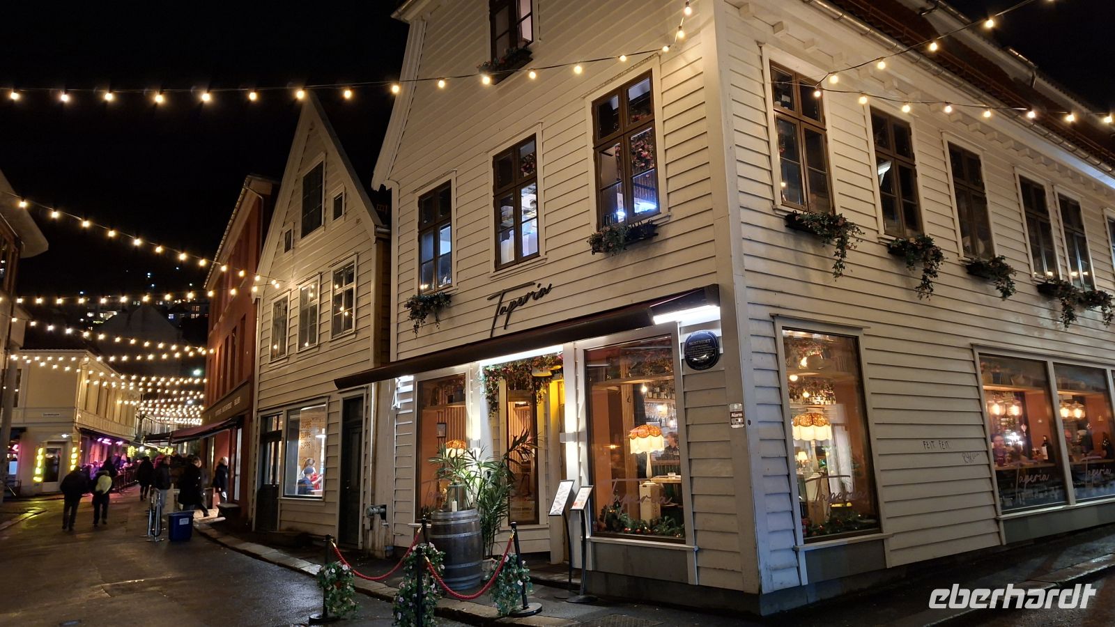 Gemeinsam mit einer örtlichen Reiseleiterin begaben wir uns auf Entdeckungstour durch Bergen. Wir spazierten durch den Stadtpark, warfen einen Blick auf den Weihnachtsmarkt und schlenderten an der Skulptur "Der blaue Stein" vorbei, bevor wir Bryggen erreichten. Dort erwarteten uns die typischen, bunten Holzhäuser der ehemaligen Hanse. Bryggen hatte eine lange und bewegte Geschichte. Im Mittelalter war hier das Zentrum der Hanse in Bergen, wo deutsche Kaufleute über Jahrhunderte Stockfisch, Getreide und andere Waren handelten. Die dicht aneinandergereihten Holzhäuser dienten als Warenlager, Kontore und Wohnhäuser zugleich. Immer wieder wurde das Viertel von Bränden heimgesucht, trotzdem wurde es jedes Mal in der alten, traditionellen Bauweise wieder aufgebaut. Heute gehörte Bryggen zum UNESCO-Weltkulturerbe – und während wir durch die schmalen, leicht schiefen Gassen gingen, konnten wir uns gut vorstellen, wie hier früher das geschäftige Treiben der Händler geherrscht hatte. Unser Weg führte uns schließlich bis zum Eingang der Fløibahn, von wo aus man auf den Hausberg Floyen fahren konnte. Einige Gäste nutzten die Gelegenheit, fuhren hinauf und genossen die einmalige Aussicht über die Stadt, den Hafen und die umliegenden Berge, während der Rest von uns gemütlich weiter unten durch die Gassen bummelte.