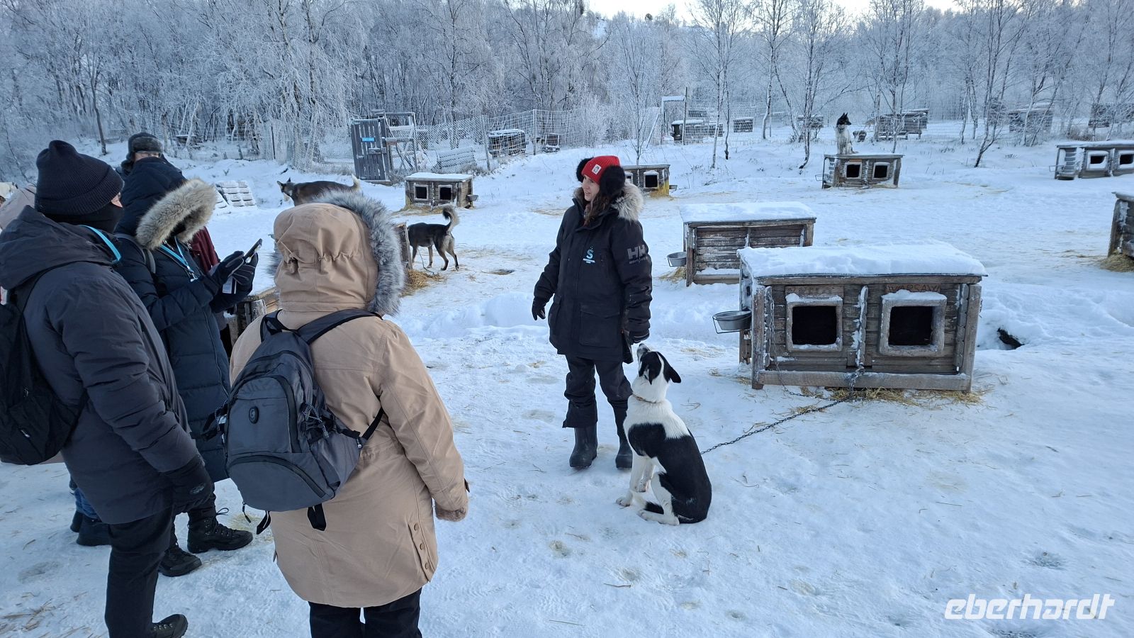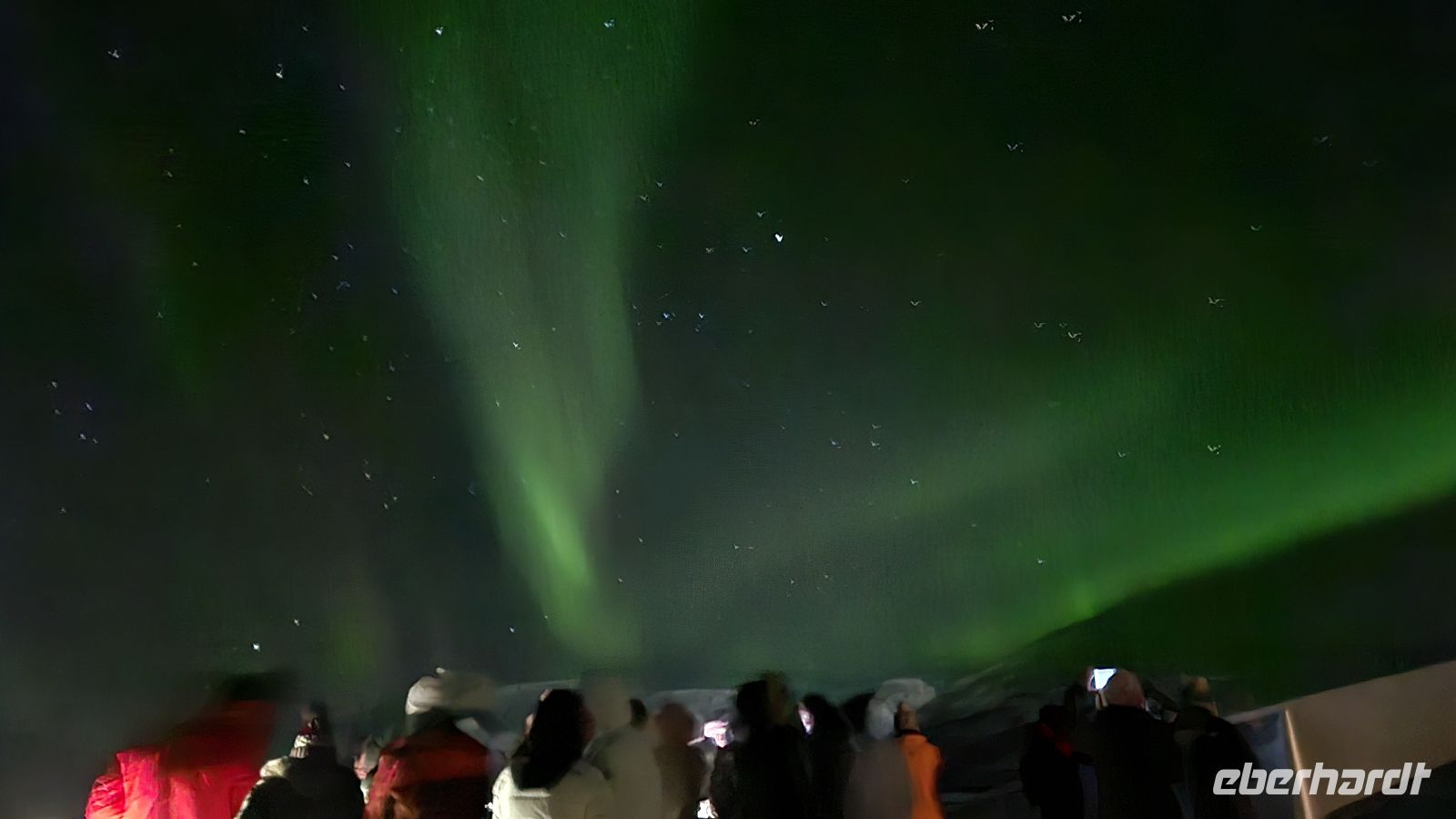 Draußen herrschten sagenhafte minus 22 Grad, und trotzdem wartete auf die Ausflugsgäste ein buntes Programm. Einige von uns hatten einen Ausflug zum Schneehotel gebucht – ein Wintermärchen aus Eis und Schnee, mit kunstvollen Skulpturen und Zimmern, die aussahen wie aus einem Eispalast. Andere entschieden sich für eine Hundeschlittentour und kamen den kuscheligen Huskys ganz nah. Das freudige Bellen, die Energie der Hunde und das Gleiten des Schlittens durch die weiße Landschaft sorgten für strahlende Gesichter – auch wenn so mancher Schal danach etwas vereister aussah als vorher.