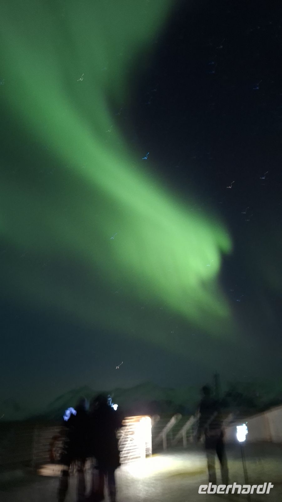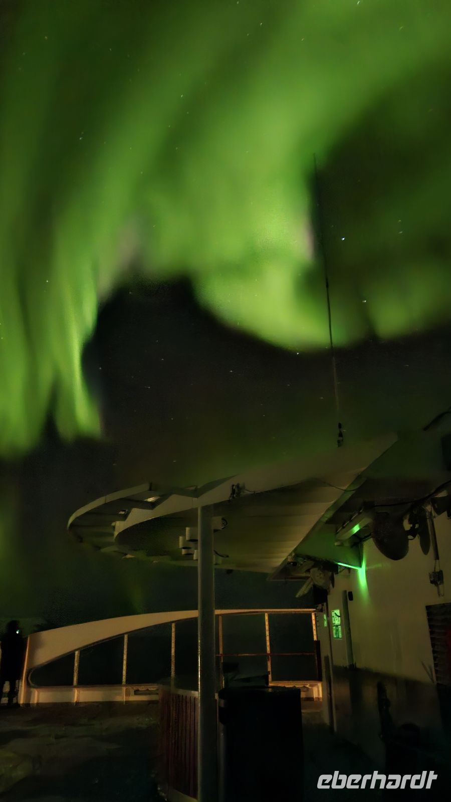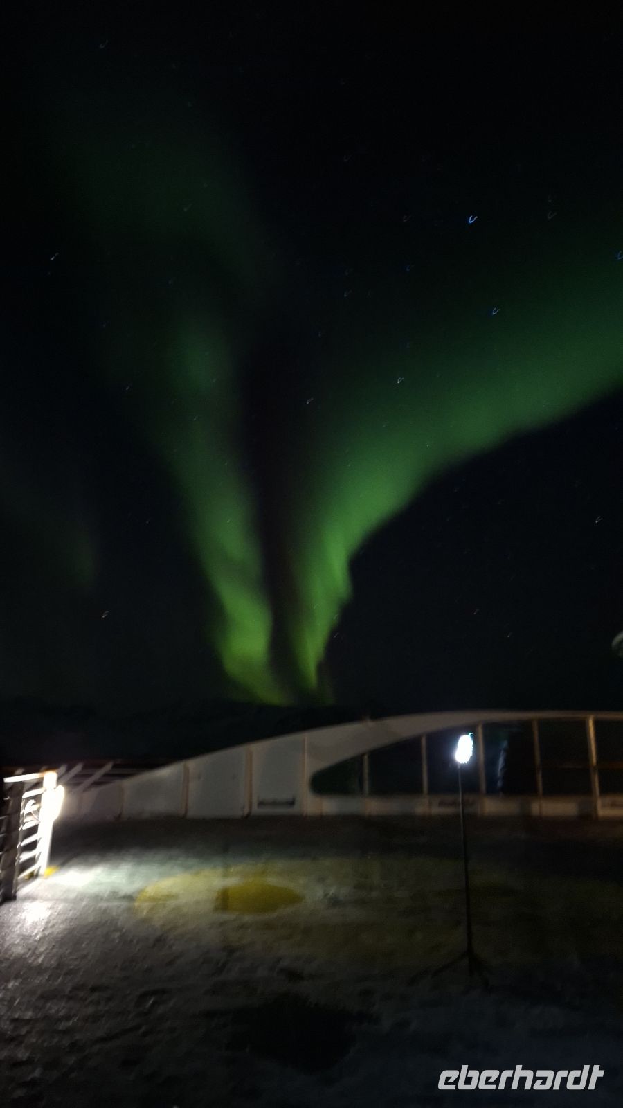 Nach dem obligatorischen Treffen mit dem Expeditionsteam, dem Abendessen und einem Film über Nordlichter wussten wir nun auch wissenschaftlich etwas mehr: über ihre Entstehung, die verschiedenen Farben und darüber, warum sie mal schüchtern und mal spektakulär auftreten.