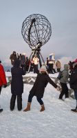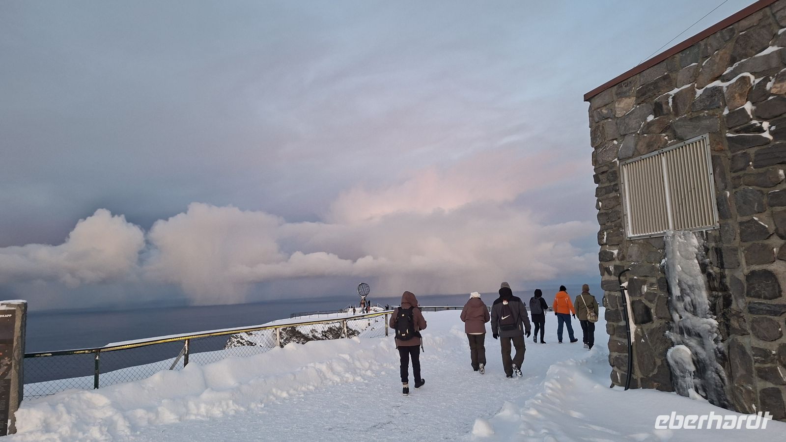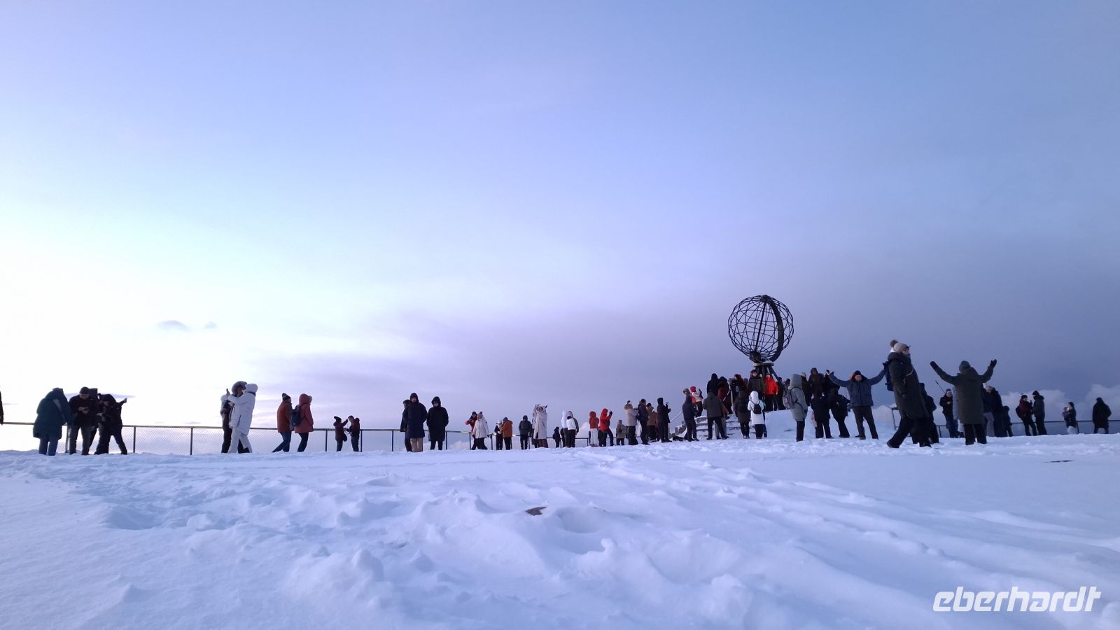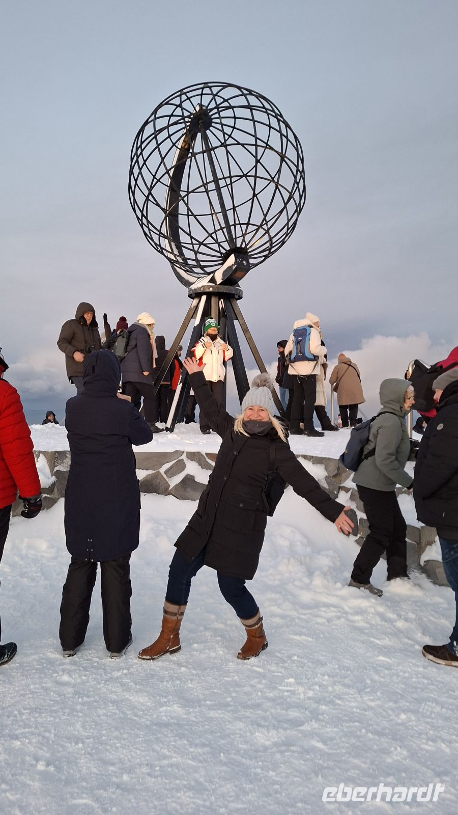Nach einem gemütlichen Brunch erreichten wir Honningsvåg, das Tor zum Nordkap. Von hier aus starteten wir zu unserem Ausflug zum verschneiten Nordkap. Die Fahrt durch die Winterlandschaft war schon ein Erlebnis für sich: Schneefelder, karge Hügel, ab und zu ein Haus – genau so hatten wir uns die Arktis vorgestellt. Am Nordkap angekommen, zog es natürlich alle zuerst zum berühmten Globus, dem Wahrzeichen auf der Klippe. Die verschneite Landschaft und der Blick hinaus aufs Dunkelgrau der Barentssee verliehen dem Ganzen eine fast magische Stimmung. Sogar Schneeengel wurden gestaltet – der Beweis, dass man für so etwas nie zu alt ist.