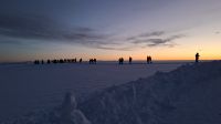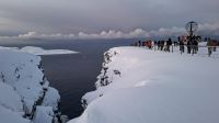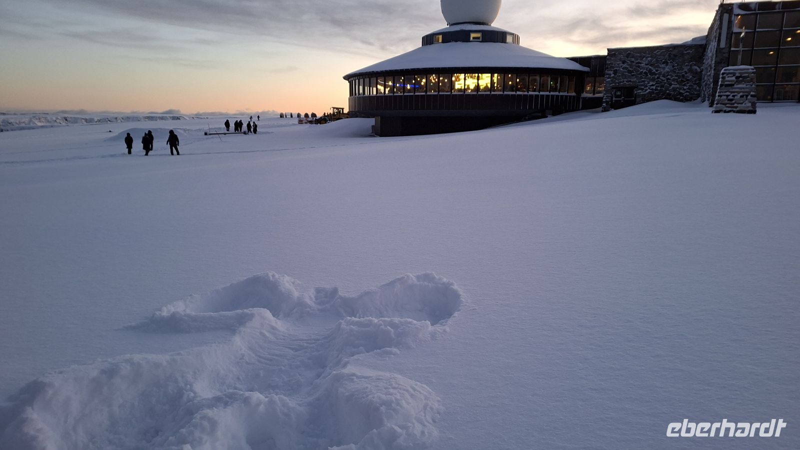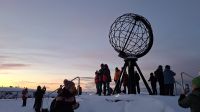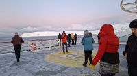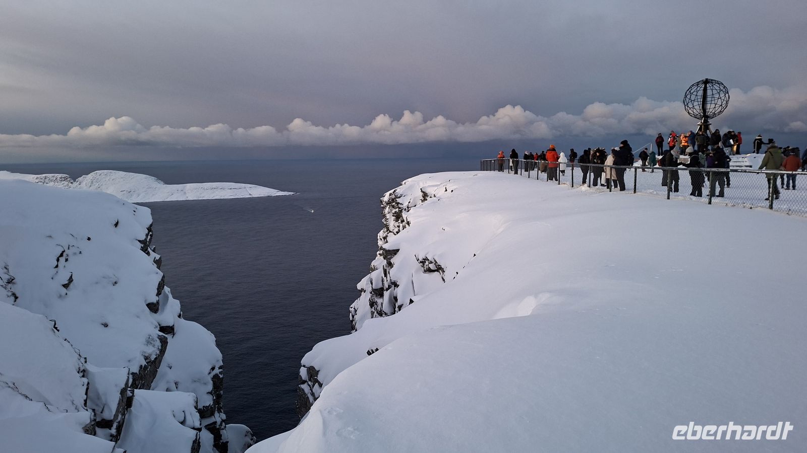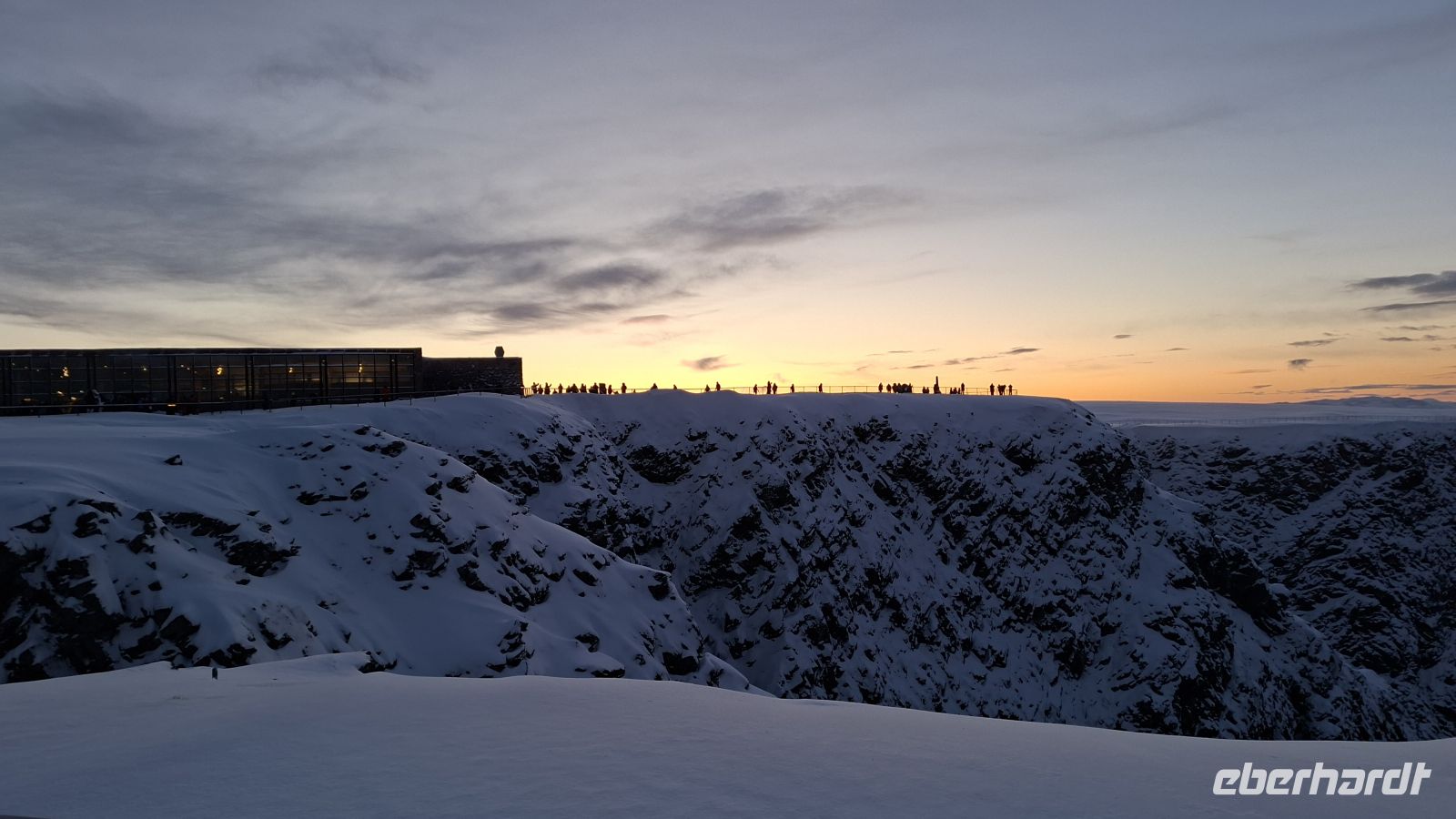 Nach einem gemütlichen Brunch erreichten wir Honningsvåg, das Tor zum Nordkap. Von hier aus starteten wir zu unserem Ausflug zum verschneiten Nordkap. Die Fahrt durch die Winterlandschaft war schon ein Erlebnis für sich: Schneefelder, karge Hügel, ab und zu ein Haus – genau so hatten wir uns die Arktis vorgestellt. Am Nordkap angekommen, zog es natürlich alle zuerst zum berühmten Globus, dem Wahrzeichen auf der Klippe. Die verschneite Landschaft und der Blick hinaus aufs Dunkelgrau der Barentssee verliehen dem Ganzen eine fast magische Stimmung. Sogar Schneeengel wurden gestaltet – der Beweis, dass man für so etwas nie zu alt ist.