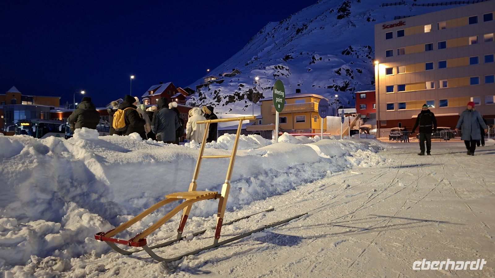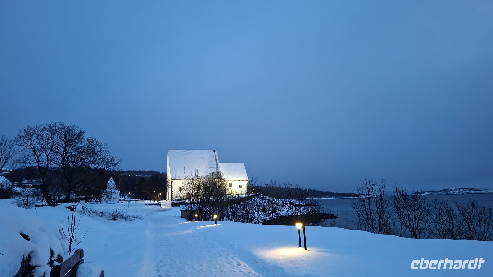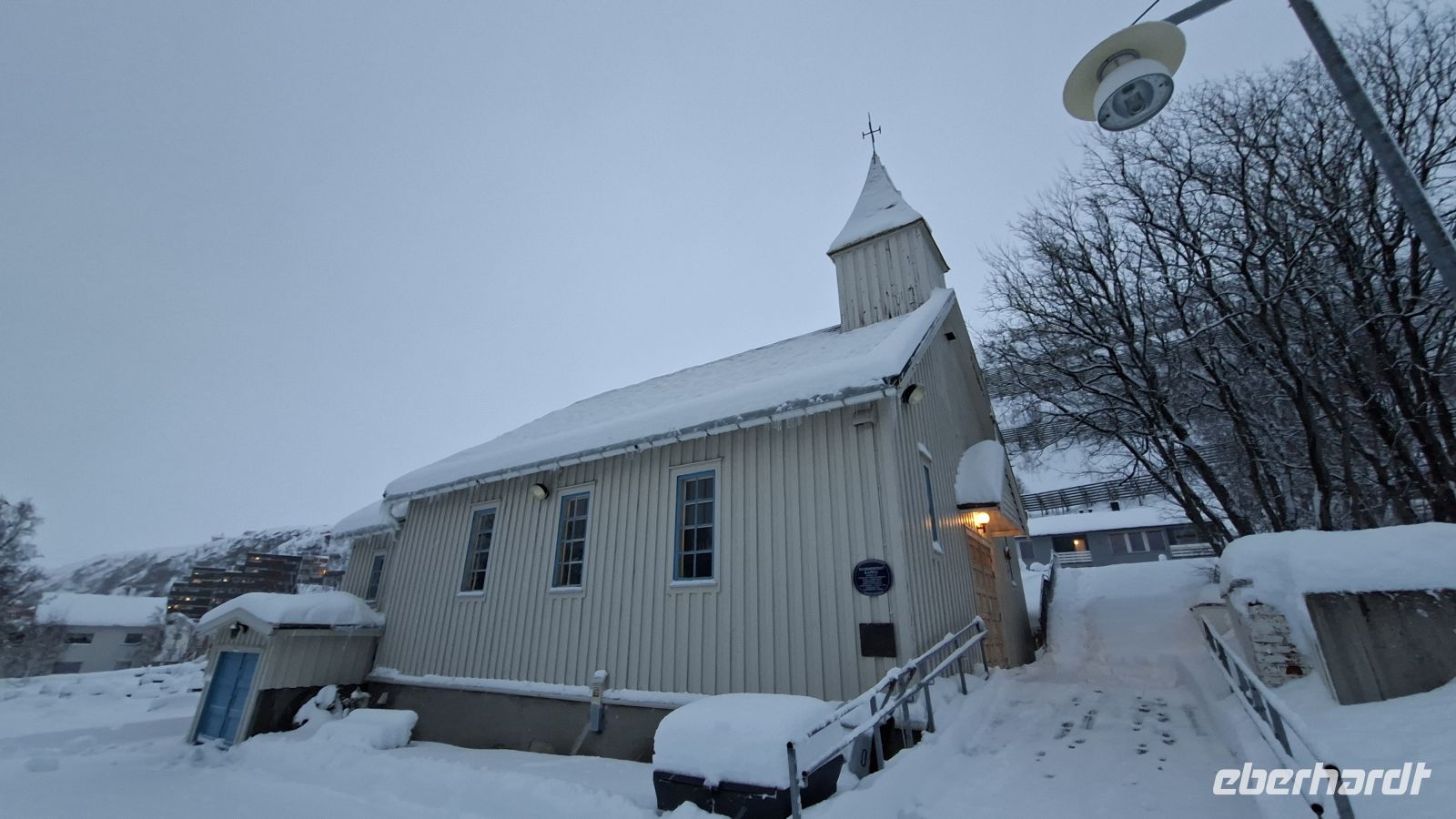 Unser erster Halt war die Kirche in Trondenes, wo wir eine kurze Andacht nur für uns Hurtigruten-Gäste erleben durften. In der stillen, nordischen Atmosphäre, umgeben von Schnee und Meer, wirkte das Ganze sehr besonders – ein ruhiger, fast feierlicher Start in den Tag.