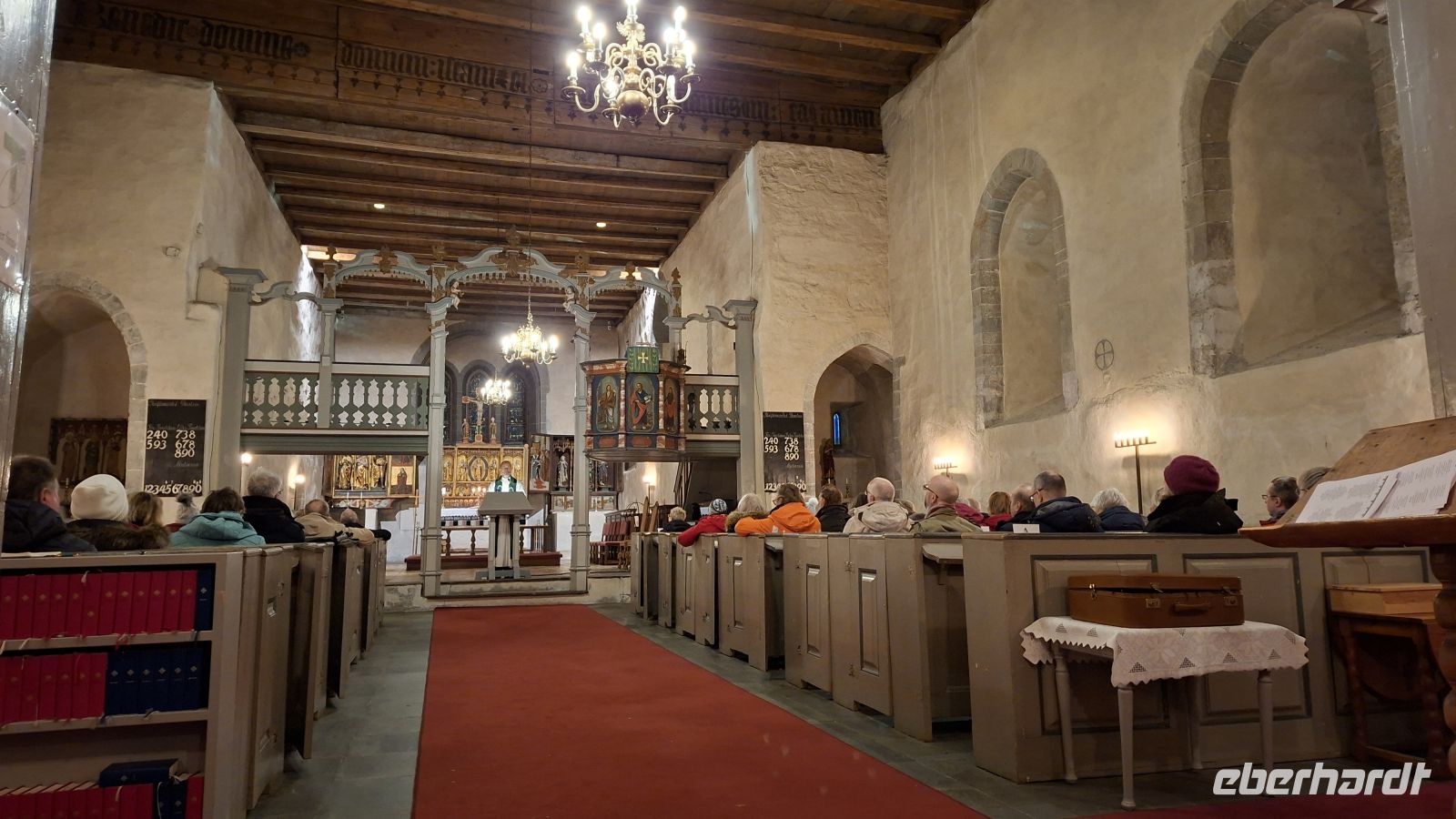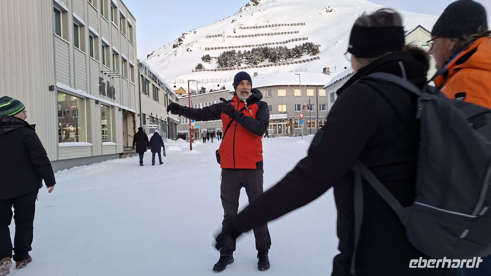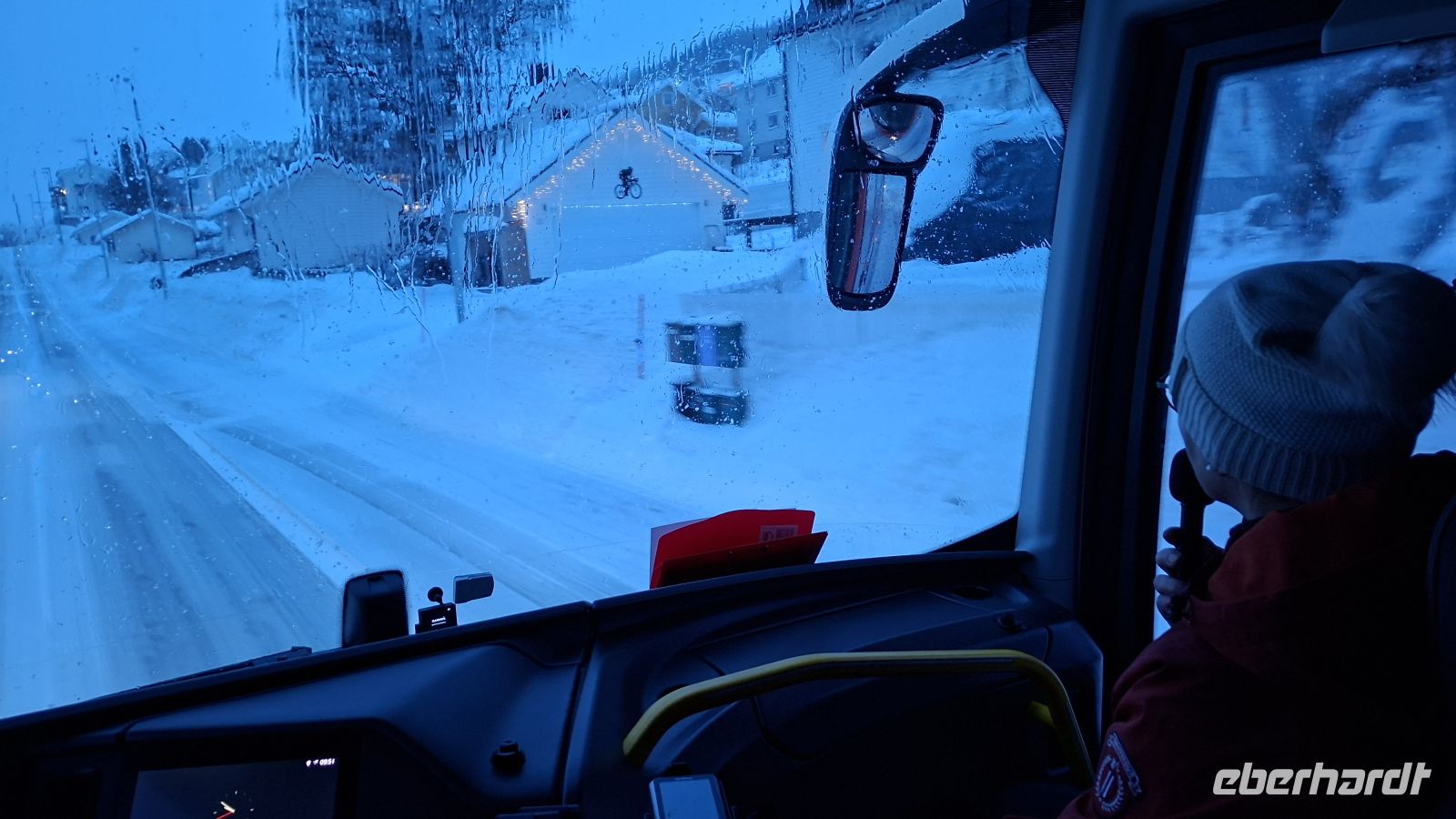 Unser erster Halt war die Kirche in Trondenes, wo wir eine kurze Andacht nur für uns Hurtigruten-Gäste erleben durften. In der stillen, nordischen Atmosphäre, umgeben von Schnee und Meer, wirkte das Ganze sehr besonders – ein ruhiger, fast feierlicher Start in den Tag.