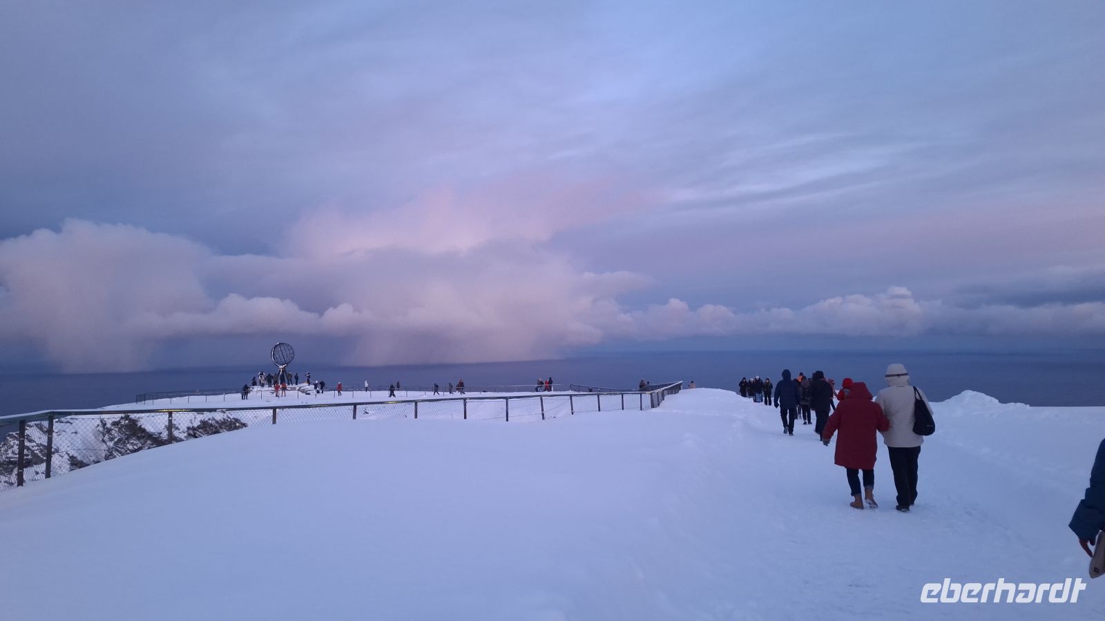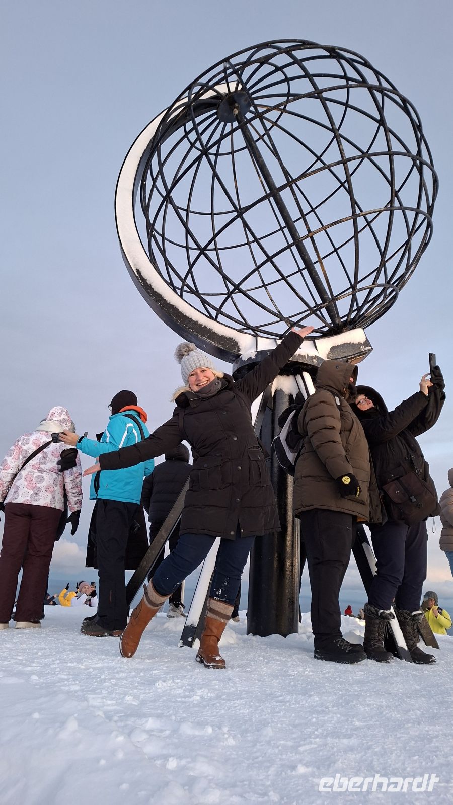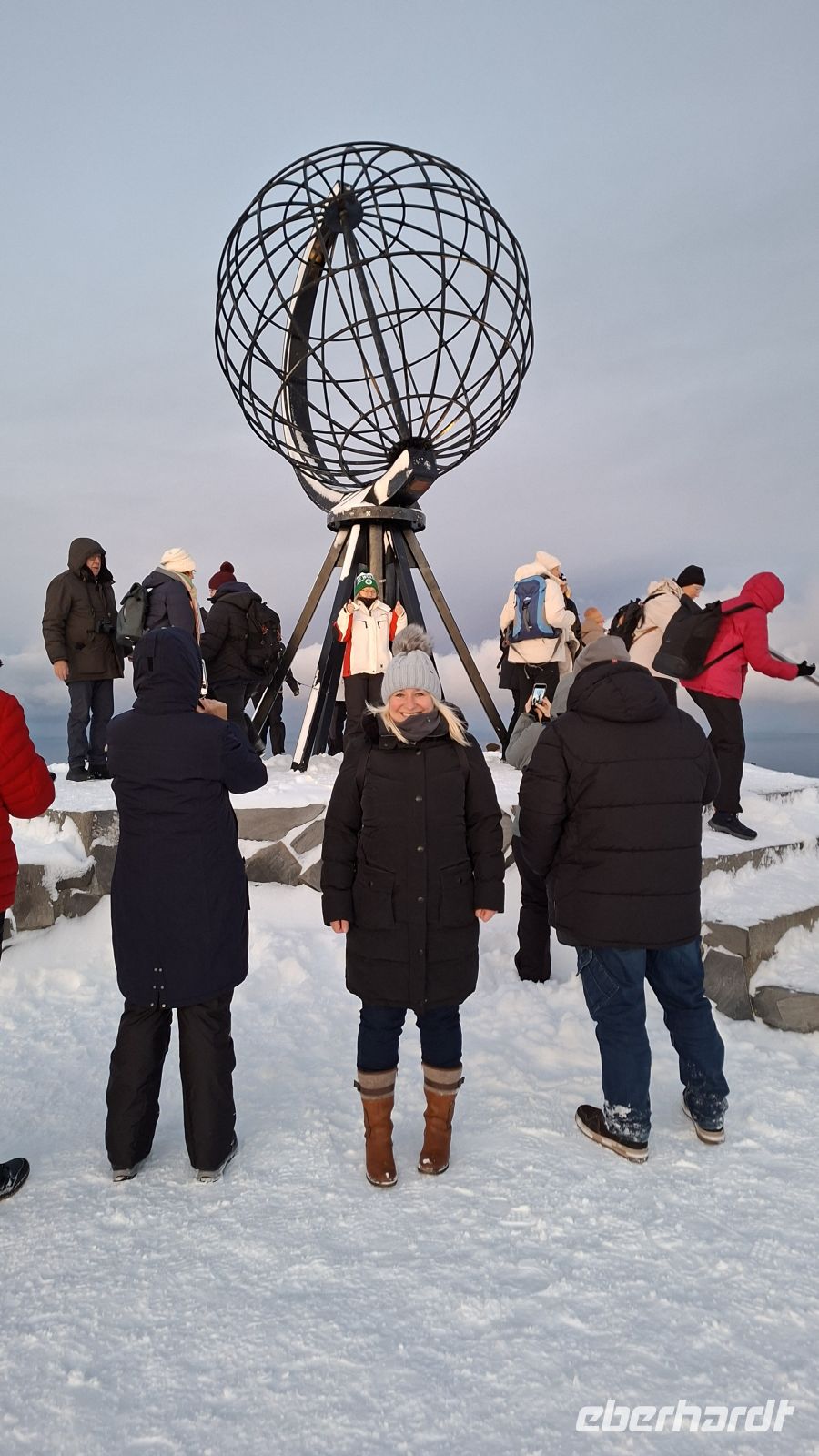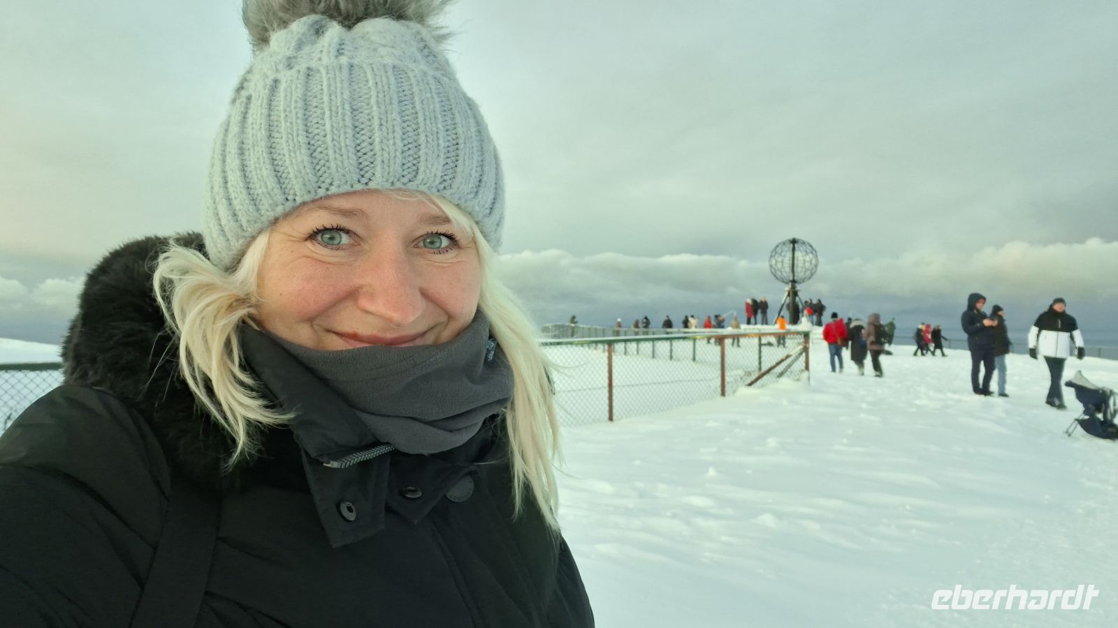 In der Nordkaphalle schauten wir uns den imposanten Film über die Nordkapregion an. Auf der Leinwand wechselten sich Sommer, Winter, Sturm, Mitternachtssonne und Nordlichter ab – und wir bekamen einen Eindruck davon, wie extrem und gleichzeitig faszinierend das Leben hier am Ende Europas sein kann. Als wir wieder hinausgingen, hatten wir das Gefühl, diesem Ort ein Stückchen näher gekommen zu sein. Beseelt und glücklich fuhren wir zurück zum Schiff. Dort warteten schon warmer Apfelkuchen und heiße Schokolade auf uns – ein Traum nach diesem kalten, aber wunderschönen Ausflug.
