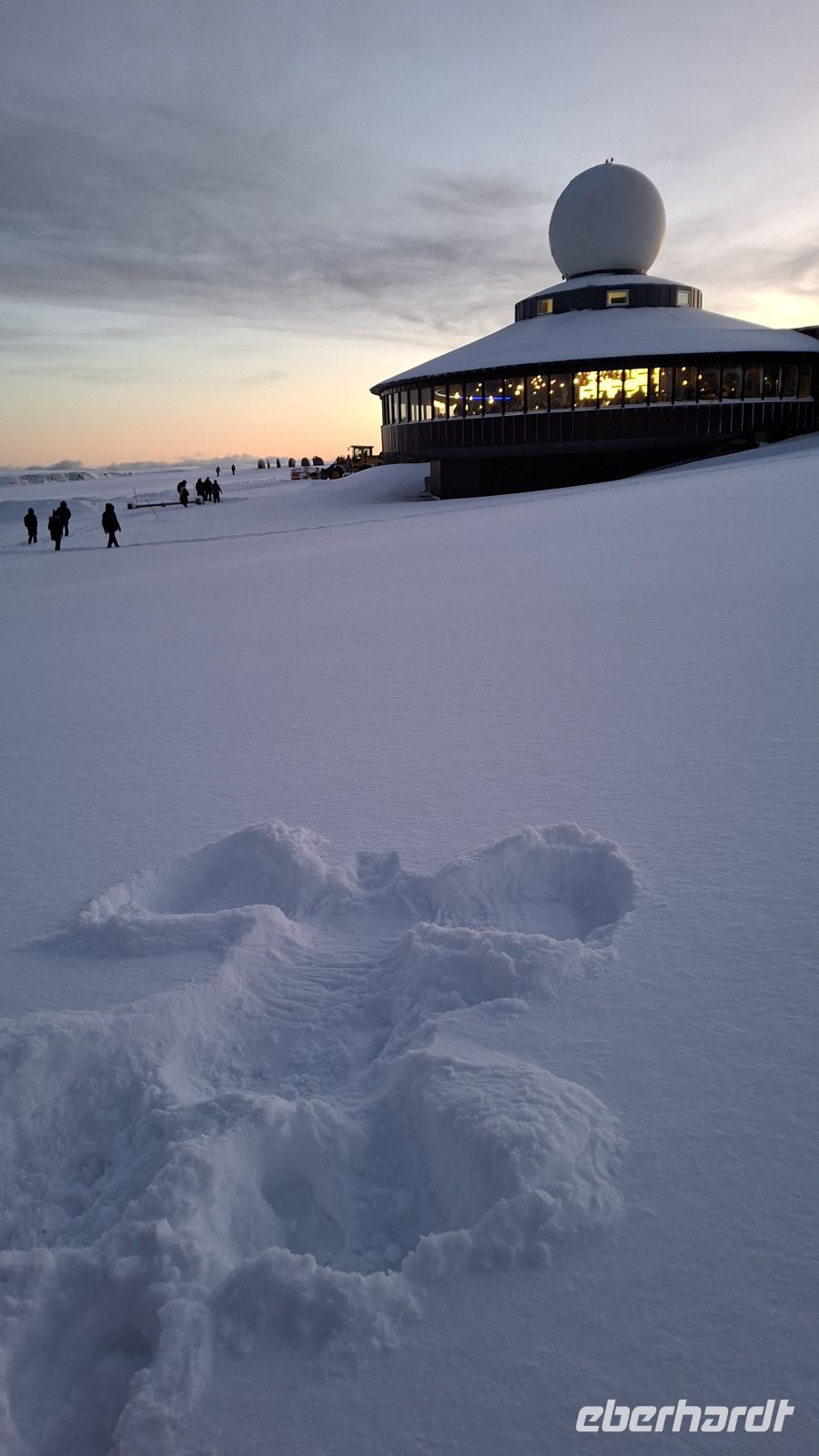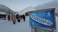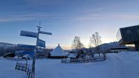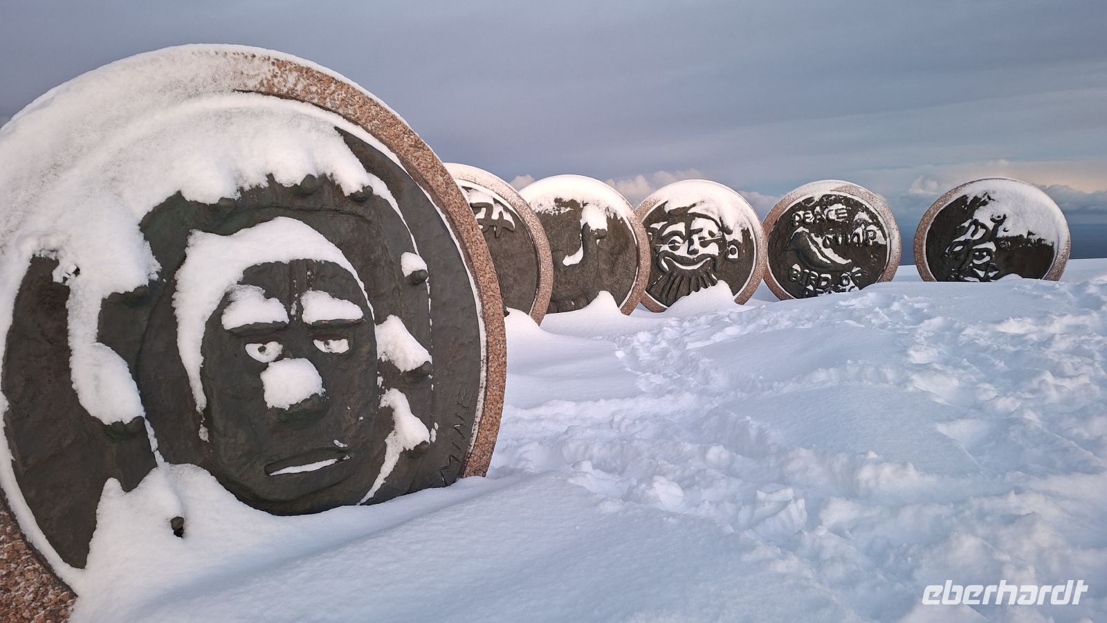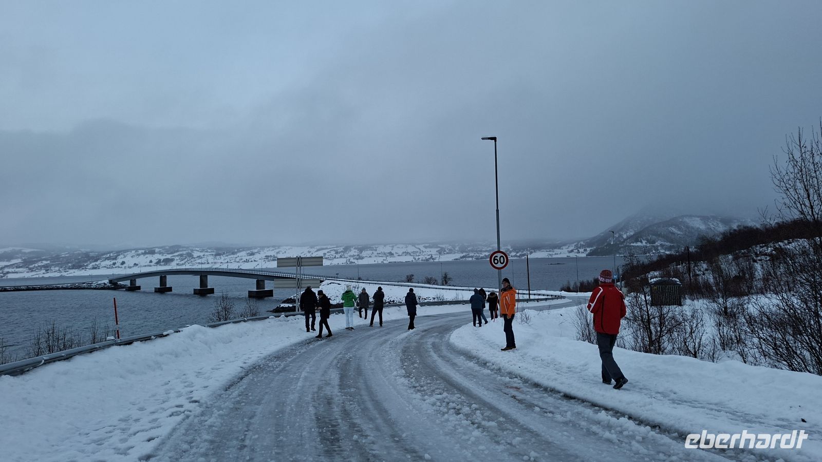 Anschließend wagte jeder, der wollte, trotz etwas eisigen Wetters den Weg zum Mittelpunkt Norwegens, der in der Nähe von Brønnøysund markiert ist. Dick eingepackt stapften wir durch die Kälte, machten Erinnerungsfotos am Schild und freuten uns ein bisschen darüber, nun offiziell „mittendrin“ in Norwegen gewesen zu sein.