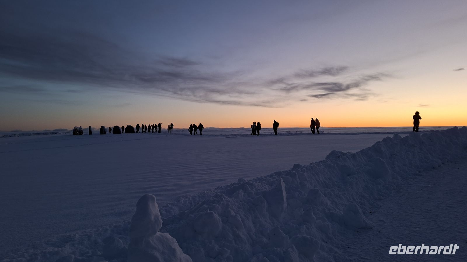 Zusammen mit der tiefstehenden Sonne ergaben sich unglaubliche Lichtstimmungen – von silbergrau bis zartrosa. Unsere Kameras machten Überstunden, und manchmal mussten wir einfach nur still dastehen und genießen.