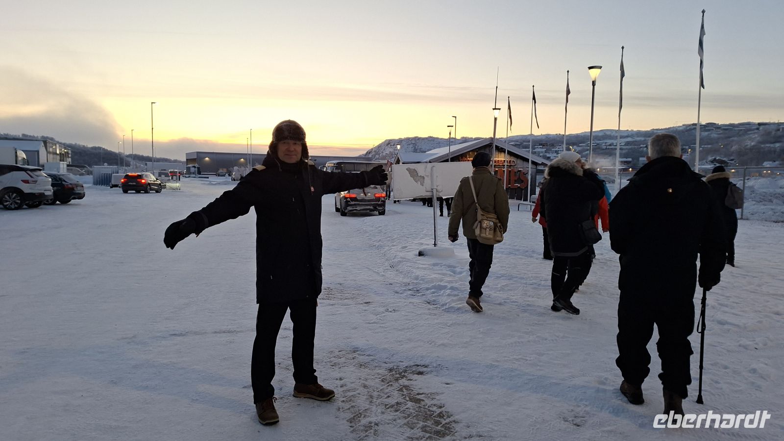 Ein Großteil unserer Eberhardt-Reisegruppe nahm am Eberhardt-Ausflug in Tromsø teil. Unsere Reiseleiterin begrüßte uns am neuen Kreuzfahrtterminal, und wir machten es uns im Minibus bequem – los ging’s Richtung Eismeerkathedrale.