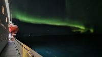 Und dann kam der Moment, auf den wir insgeheim alle gehofft hatten: Die ersten Nordlichter wurden gesichtet! Wir standen an Deck, schauten in den Himmel und sahen diese grünen Schleier, die sich langsam bewegten, als würden sie tanzen. Wir waren völlig aus dem Häuschen. Ins Bett konnten wir danach kaum gehen, aus Angst, noch mehr Nordlichter zu verpassen. Also blieben wir noch etwas wach und beobachteten fasziniert den Himmel.
