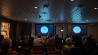Zurück an Bord freuten wir uns auf das Mittagessen – frische Luft macht bekanntlich hungrig. Nach dem Essen ging es weiter im Programm: Wir bekamen einen Vortrag über praktische Fototipps für Nordlichter und und welche Kameraeinstellungen am besten funktionieren. Mit jeder Minute wurde uns klar: Wir kamen immer mehr in die Region, in der das Nordlicht möglich war – und unsere Vorfreude stieg entsprechend.